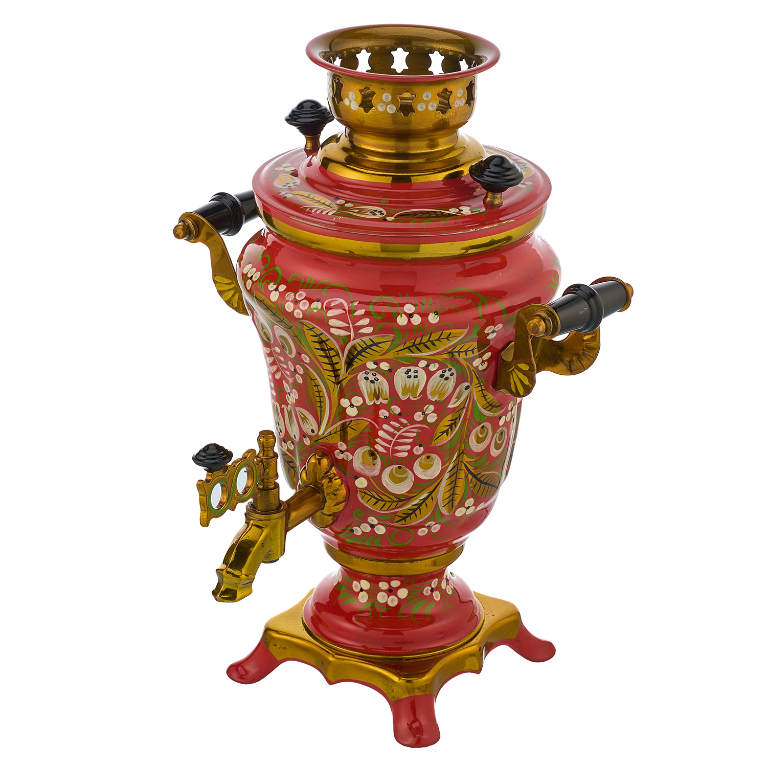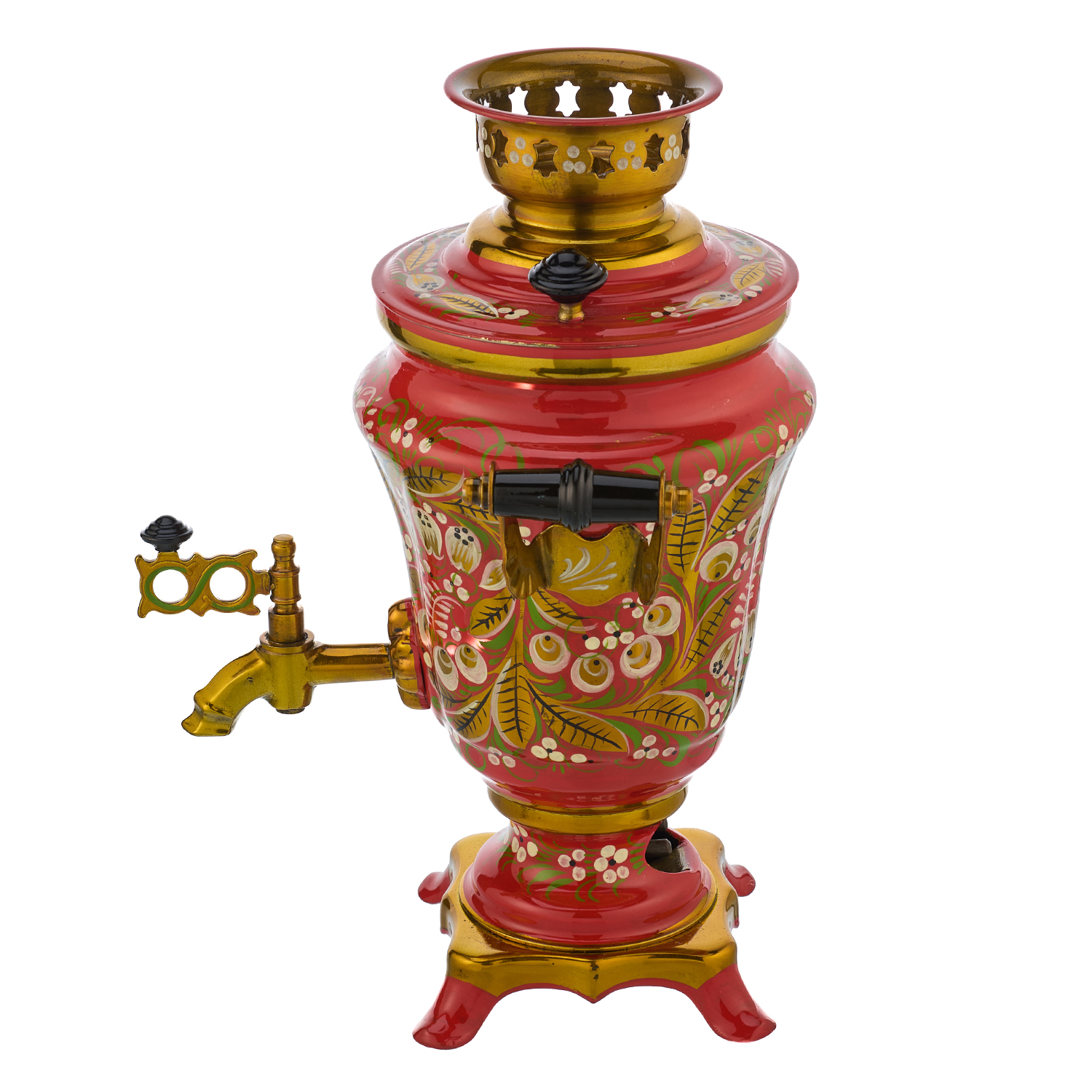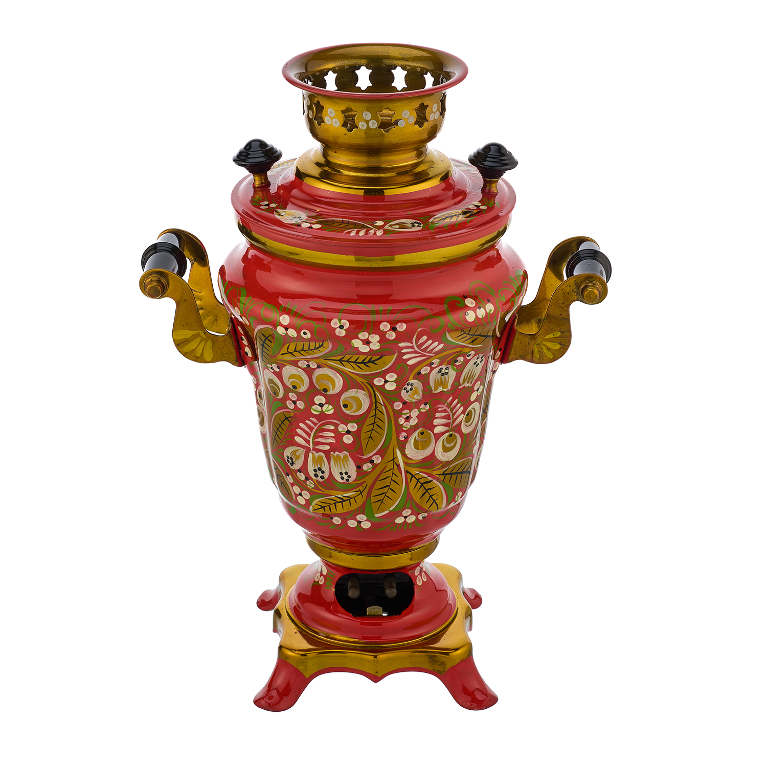 Самовар электрический 1,5 л "Ландыш". Хохлома.Материалы: латунь, краски, лак.