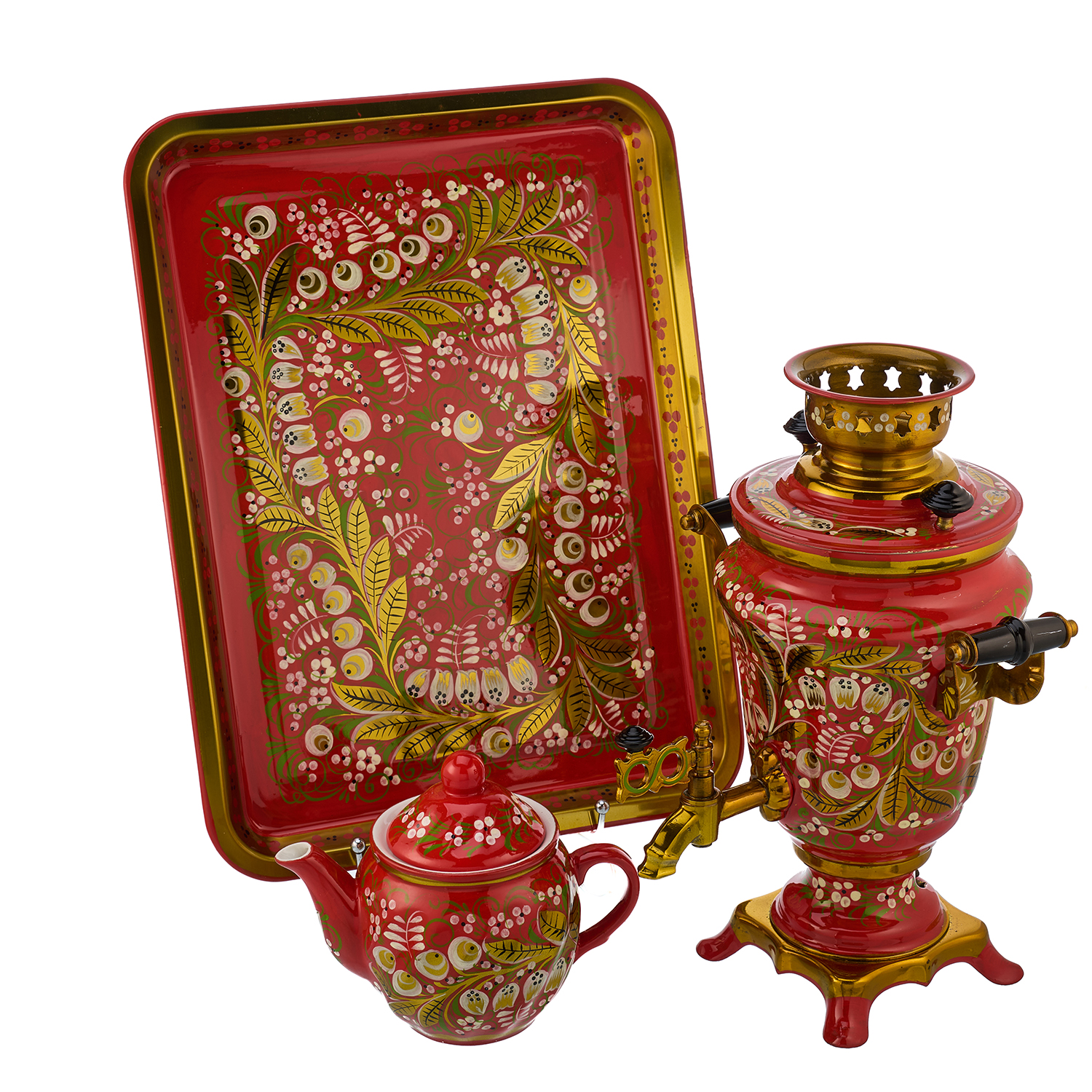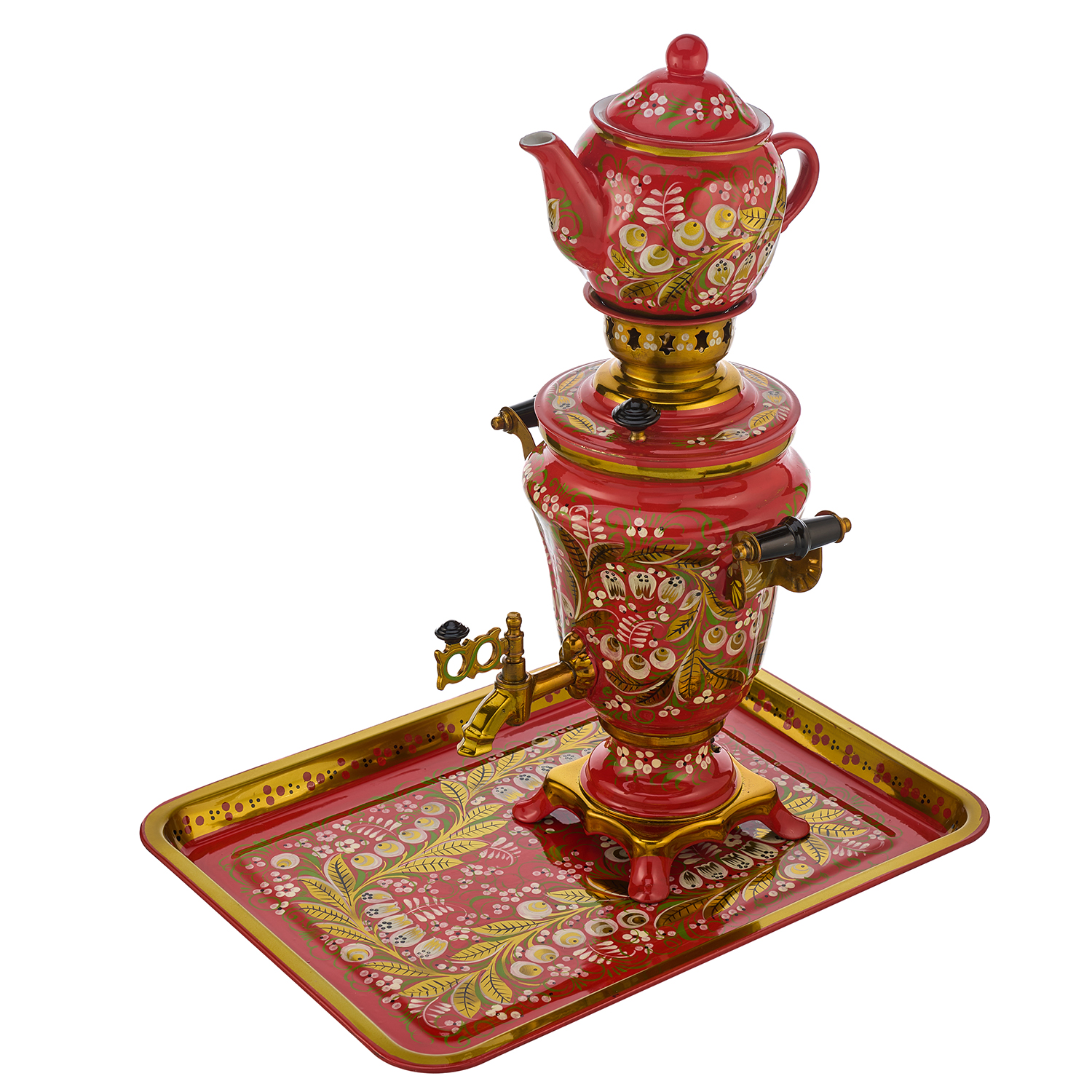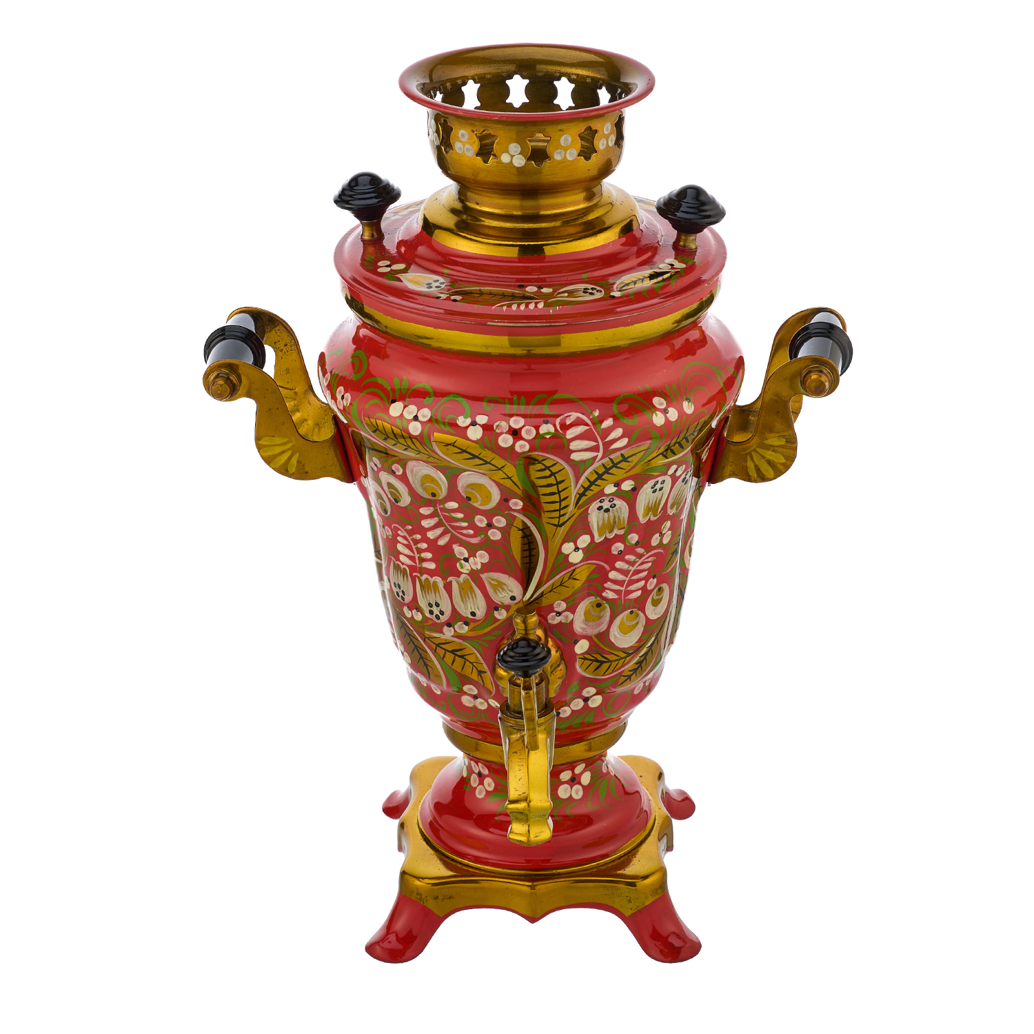 Самовар электрический 1,5 л "Ландыш". Хохлома.Материалы: латунь, краски, лак.