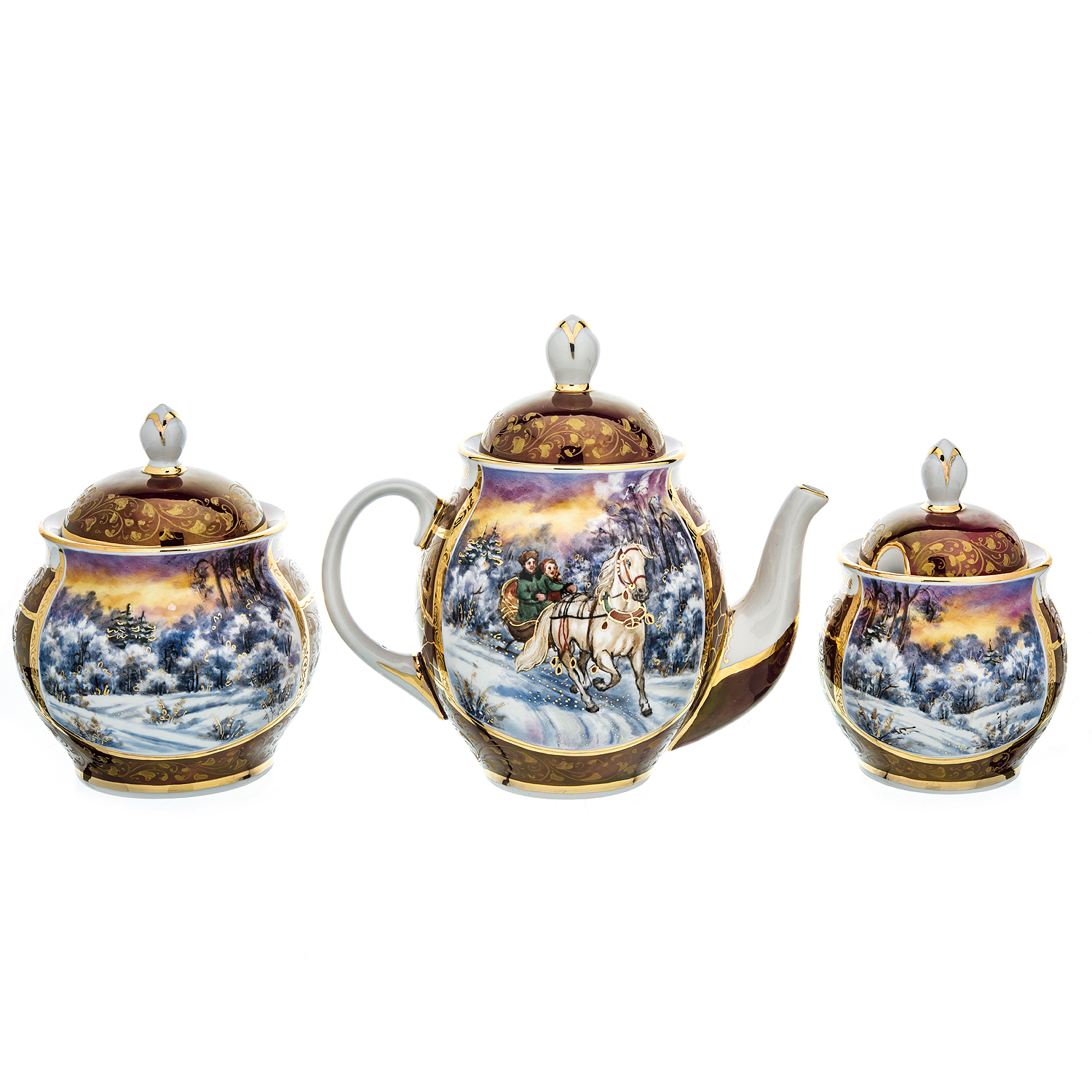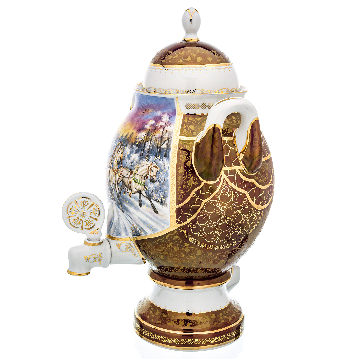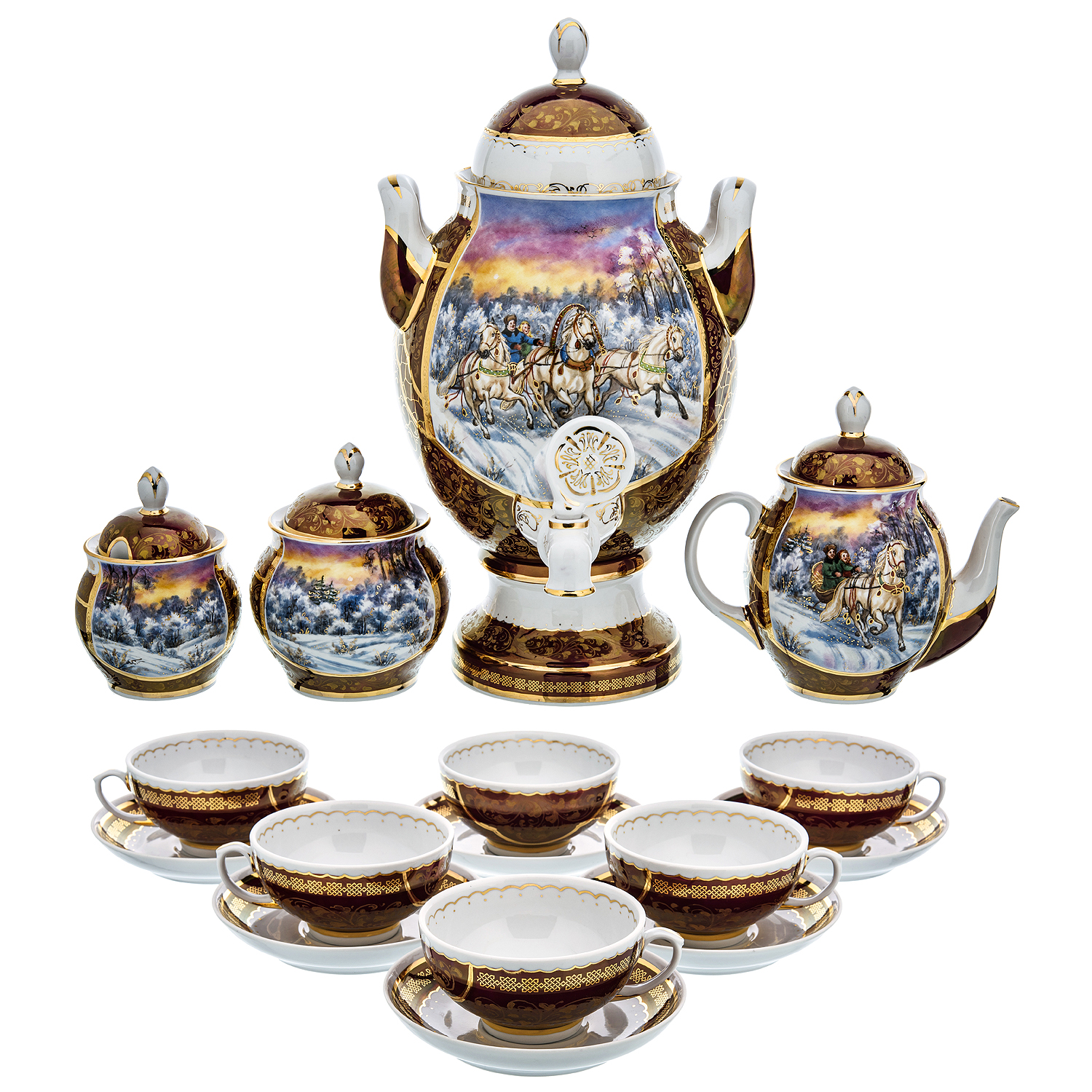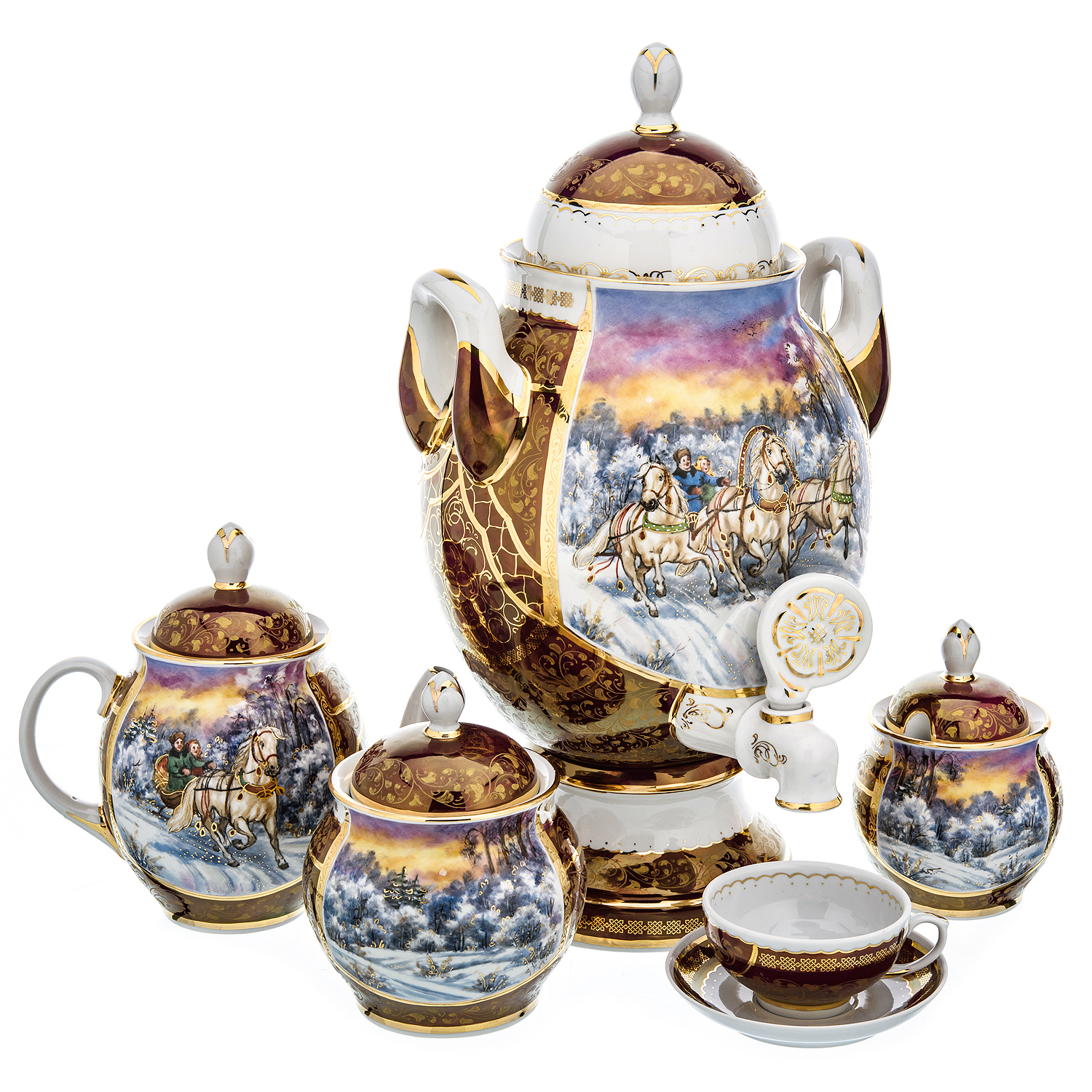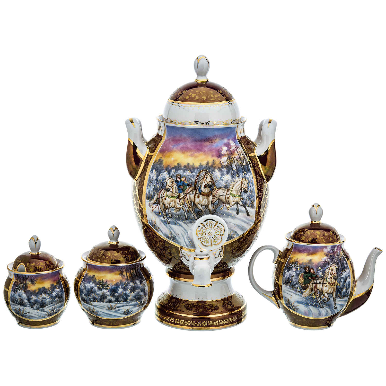 Самовар фарфоровый электрический 6 л с сервизом "Зимняя тройка"