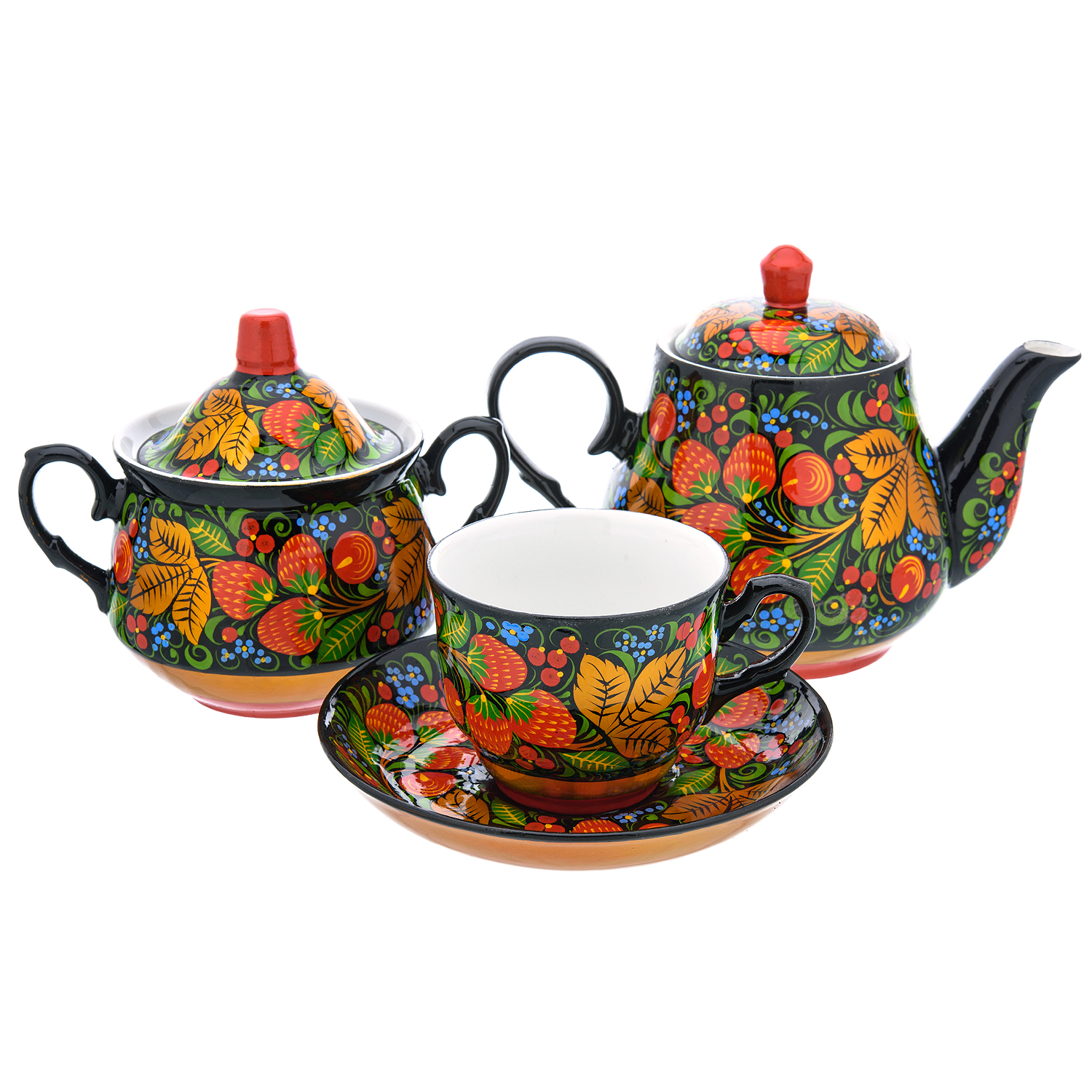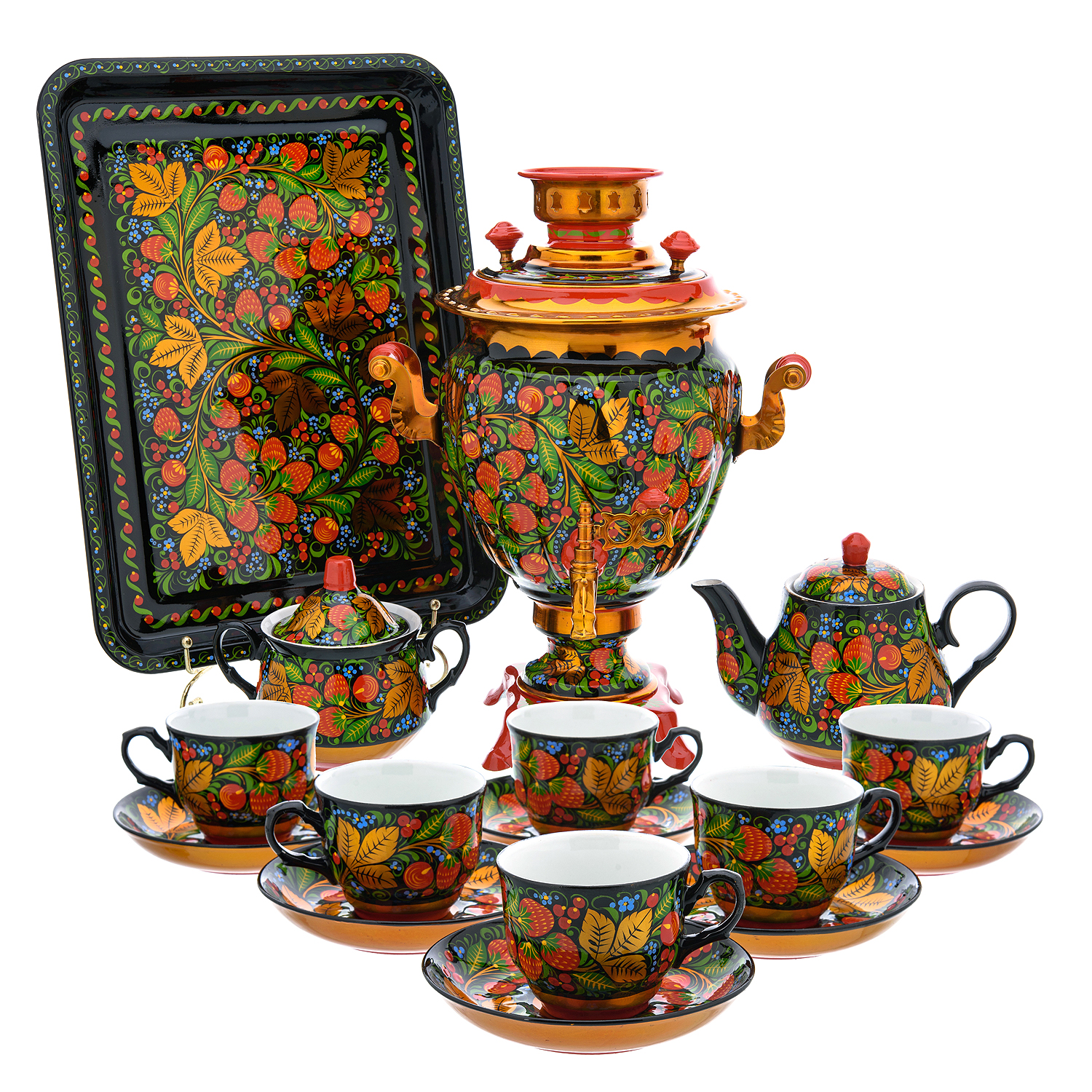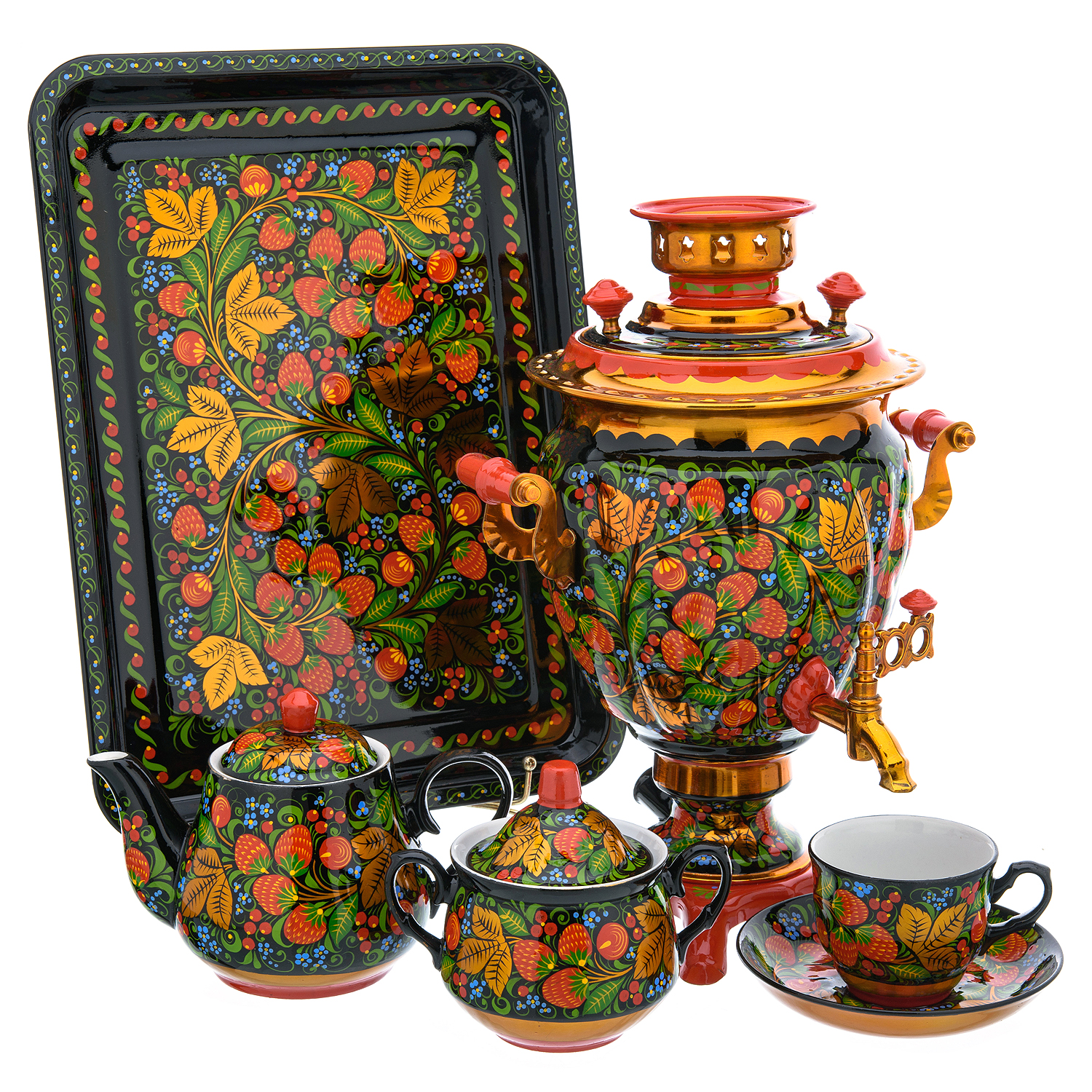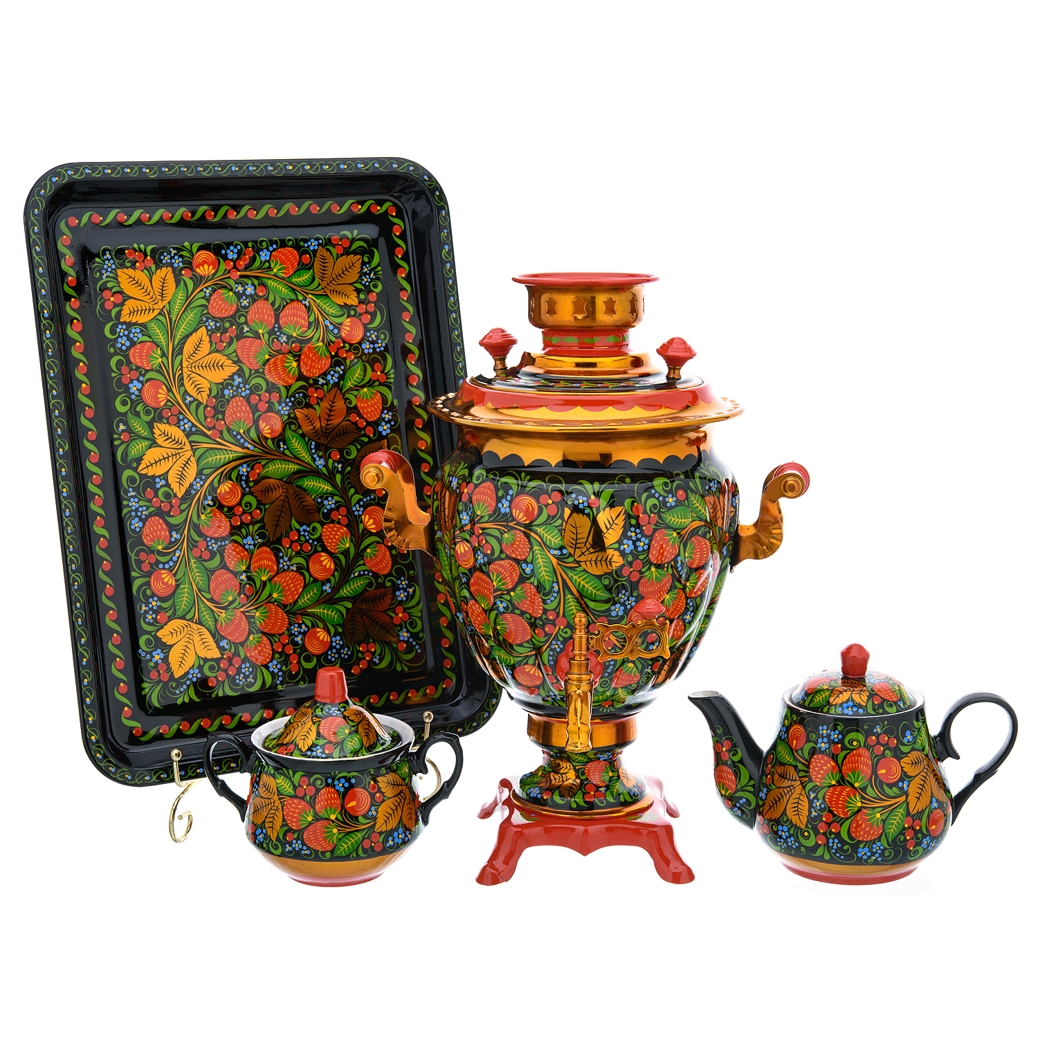 Самовар электрический 3 л "Клубника". Хохлома