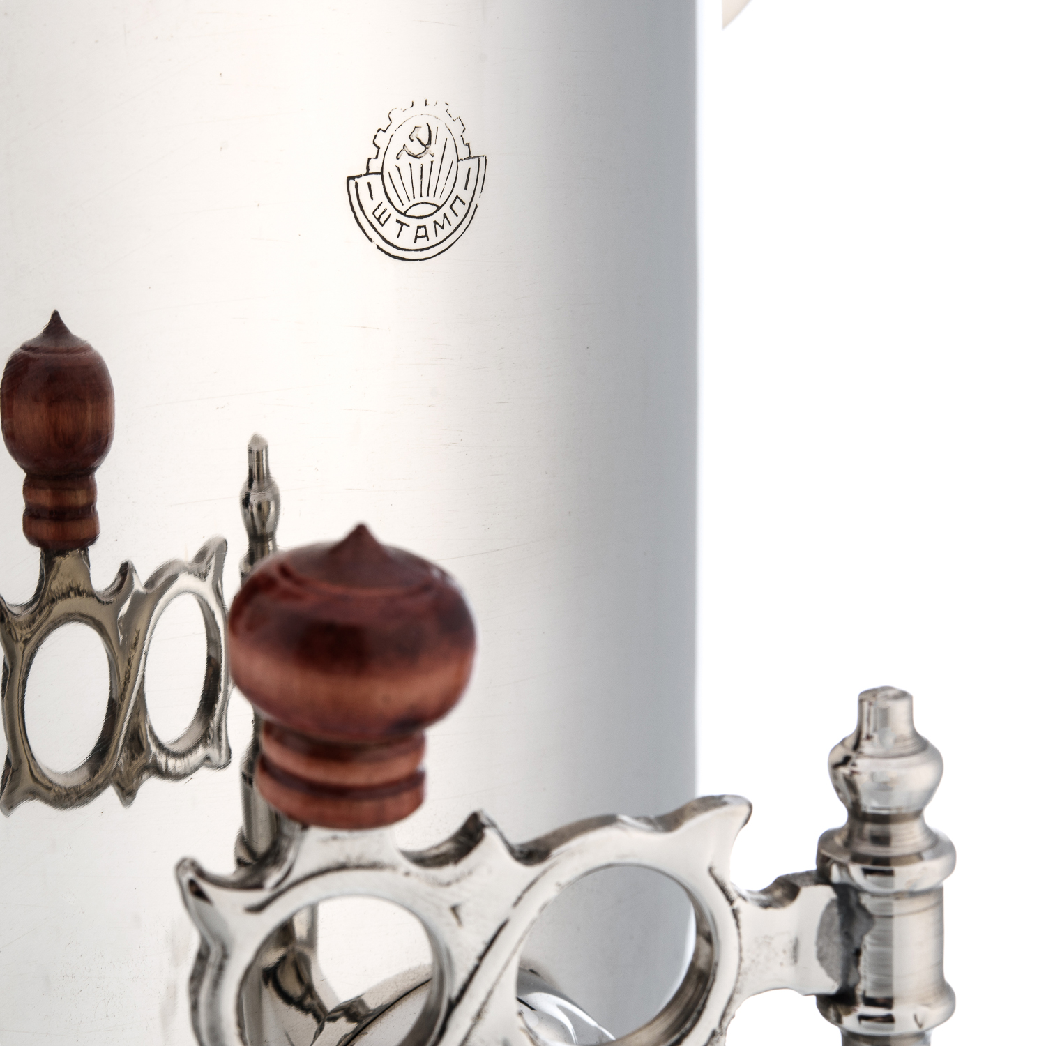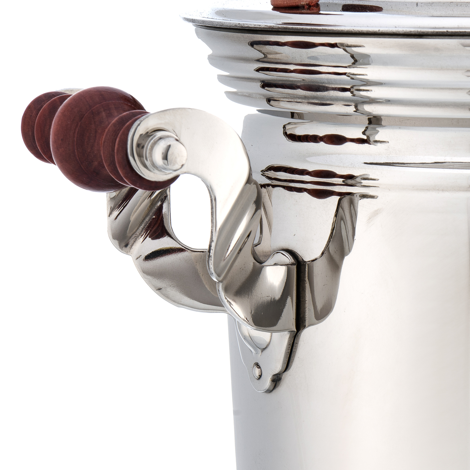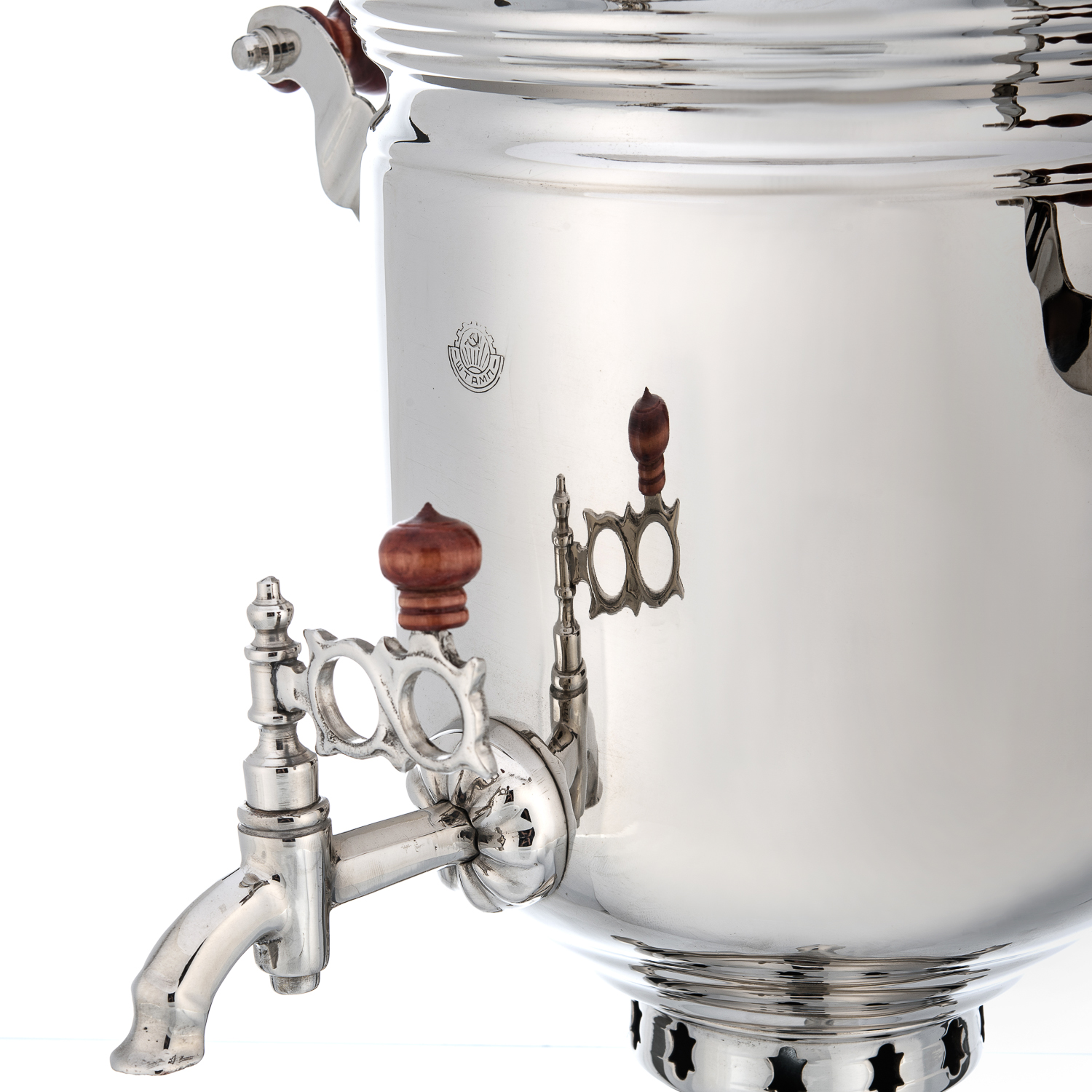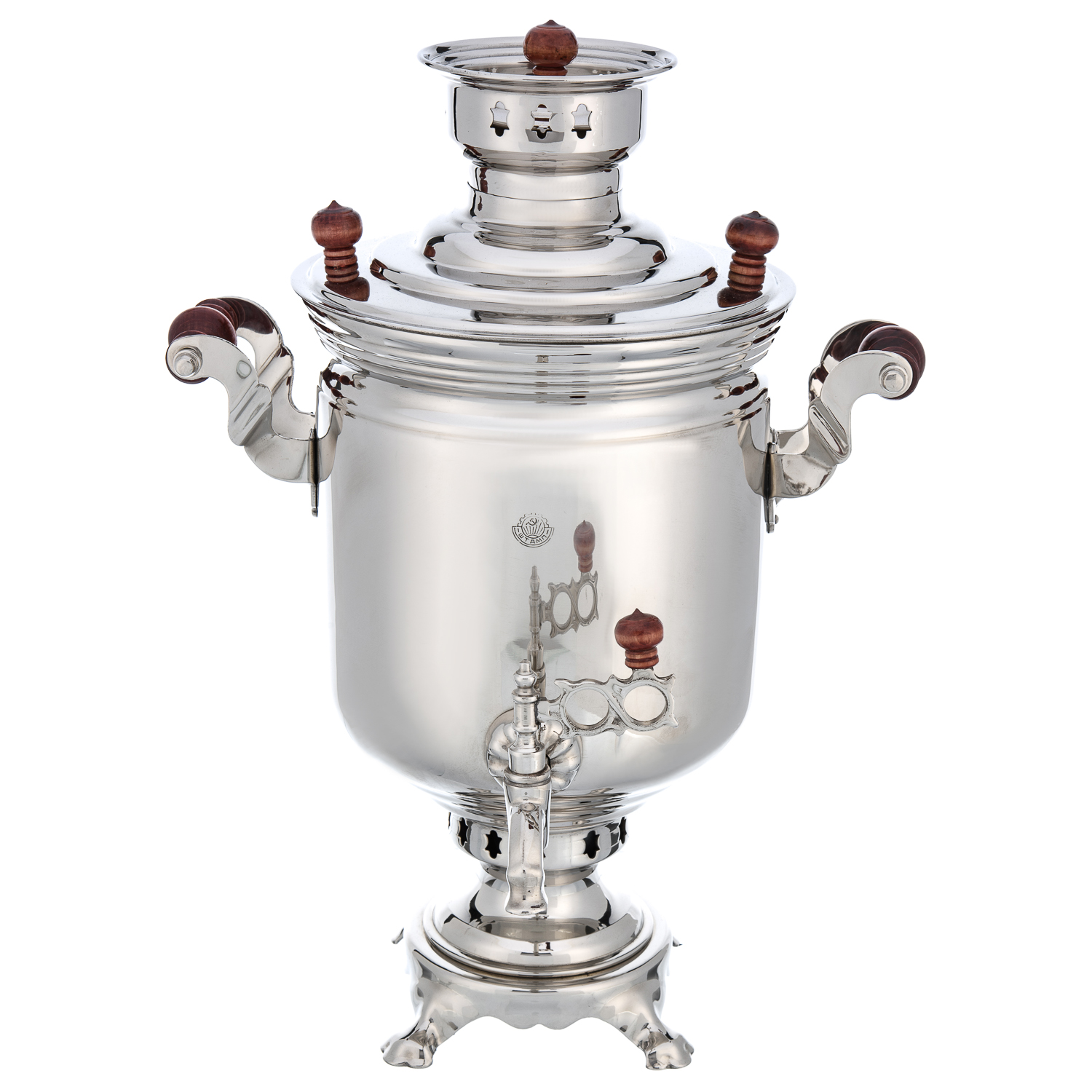Самовар жаровой латунный 7 л. Форма "Банка".Материалы: латунь, никелирование, дерево.