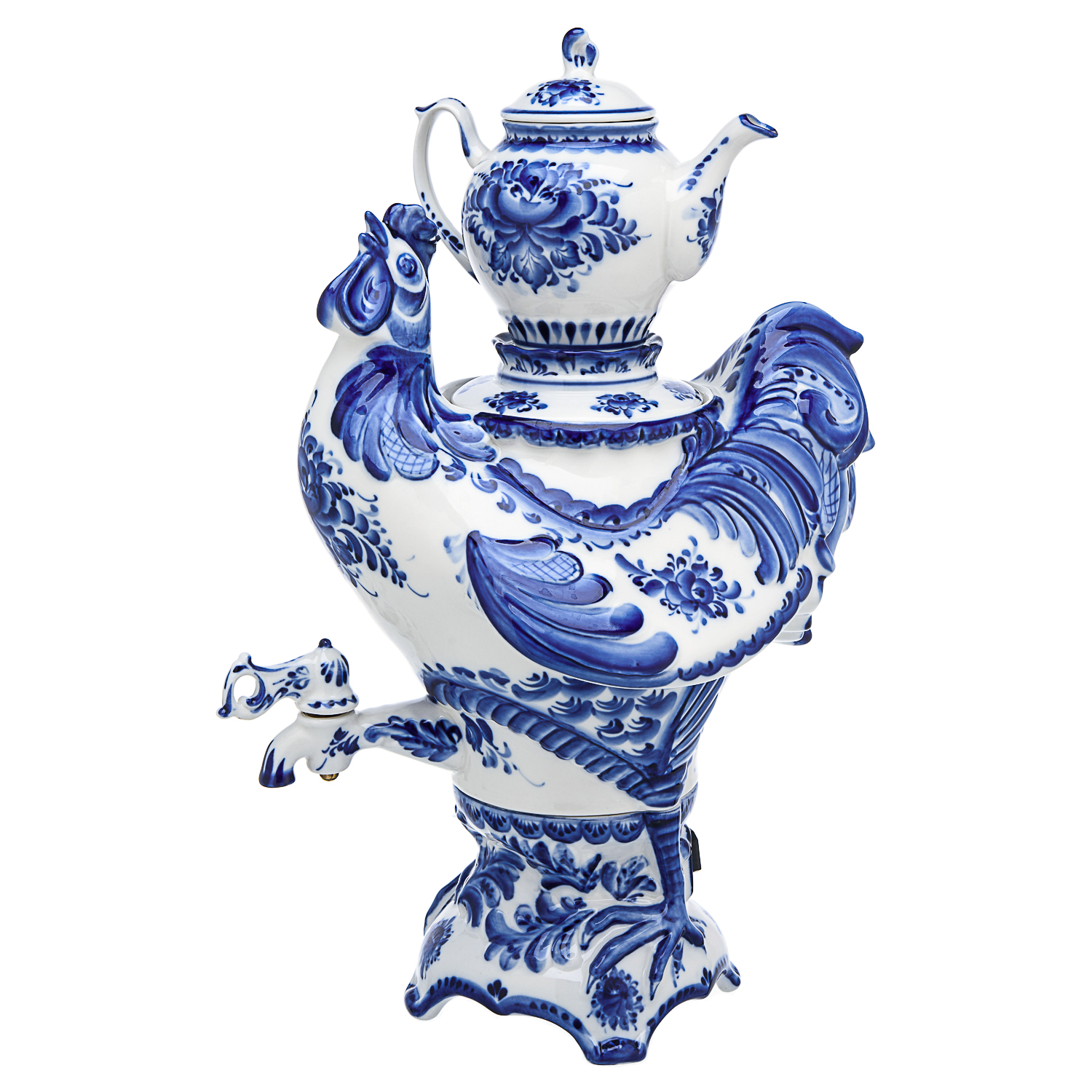 Русские подарки и сувениры → Самовары → Самовар фарфоровый электрический 3,5 л "Петух голосистый". Гжель