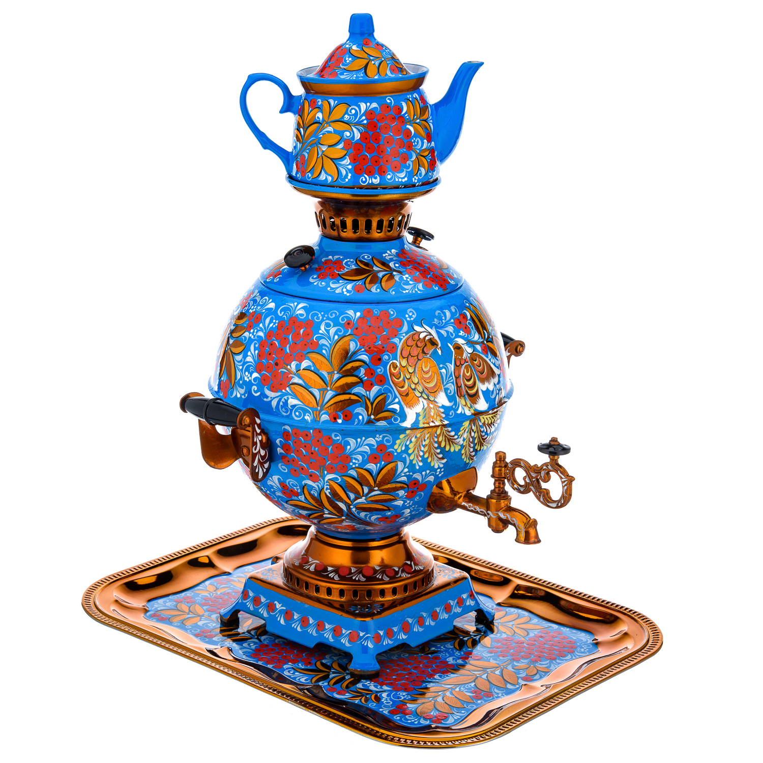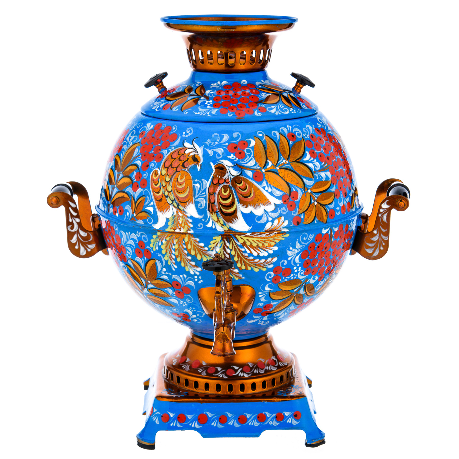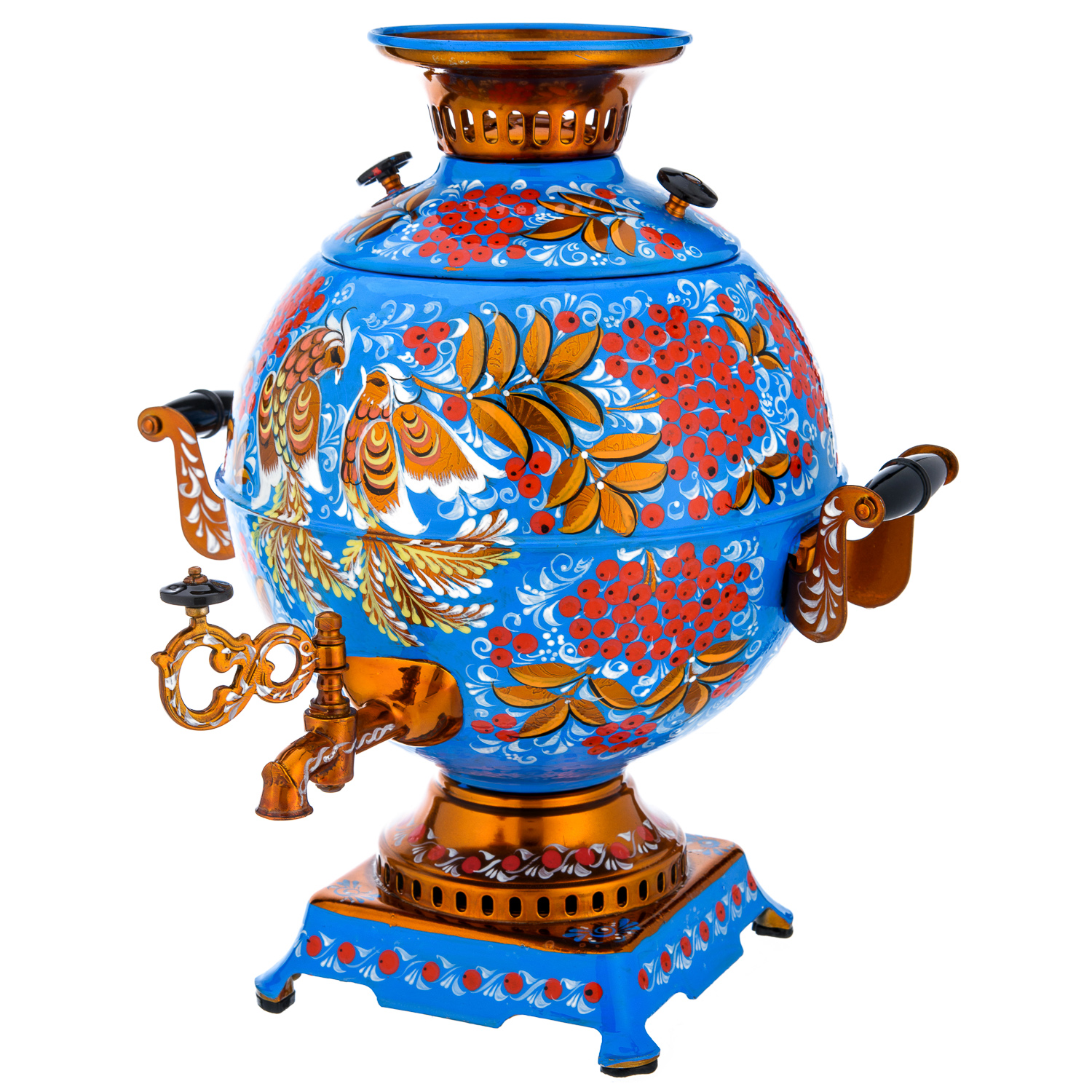 Самовар электрический 5 л "Рябиновые грозди. Птицы".Материалы: латунь, фарфор, краски.