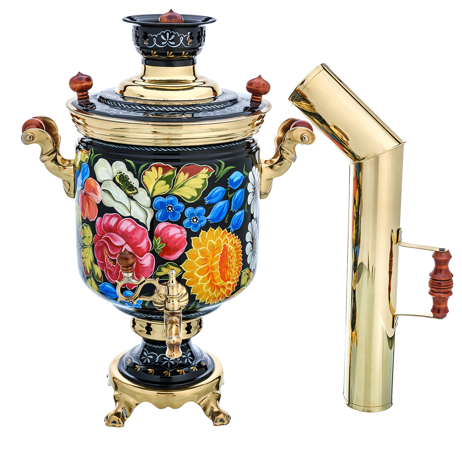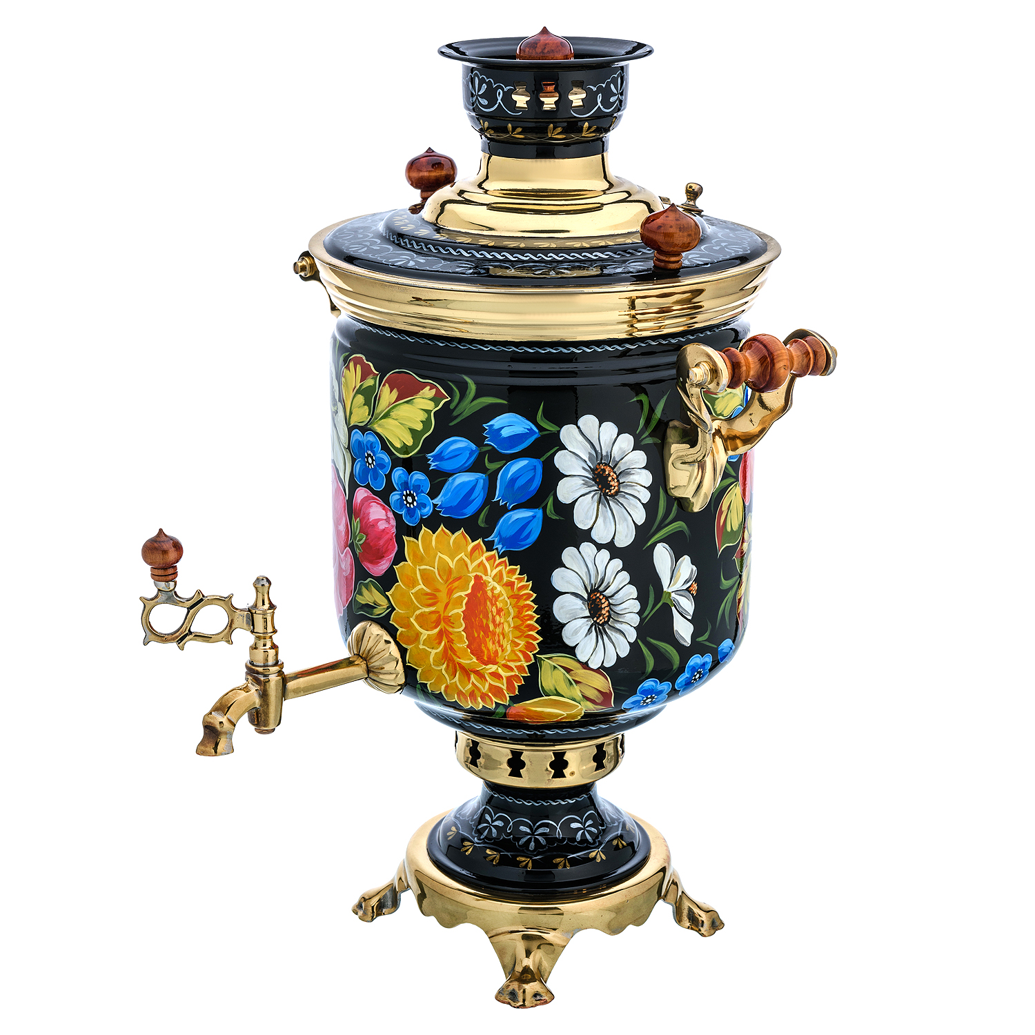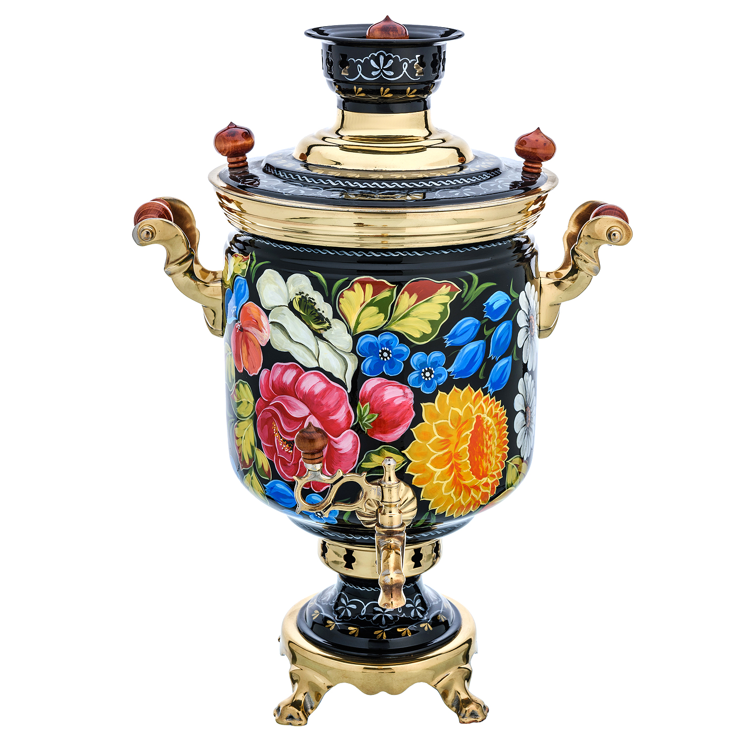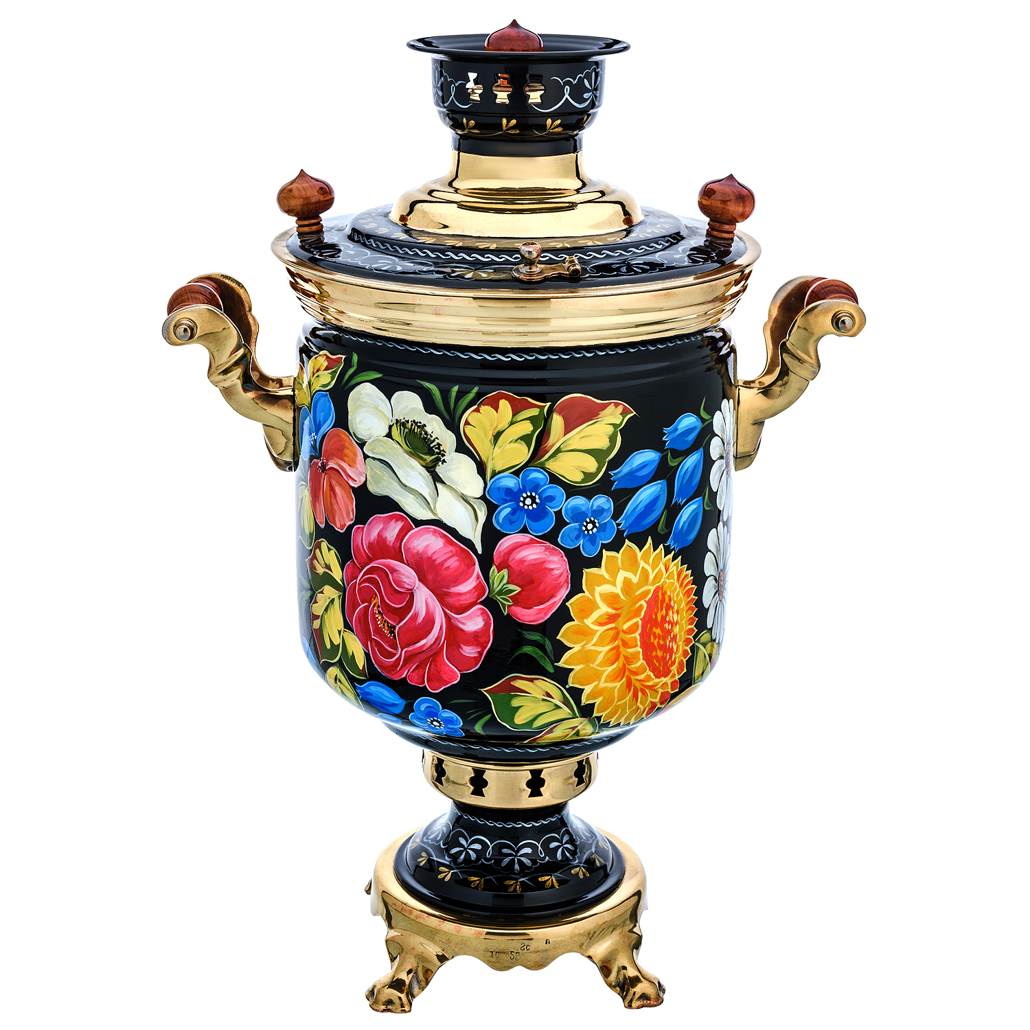 Самовар жаровой латунный 7 л "Цветы". Форма Банка
