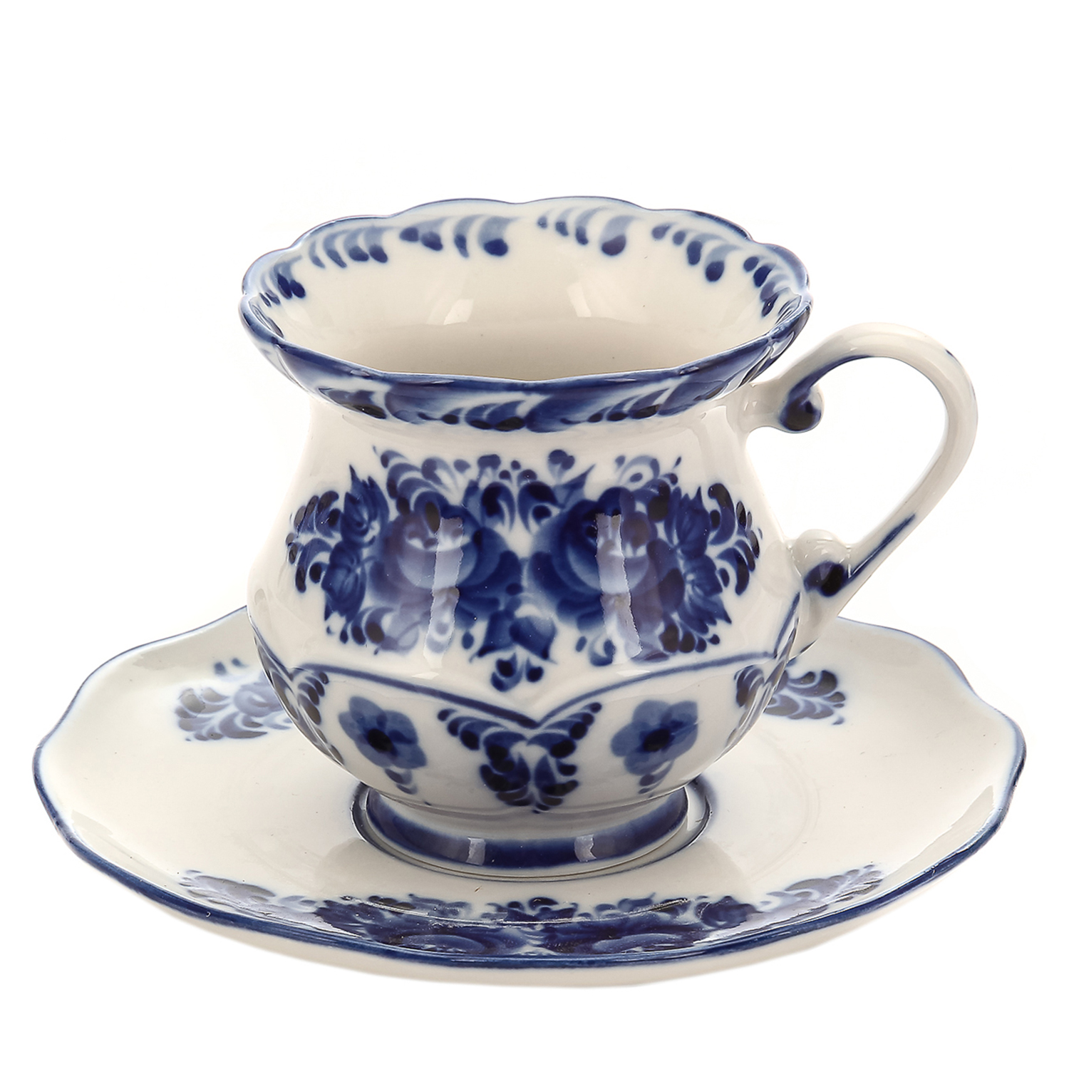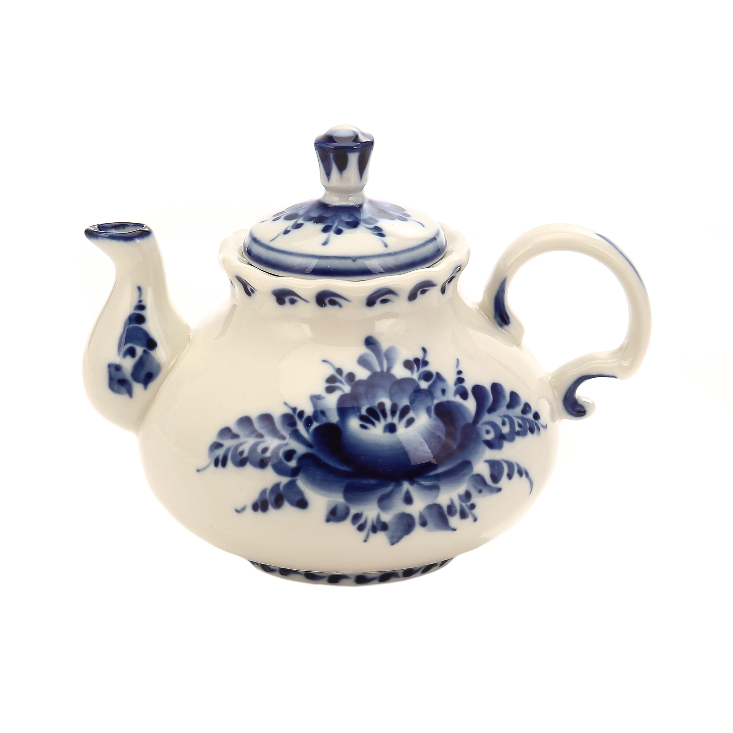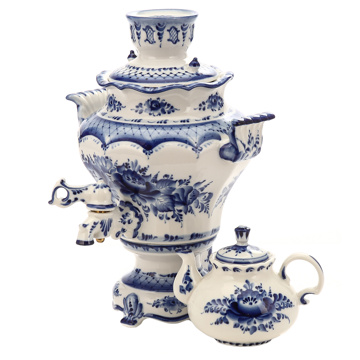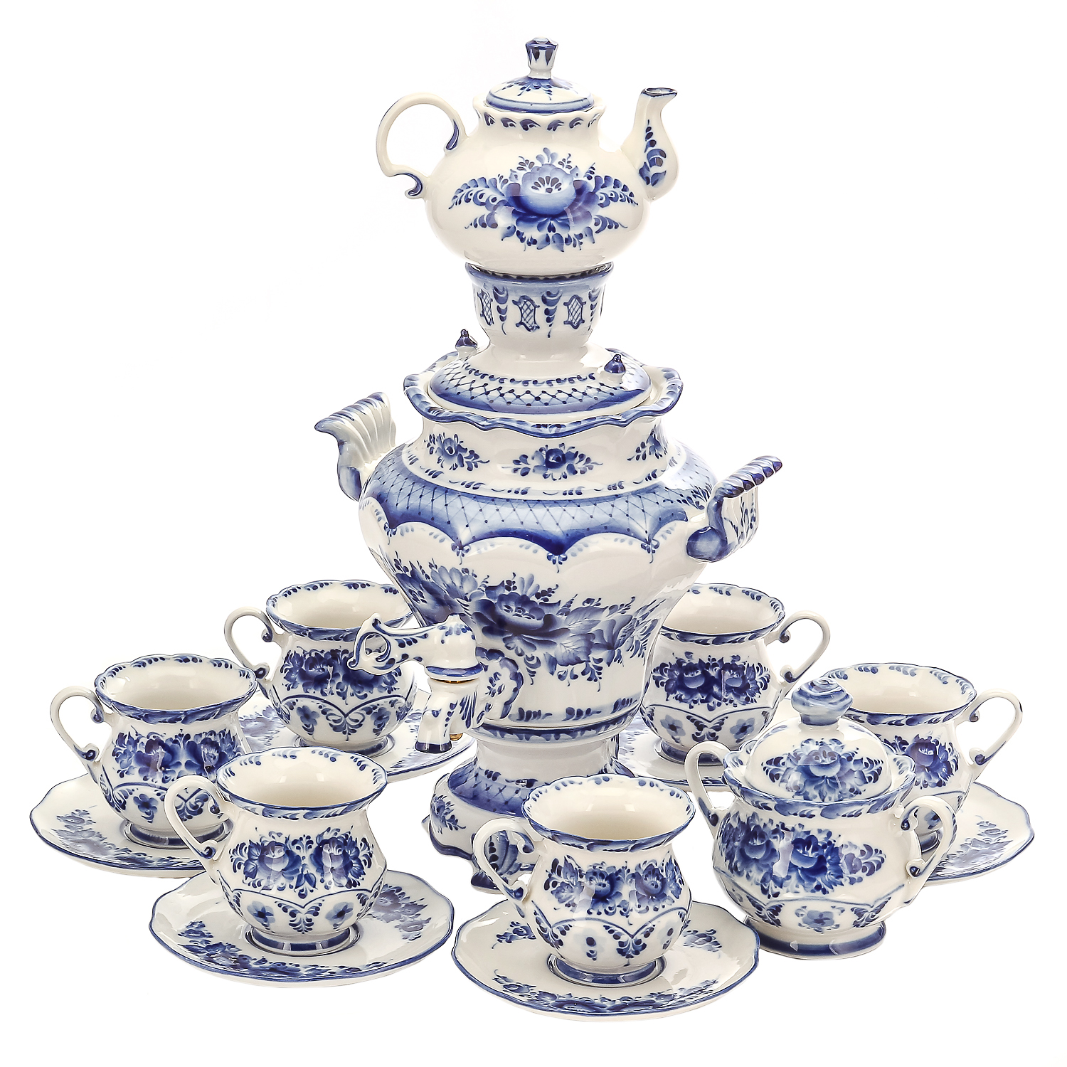 Самовар фарфоровый электрический 2л "Летняя фантазия" с сервизом 6 персон. Гжель