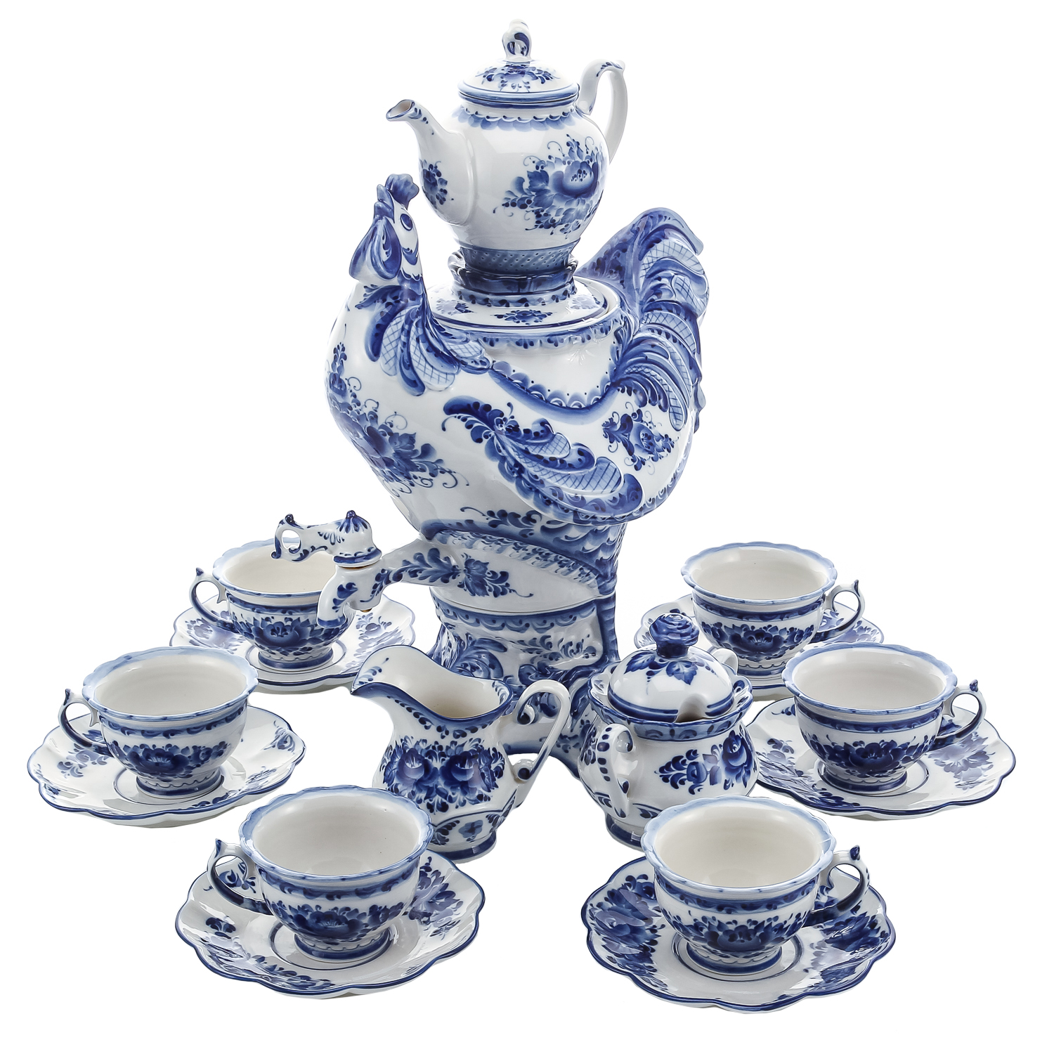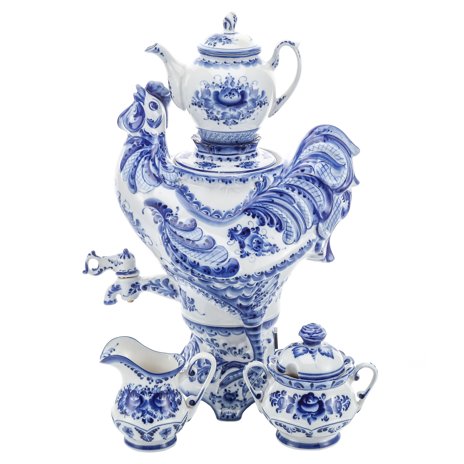 Самовар электрический "Петушок" 3,5л с сервизом. Гжель
