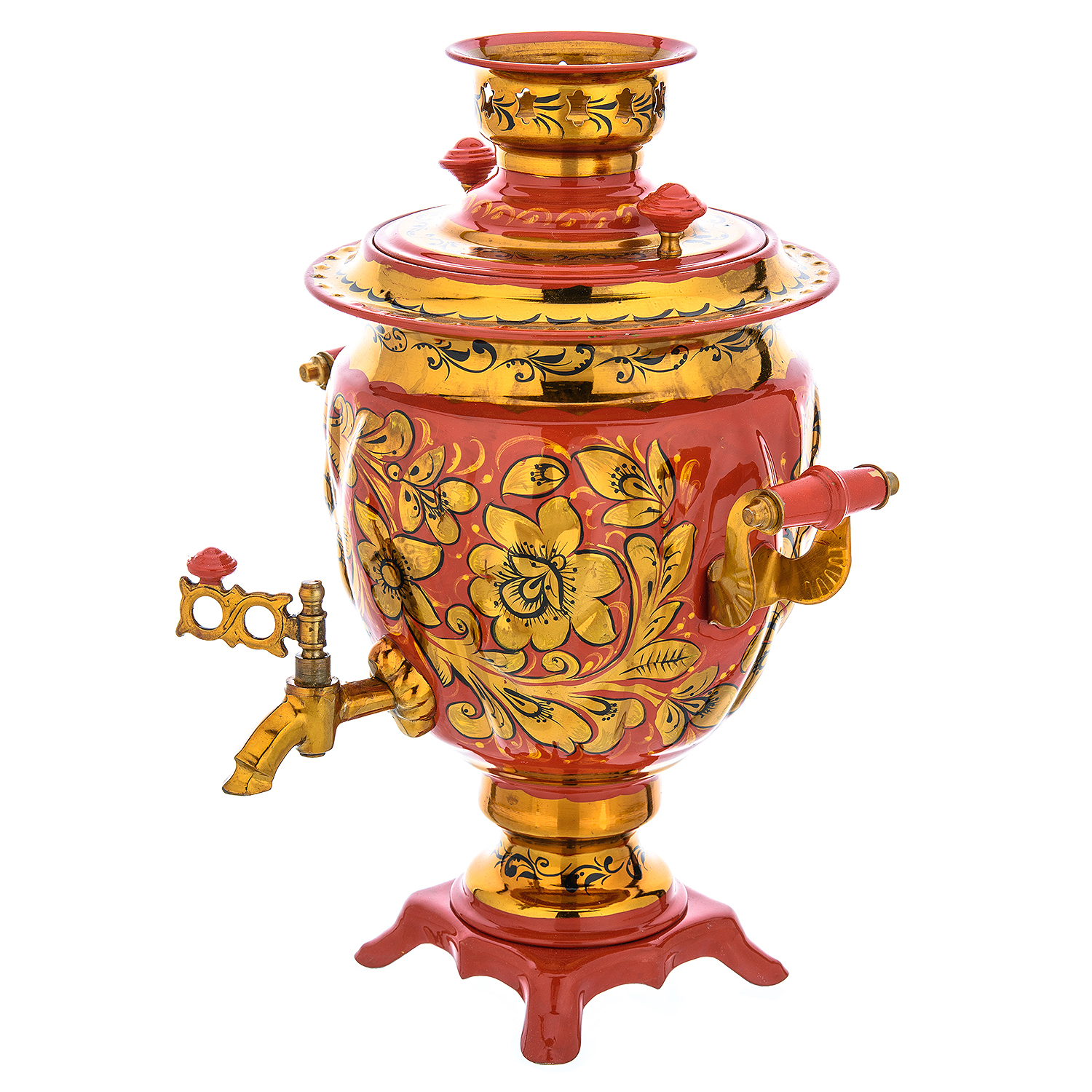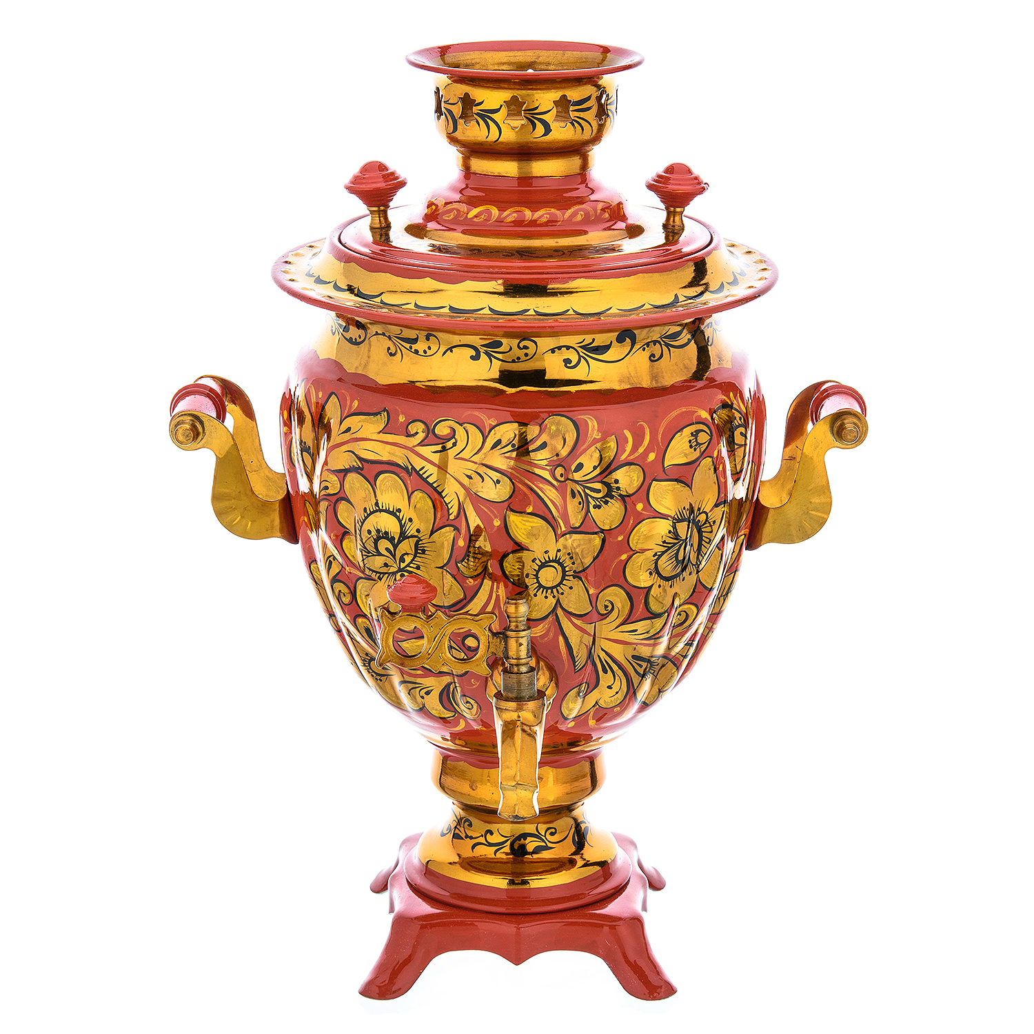 Самовар электрический 3 л "Кудрина на красном". Хохлома