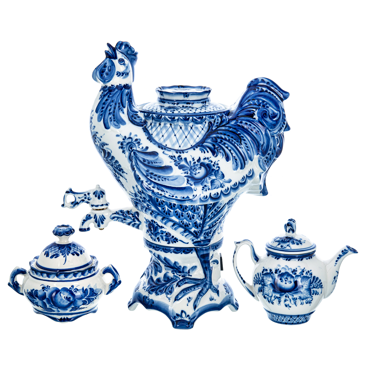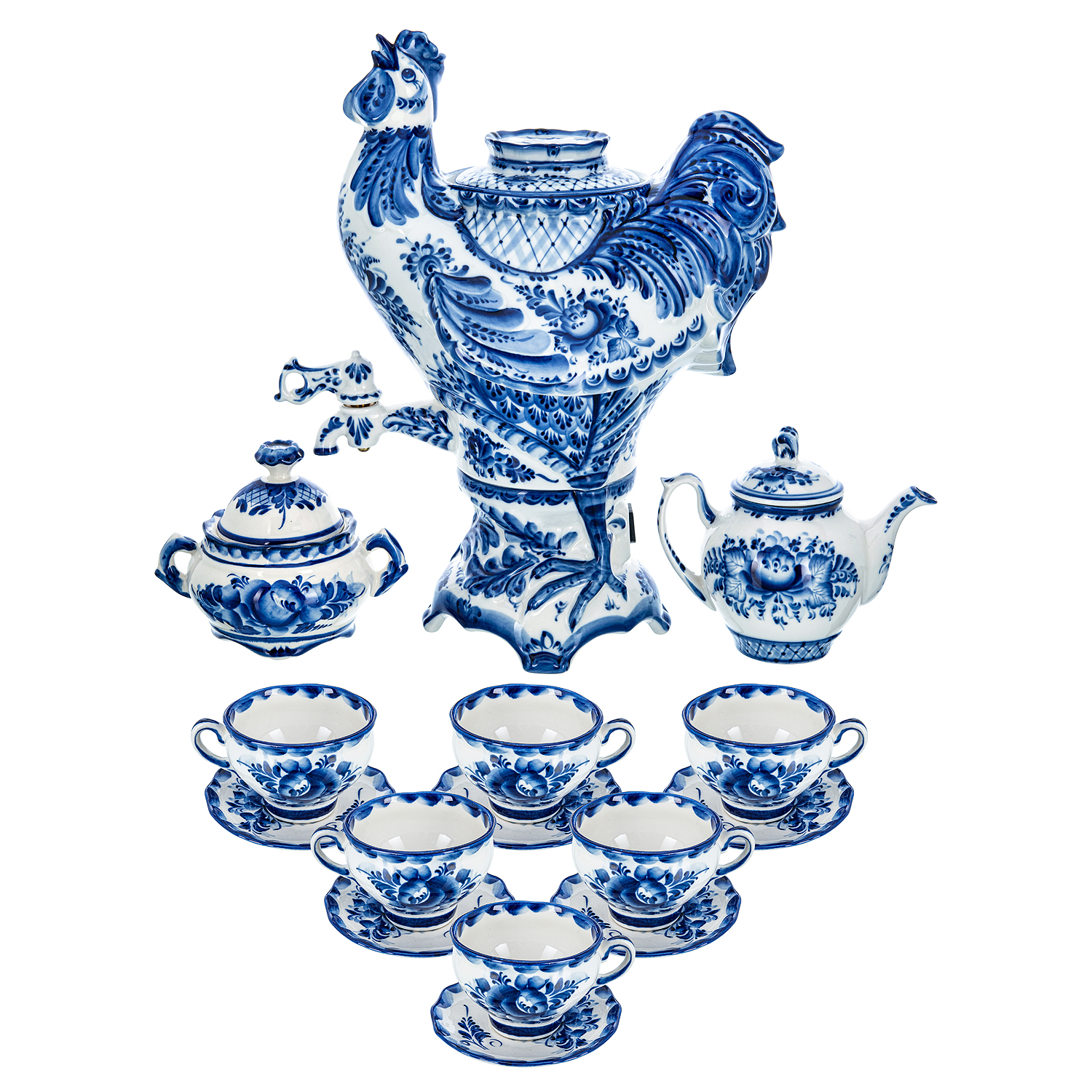 Самовар электрический 3,5 л с сервизом "Петушок". Гжель