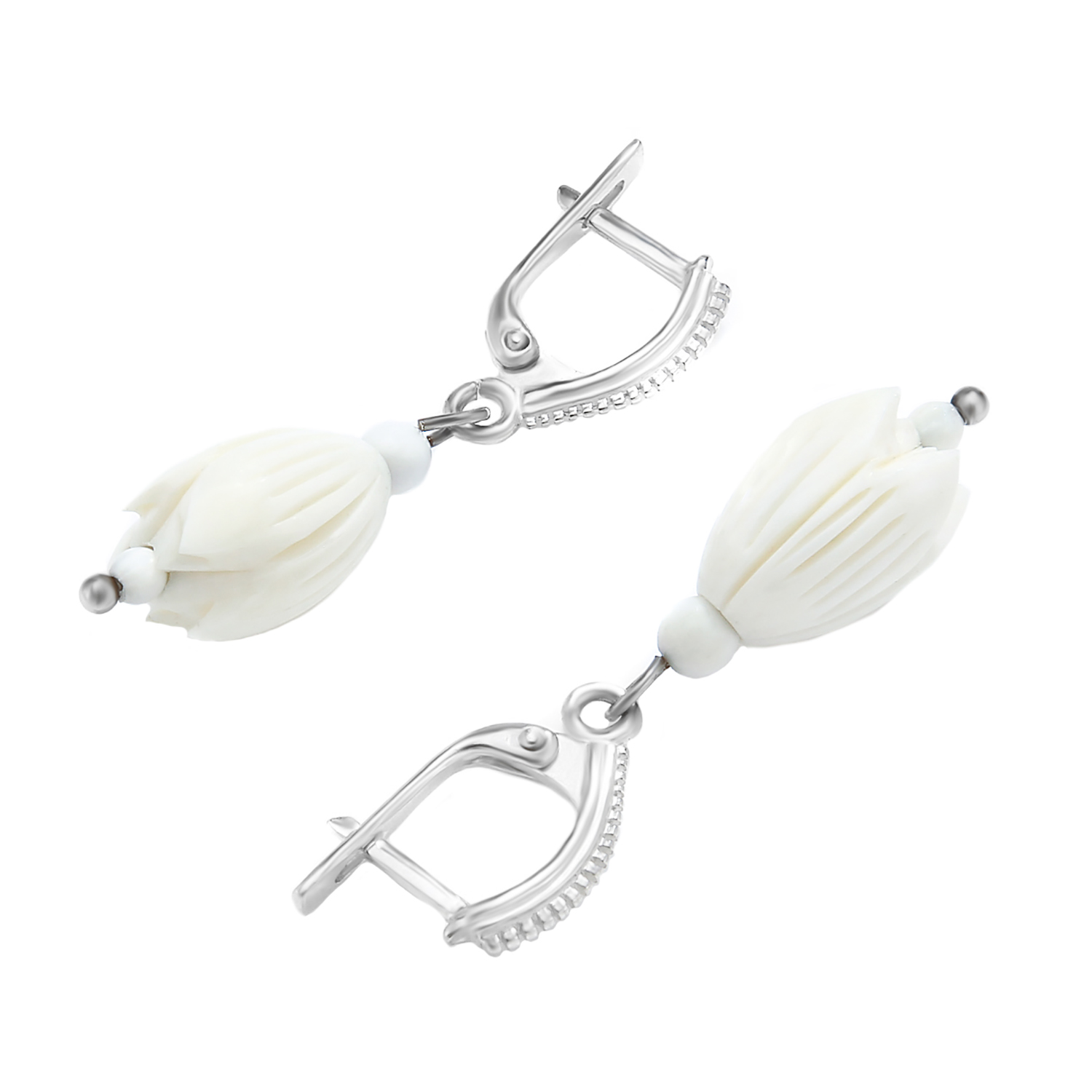 0068731 Бивень мамонта Серьги"Подснежники"серебрение