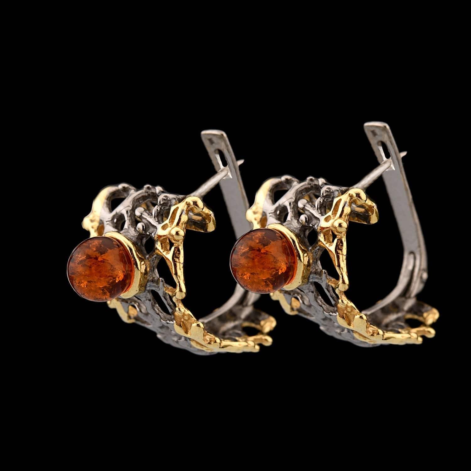 Серьги с янтарными вставками