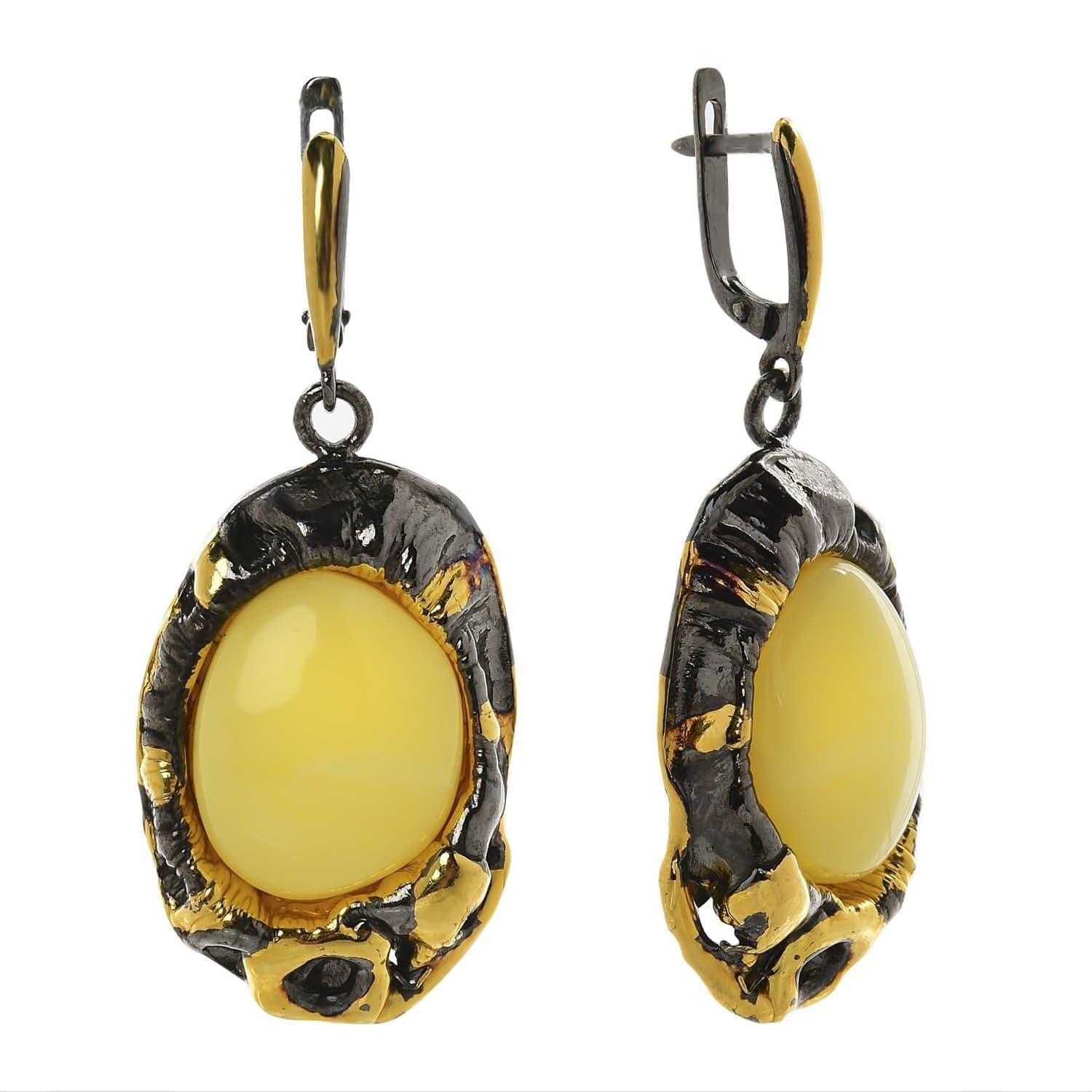 Дизайнерские серьги изготовлены российским ювелиром вручную из ценных поделочных материалов - солнечного балтийского янтаря (цельного, не прессованного) и драгоценного металла-самородка, серебра. Оправа частично украшена эффектной позолотой, подчеркивающей ванильный цвет и матовость натурального камня... ....Извините, товар отсутствует