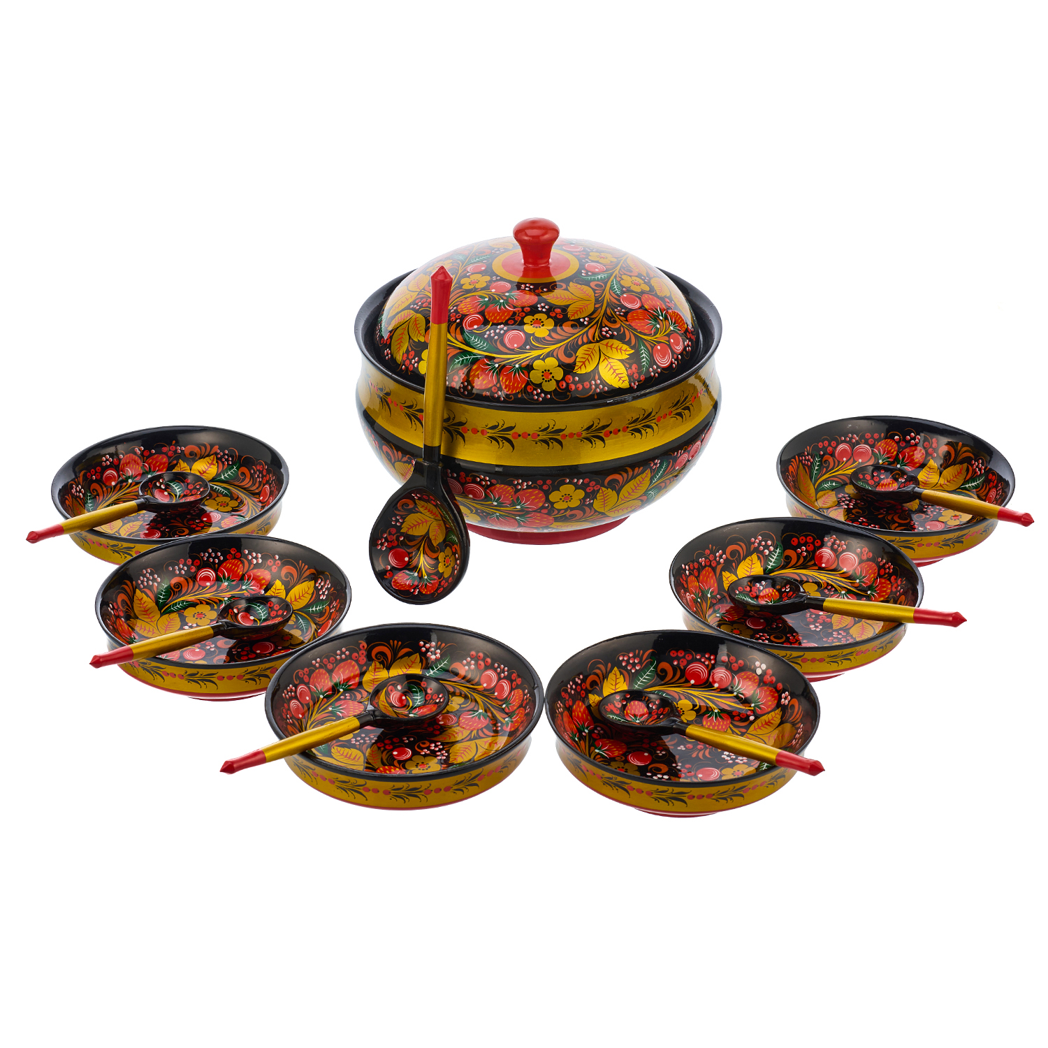 Русские подарки и сувениры → Хохлома → Посуда Хохлома → Сервизы Хохлома → Набор посуды для грибов. Хохлома