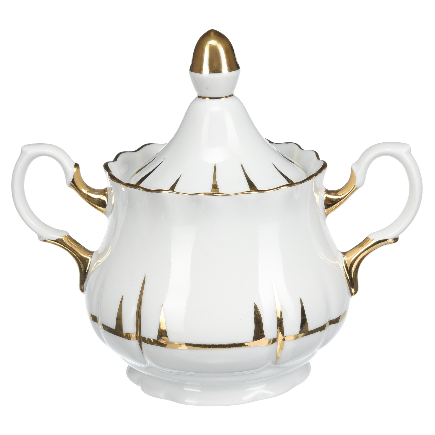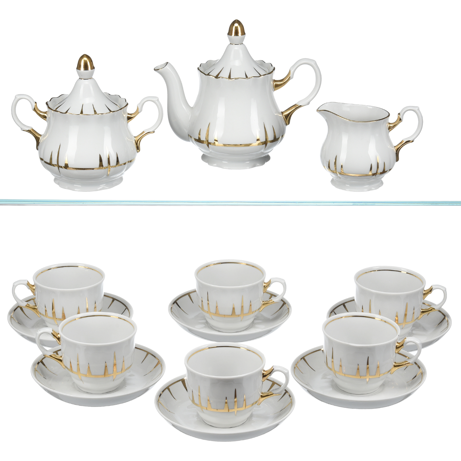 Комплектация: чайник 1 шт., сахарница 1 шт., сливочник чайный 1 шт., чашка чайная 6 шт., блюдце чайное 6 шт.