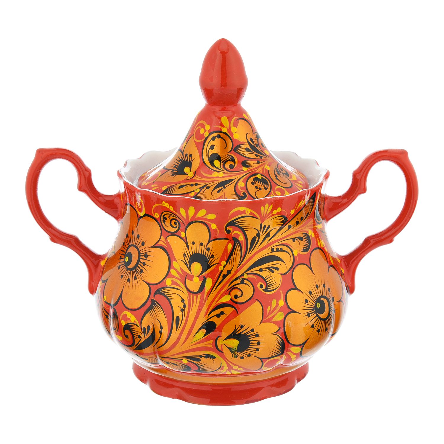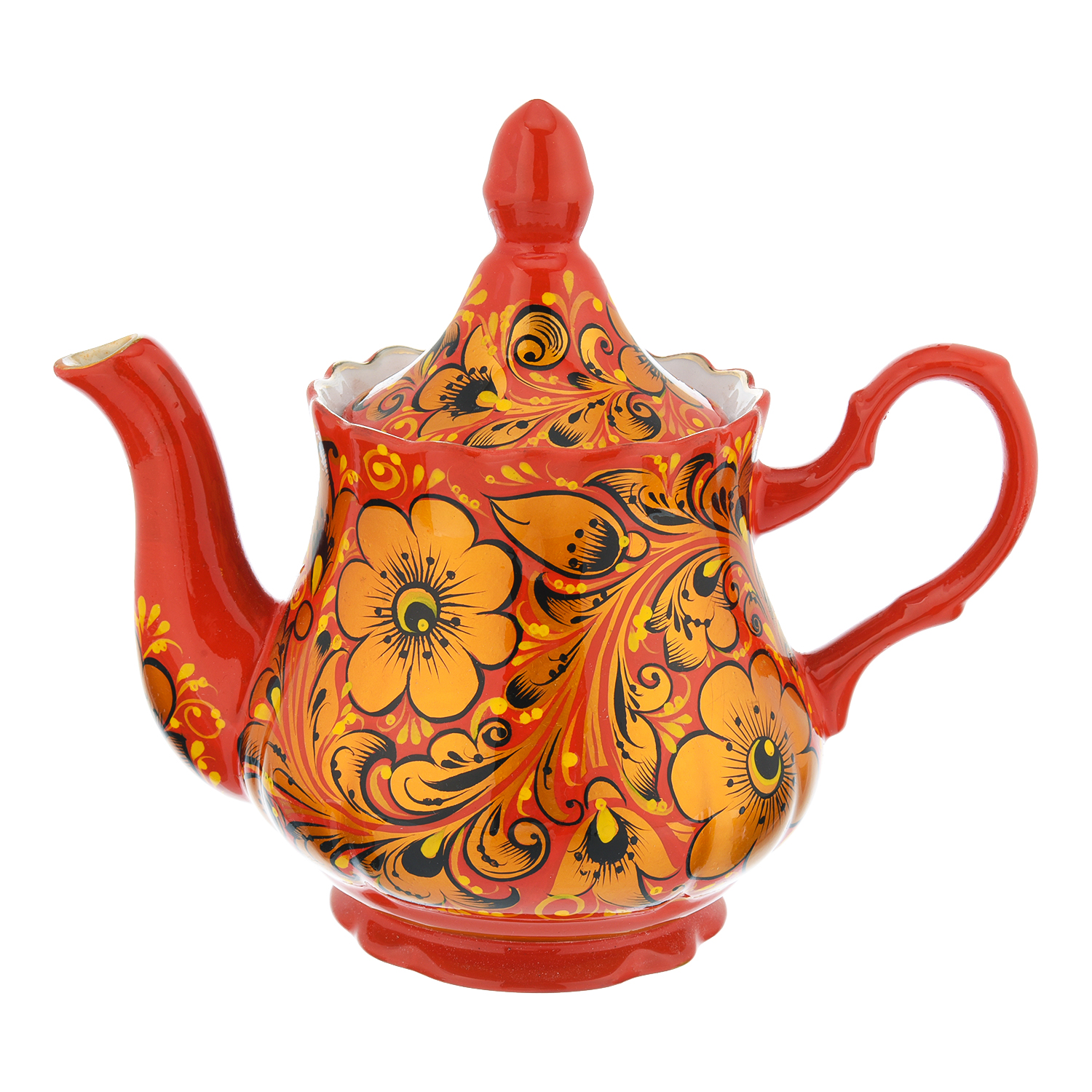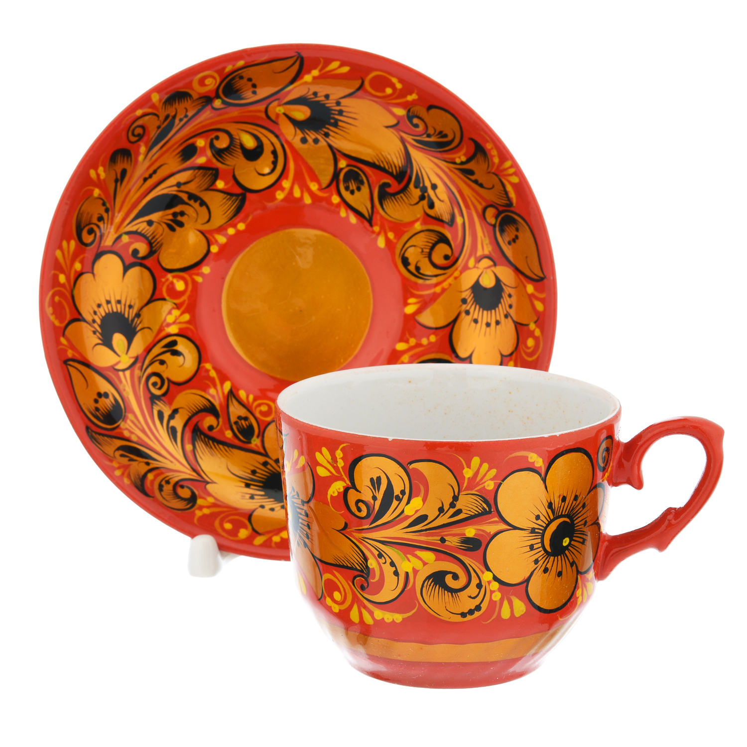 Чайный сервиз на 6 персон "Кудрина на красном". Хохлома