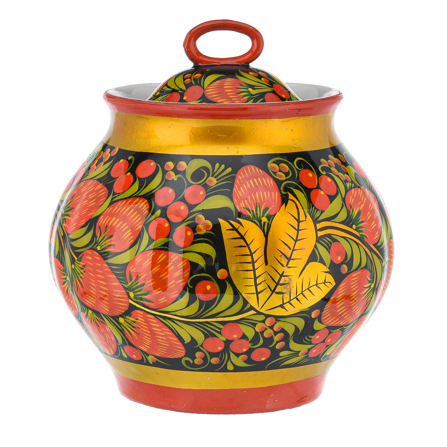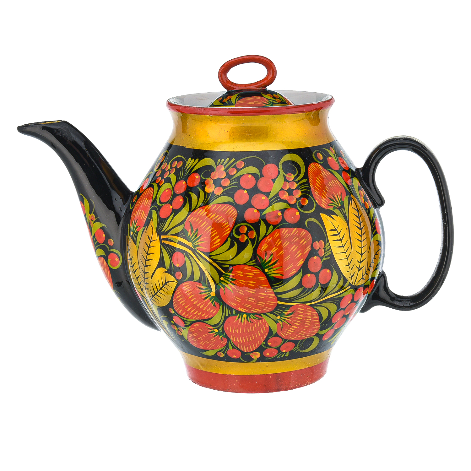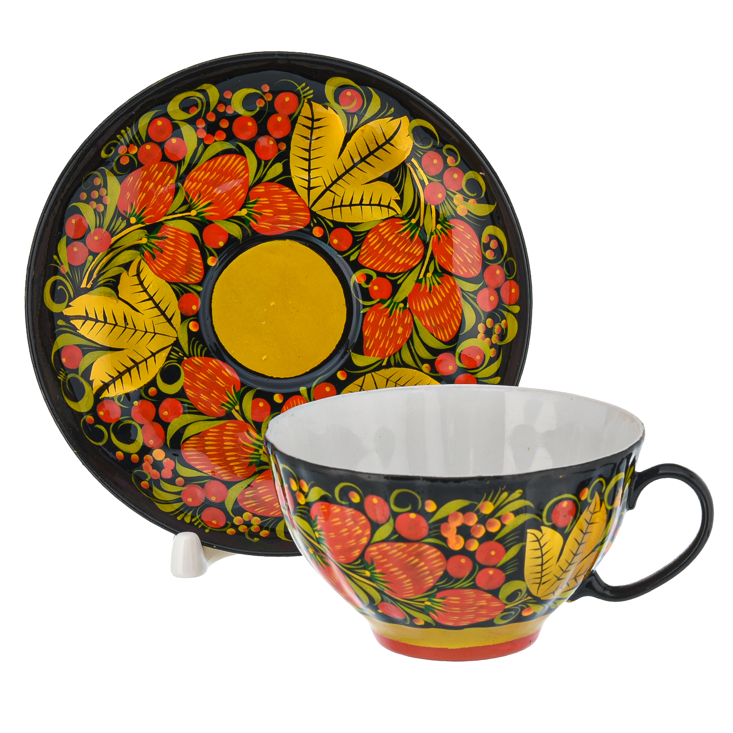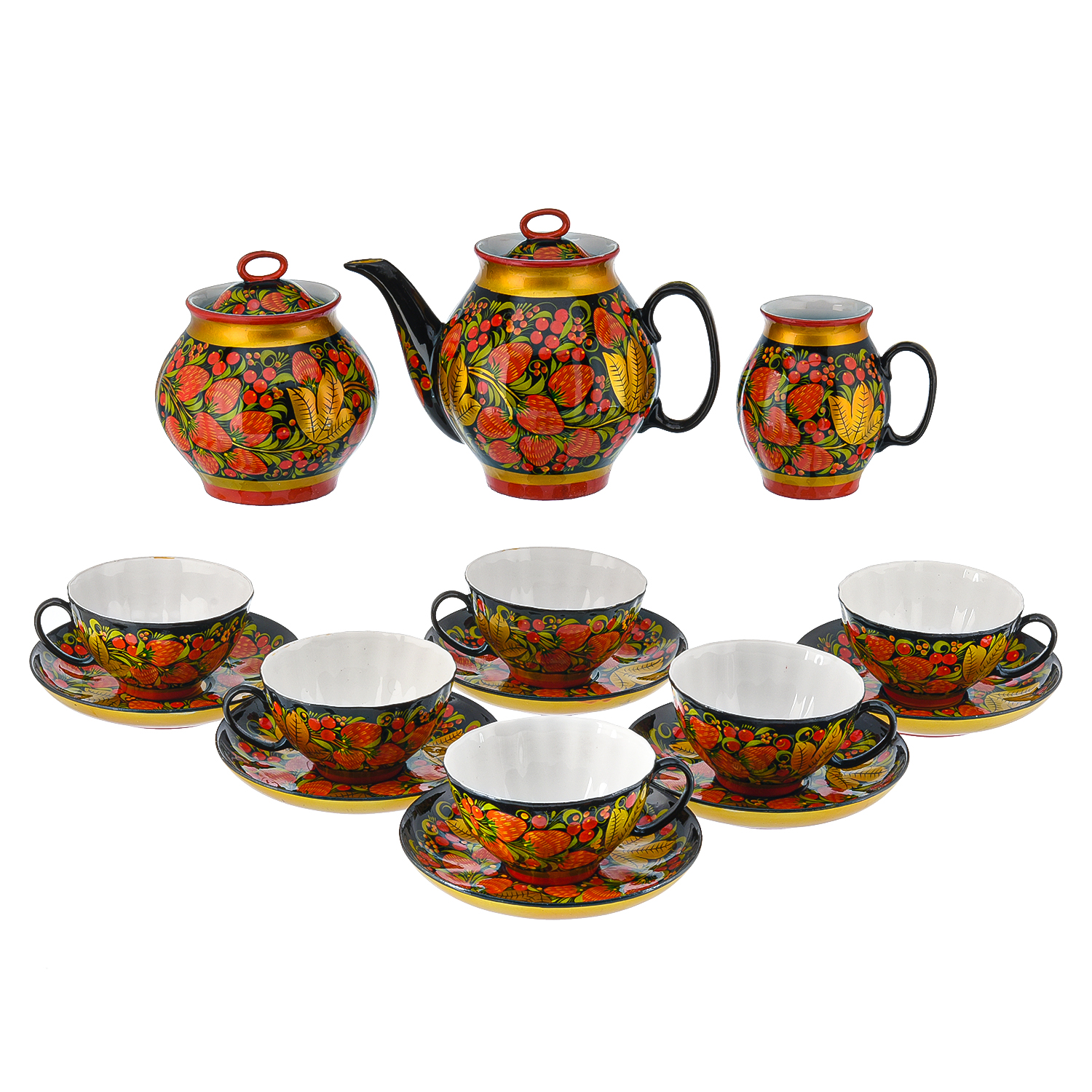Чайный сервиз на 6 персон "Клубника". Хохлома.