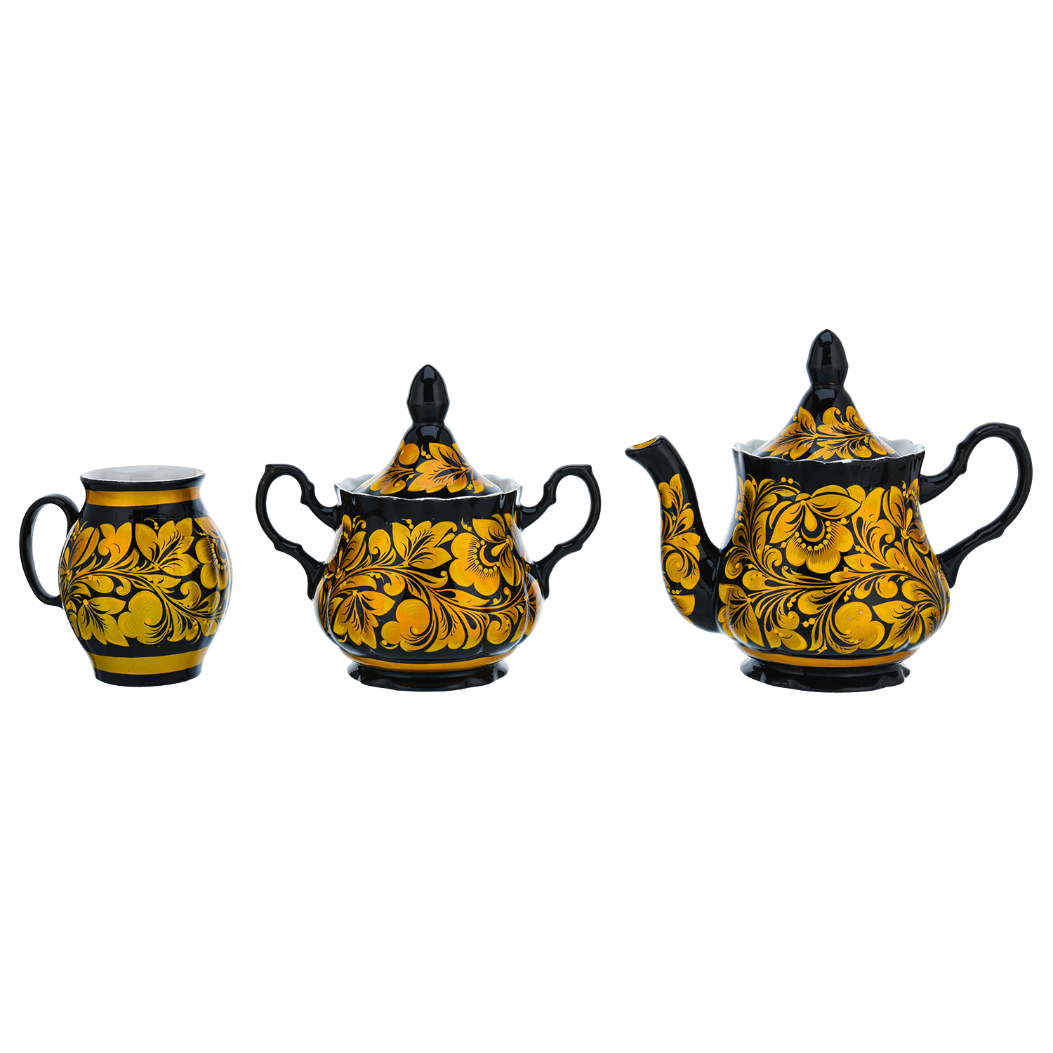 Чайный сервиз на 6 персон "Кудрина". Хохлома