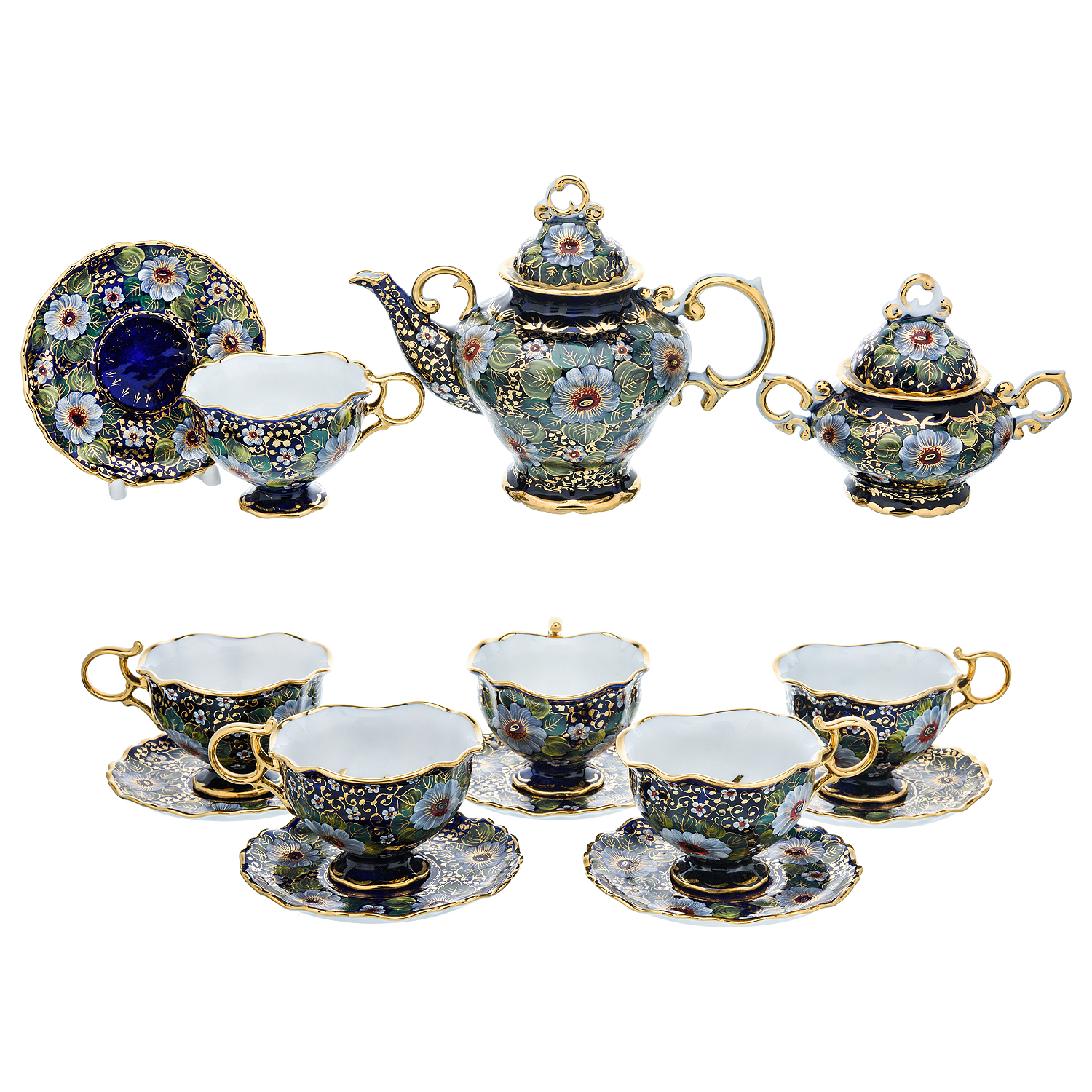 Чайный сервиз на 6 персон "Дворцовый. Ромашки". Гжель