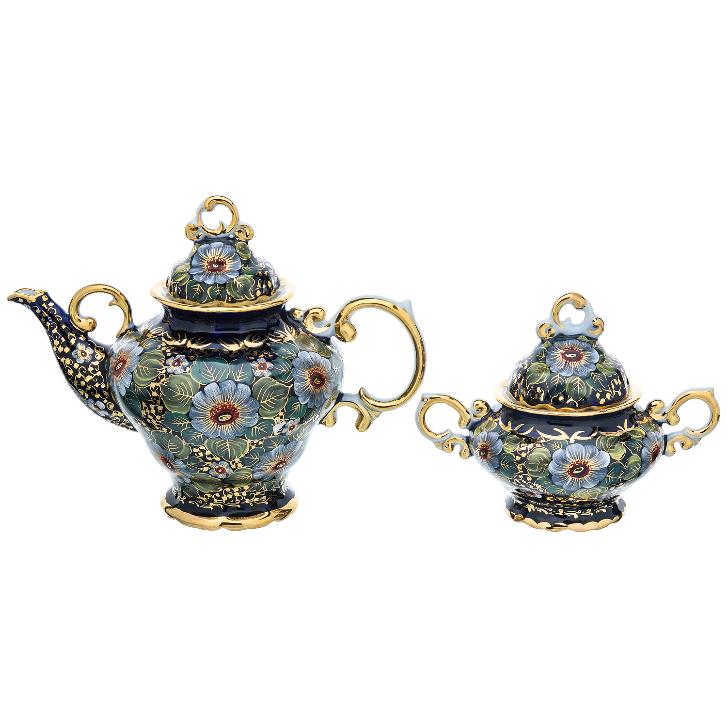 Русские подарки и сувениры → Посуда → Сервизы → Чайный сервиз на 6 персон "Дворцовый. Ромашки". Гжель