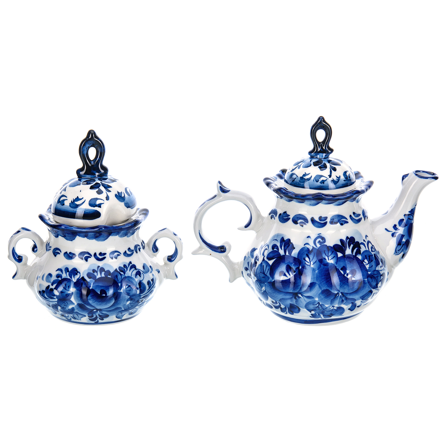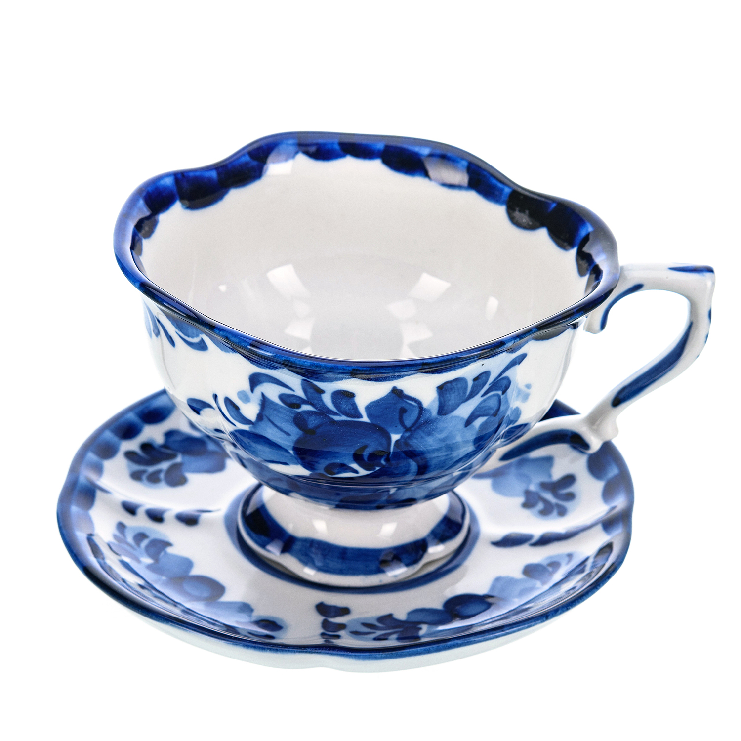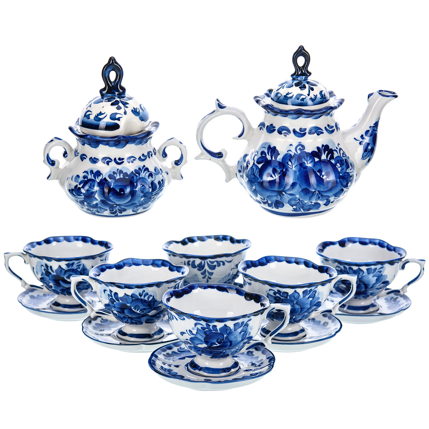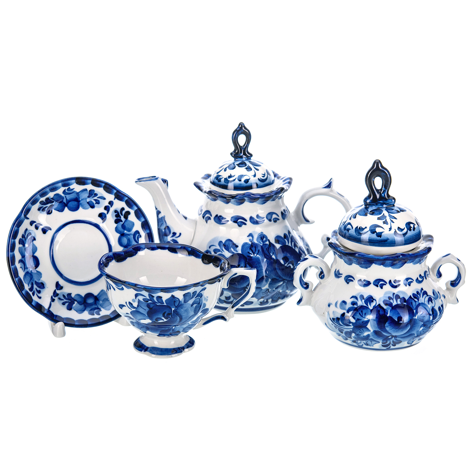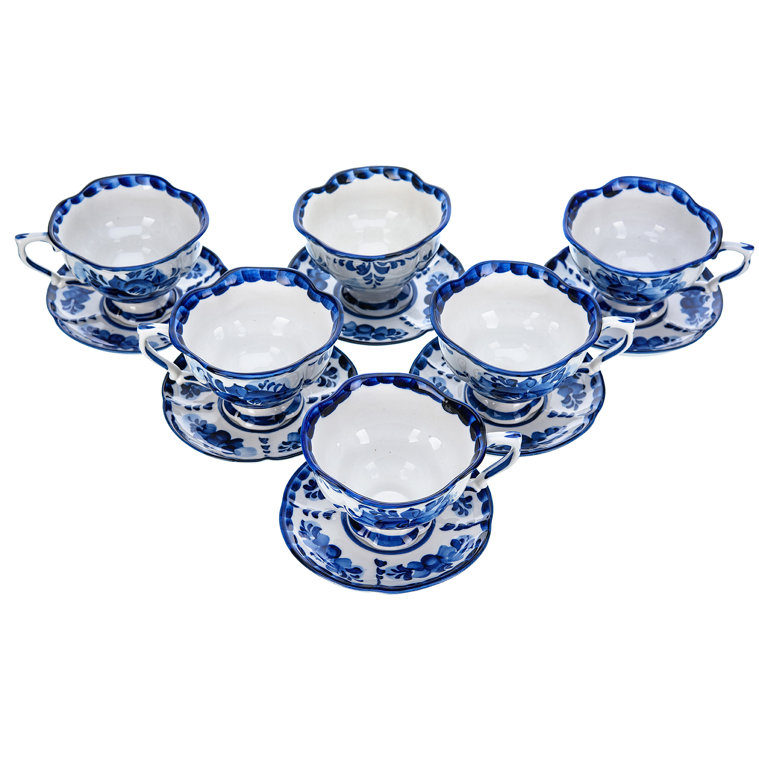 Чайный сервиз на 6 персон "Утренний анемон". Гжель