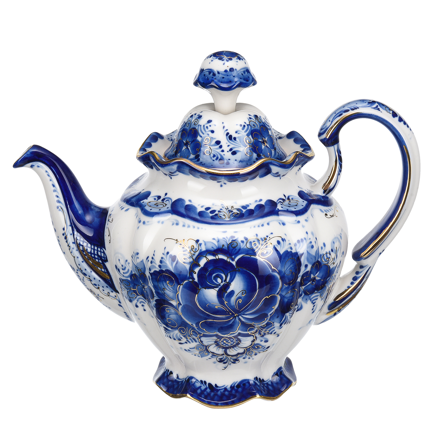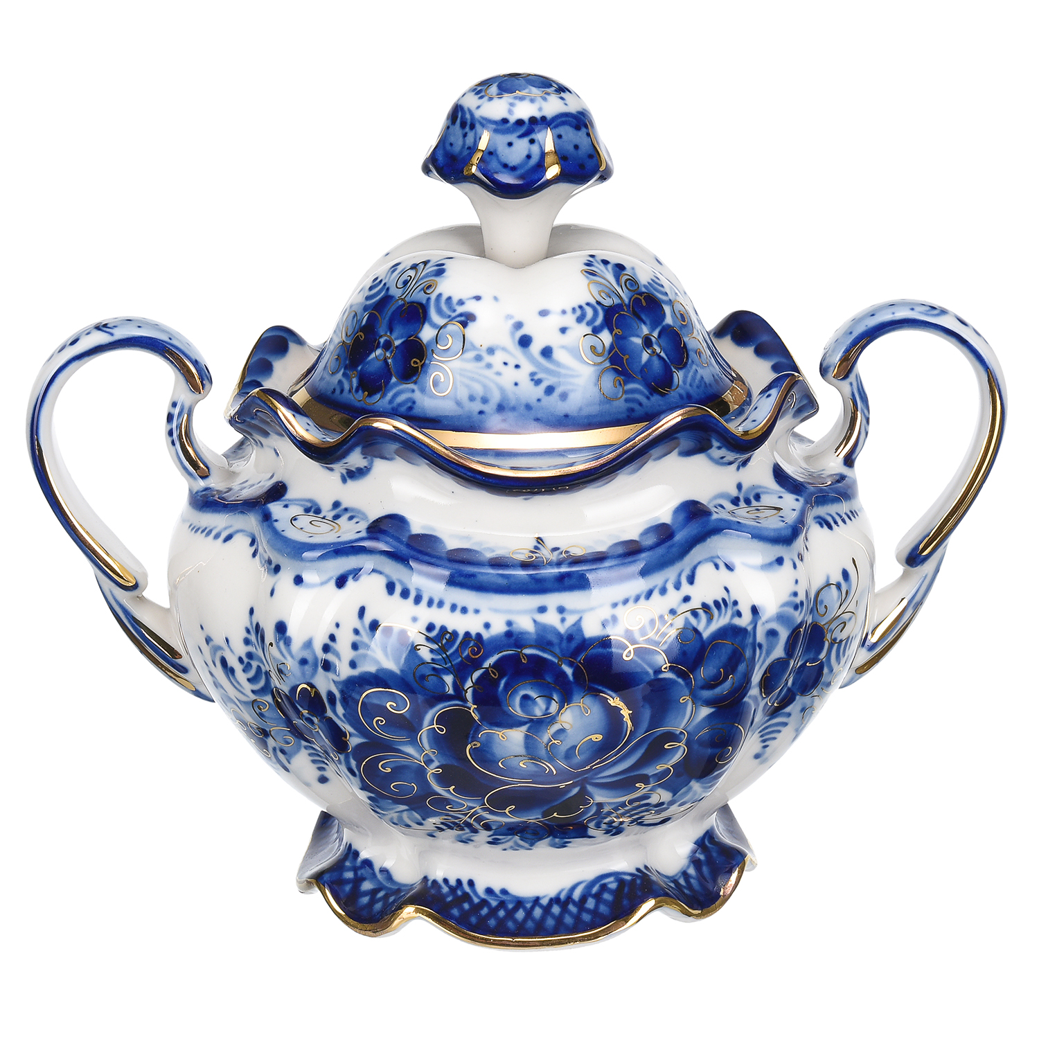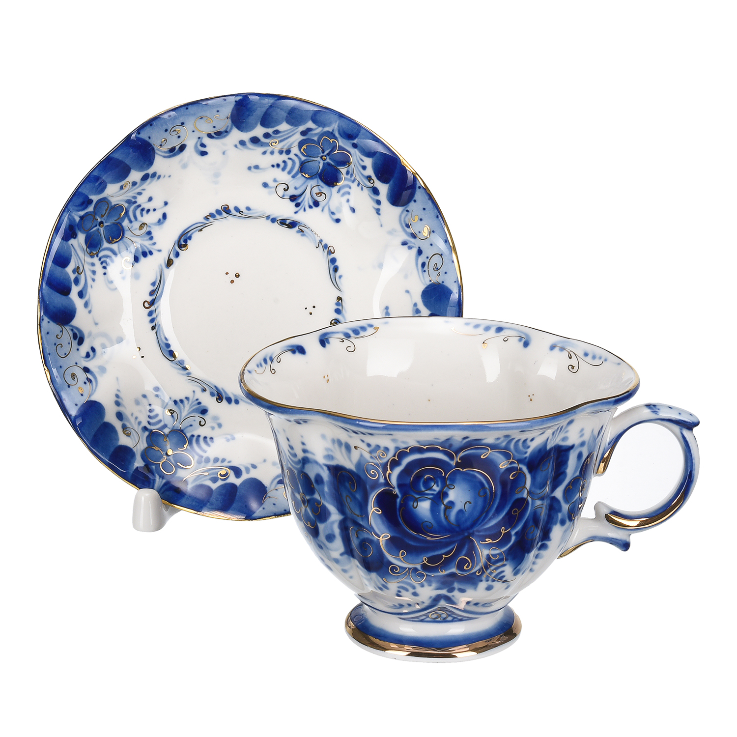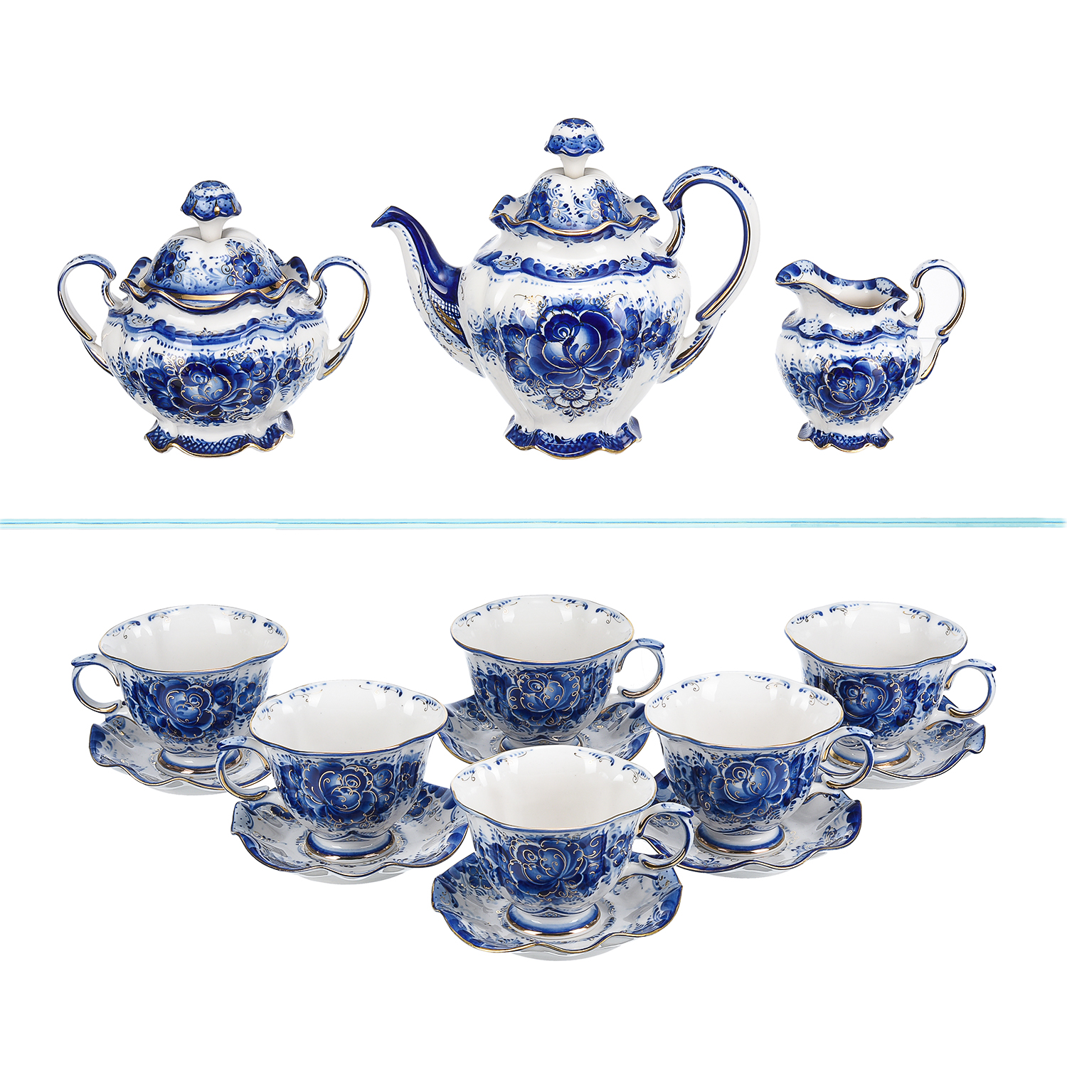 09102 Гжель Сервиз Чайный "Семейный" в зол, чаш будничн на 6 п. 15 пред. Авт. Алехин С.С. ....