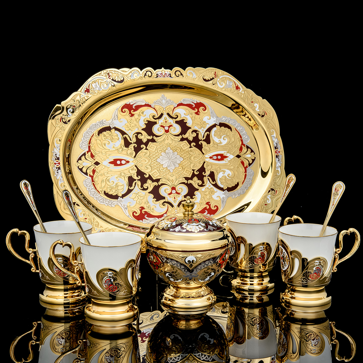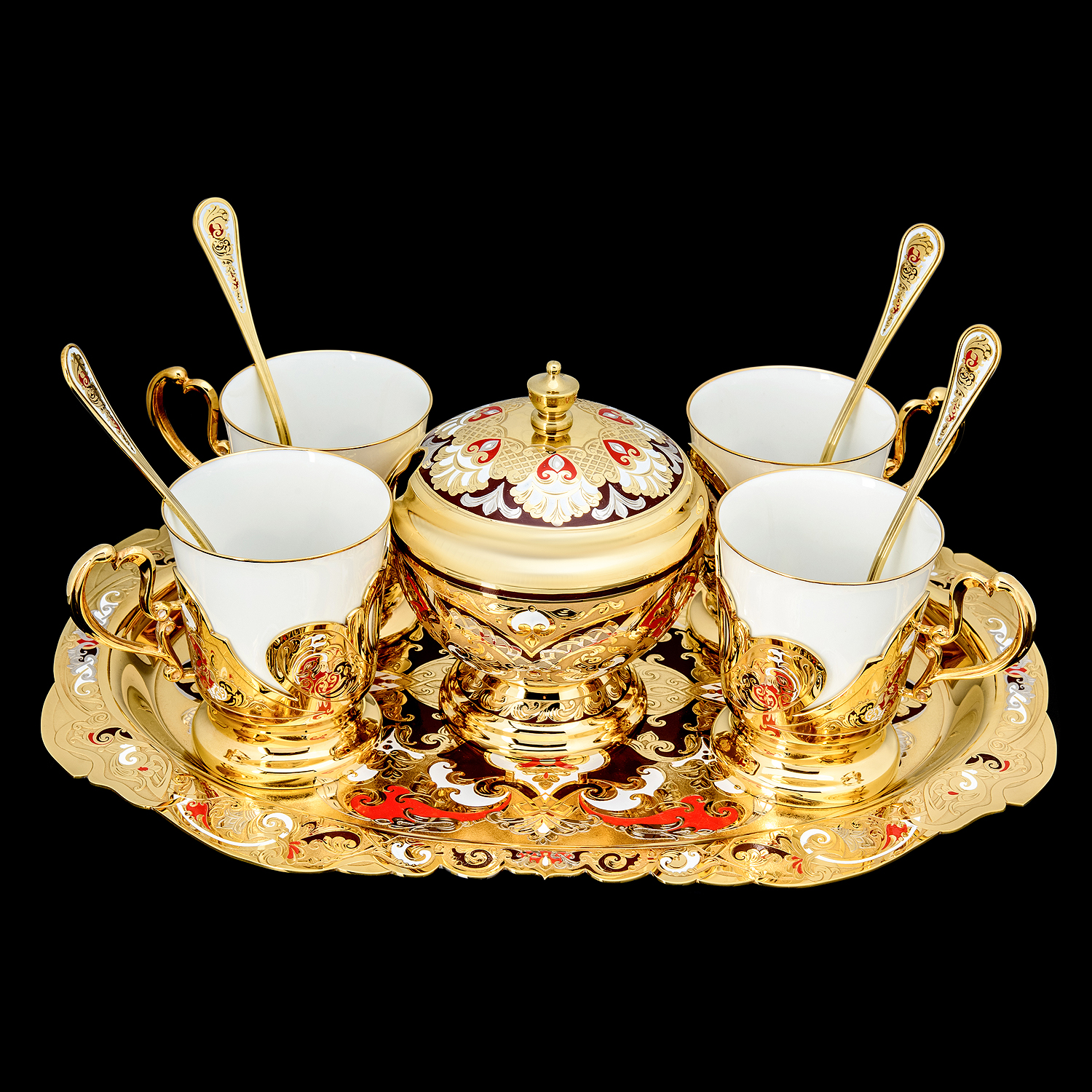 Кофейный набор на 4 персоны с сахарницей. Златоуст