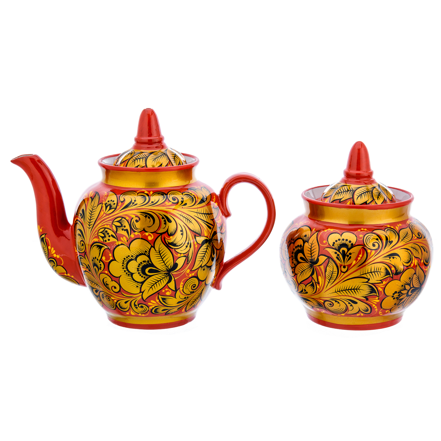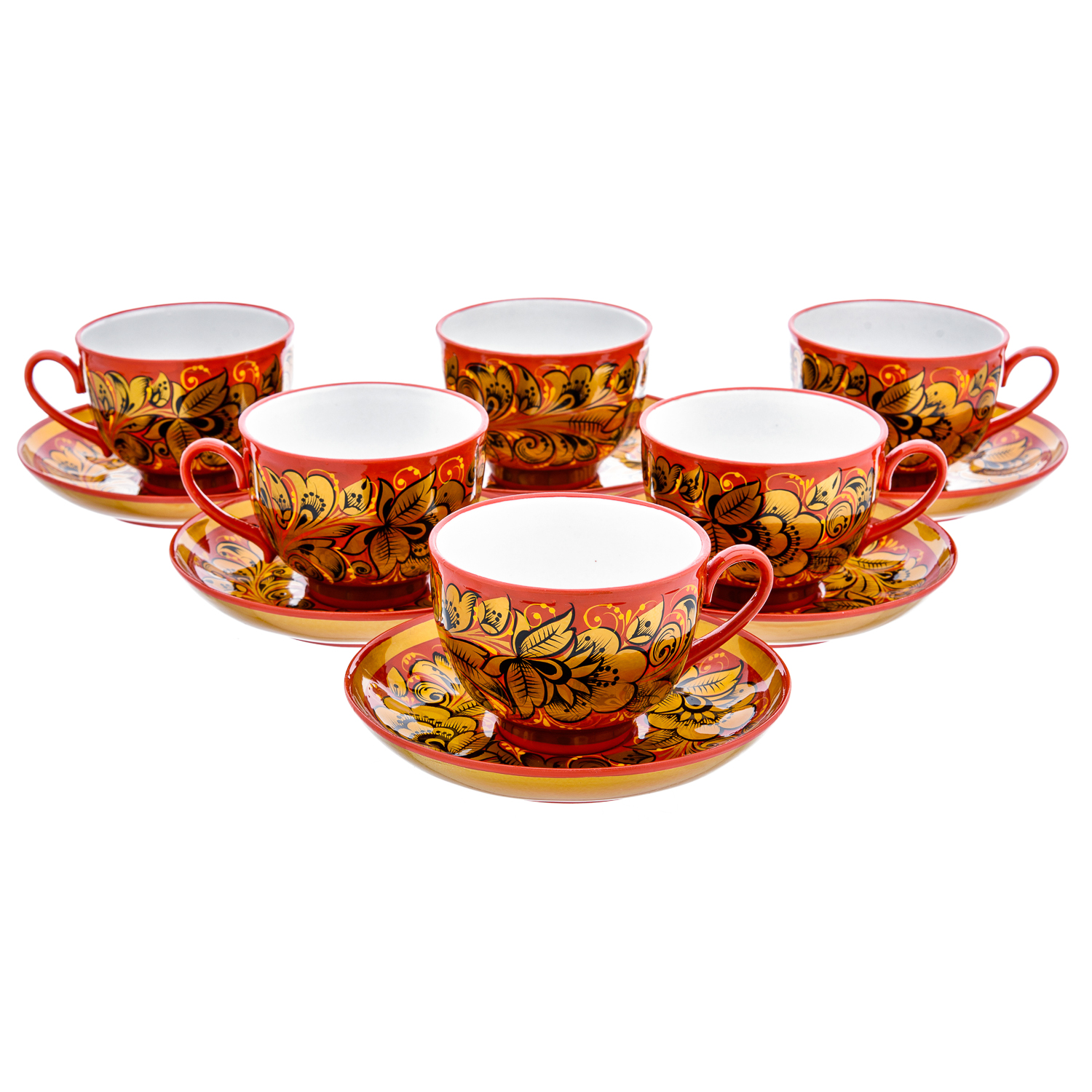 Чайный сервиз на 6 персон "Кудрина красная". Хохлома