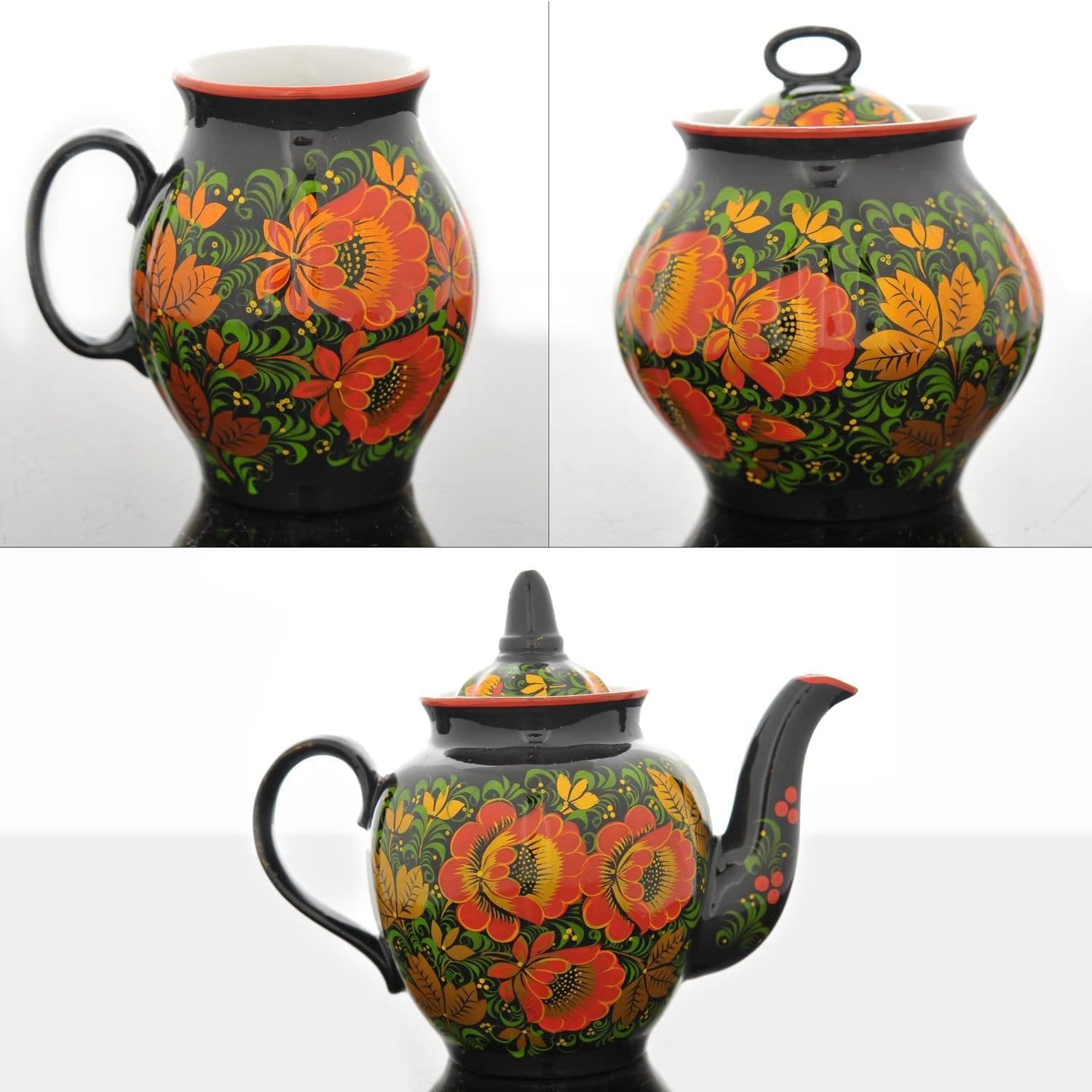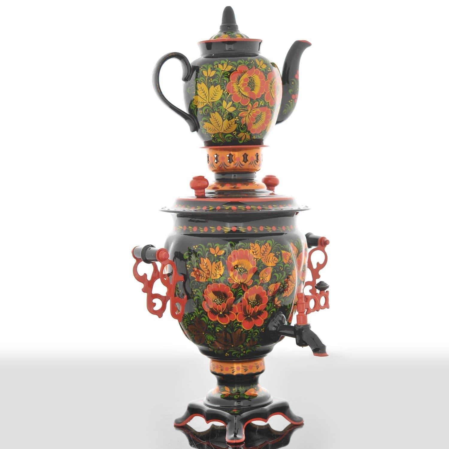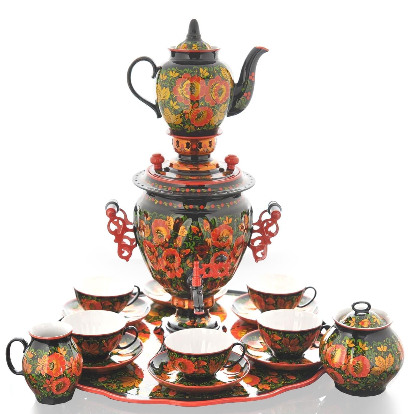 0012789 ХОХЛОМА Сервиз на 6п"Чаепитие"Самовар 3л+поднос+чайник+сахарница ...