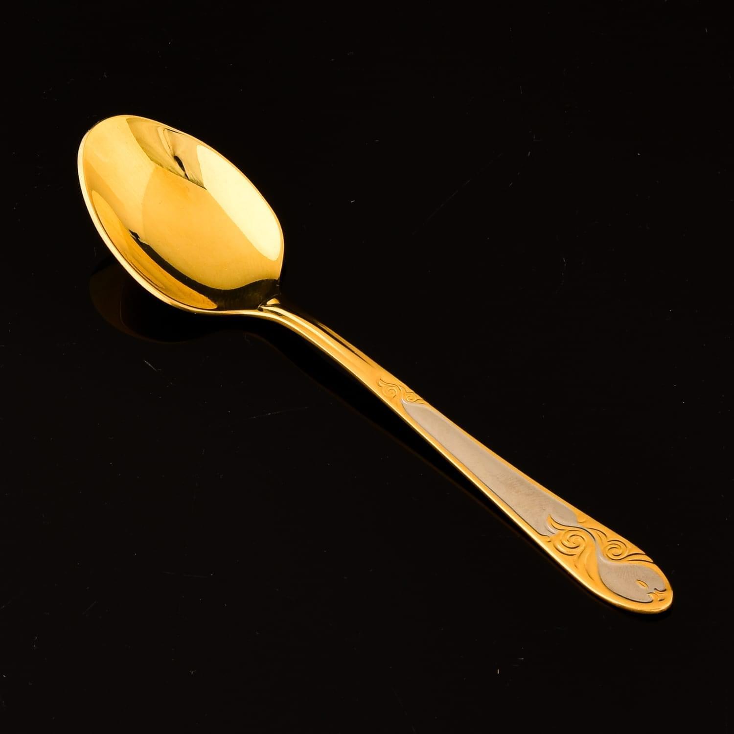 Корпуса сахарницы, подноса, каждой ложки и каждого подстаканника отлиты из металлического медного сплава - латуни, которая издавна используется художниками по металлу для создания роскошных элементов декора и предметов обихода. Литье выполнено по авторскому эскизу с использованием форм Императорского фарфорового завода, расположенного в Санкт-Петербурге. Для ча