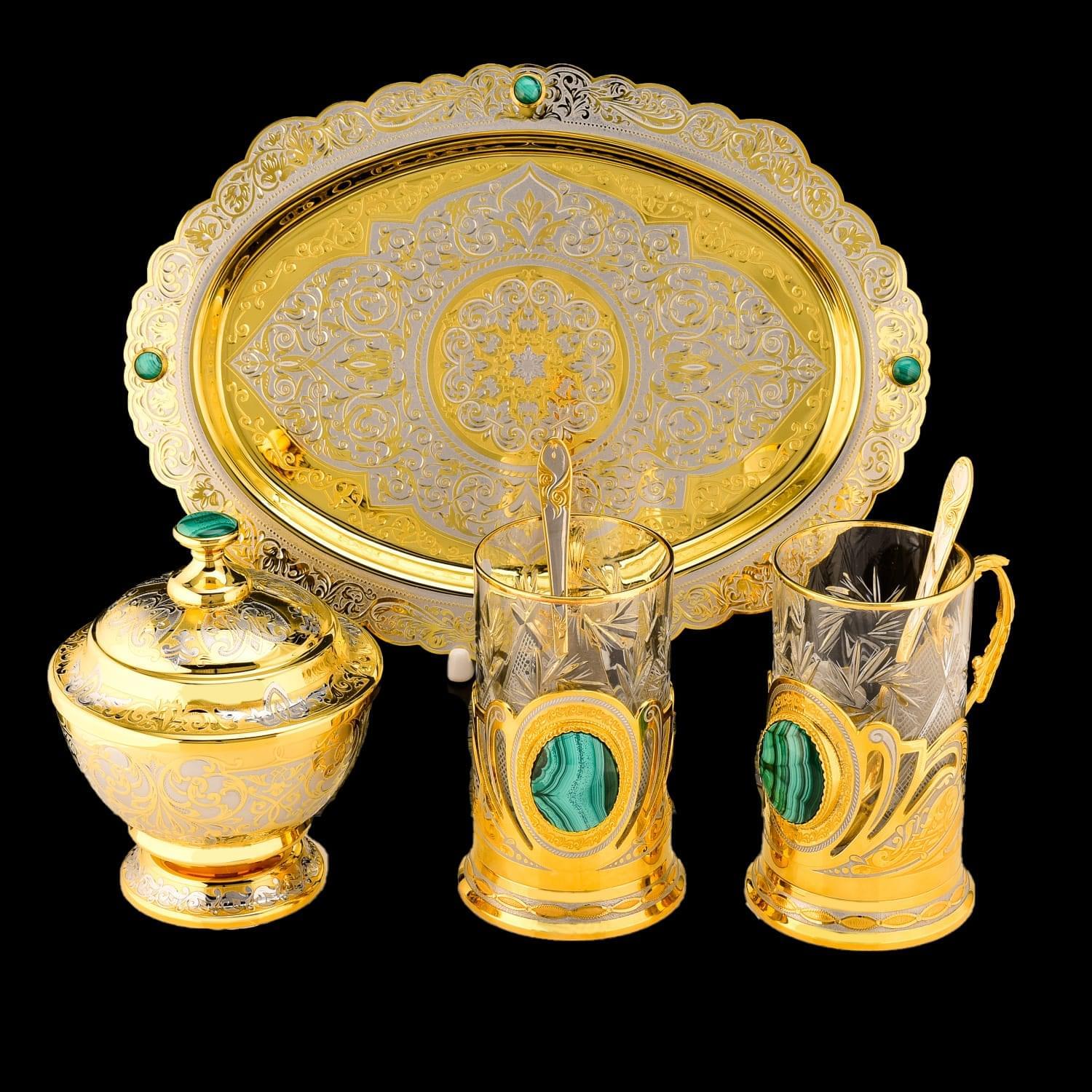 Эксклюзивная работа златоустовских мастеров, художника по металлу и художника-гравера, чайный набор "Малахитовый" Златоуст - это красивый и функциональный vip-подарок для состоятельного человека, женщины или мужчины, коллеги, друга, родственника, руководителя, партнера по бизнесу. для молодоженов и семейной пары на Свадьбу, новоселье. Юбилей, День рождения, общий или личный, профессиональный праздник.