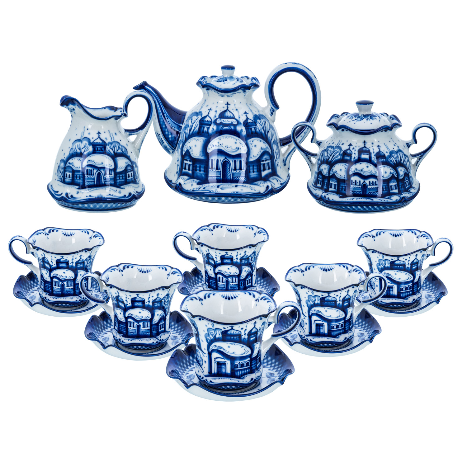 Чайный сервиз на 6 персон "Зимушка". Гжель