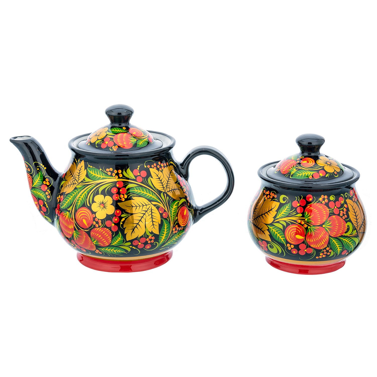 Чайный сервиз на 6 персон "Клубника". Хохлома