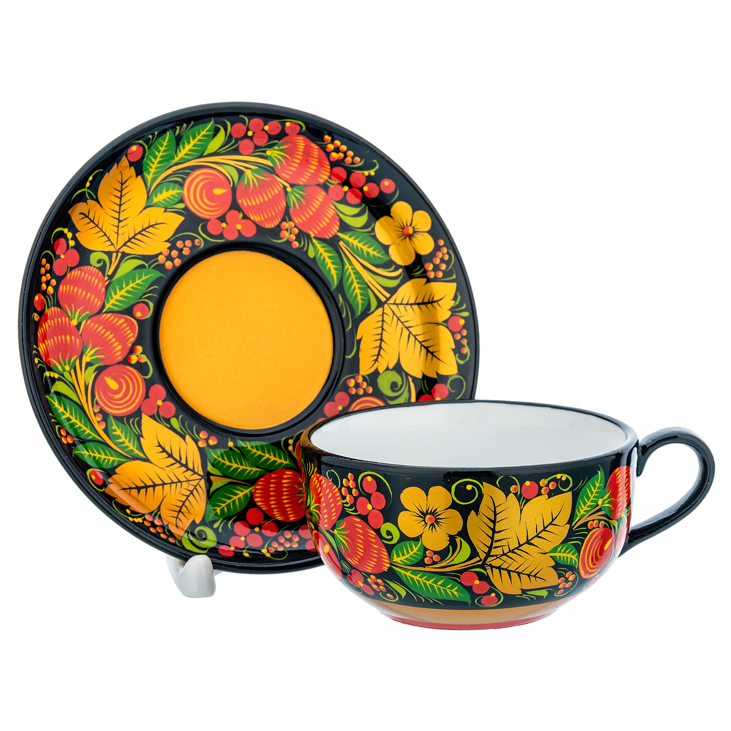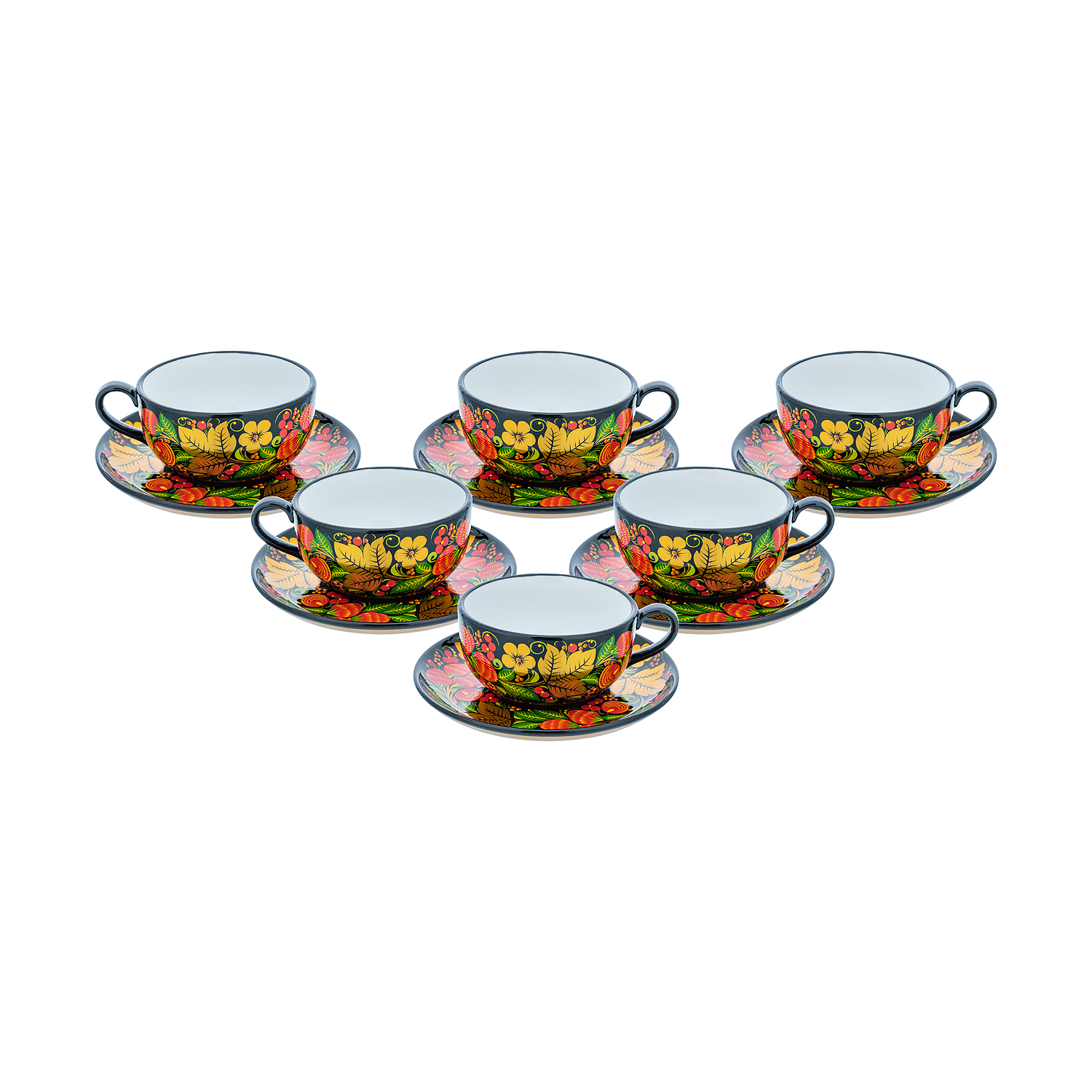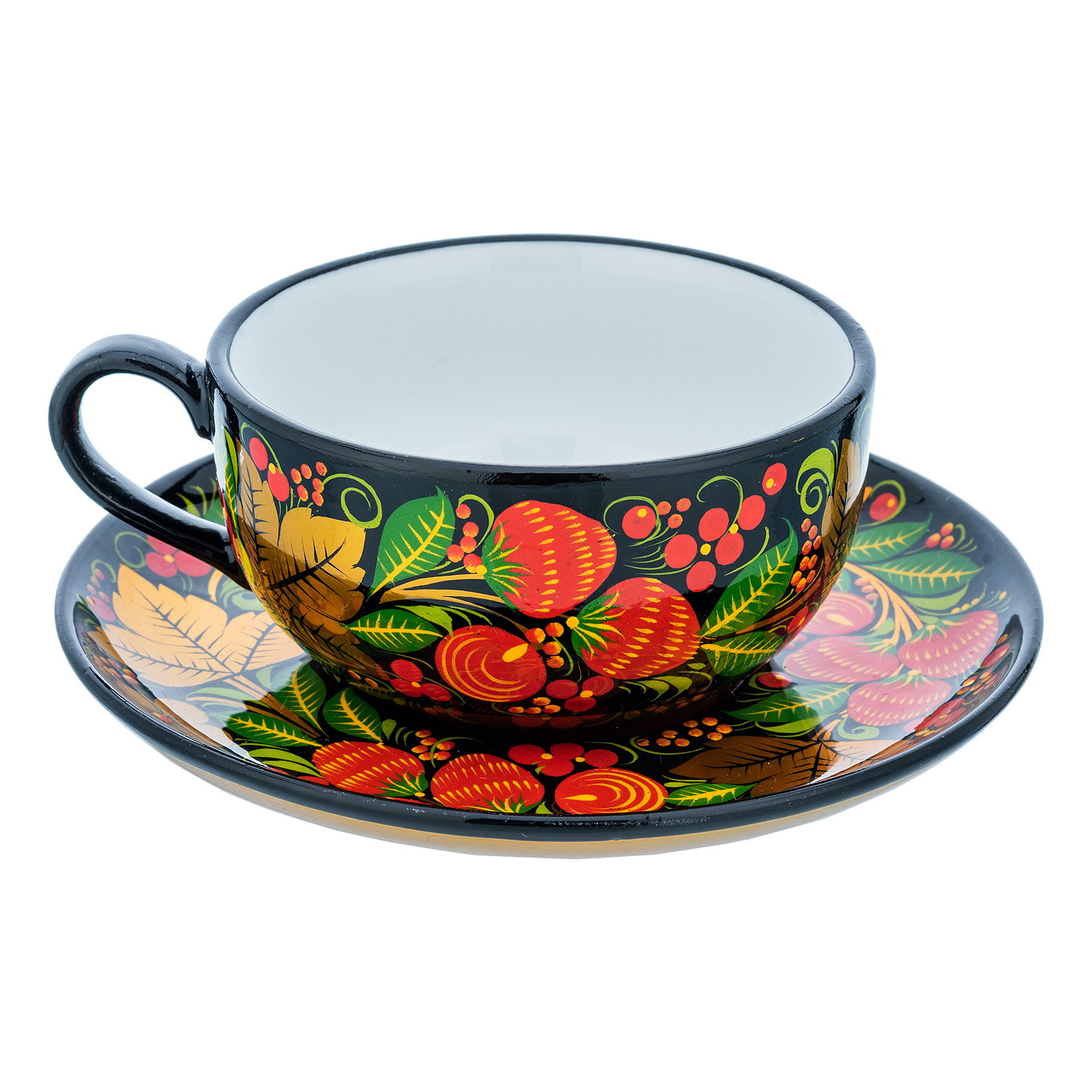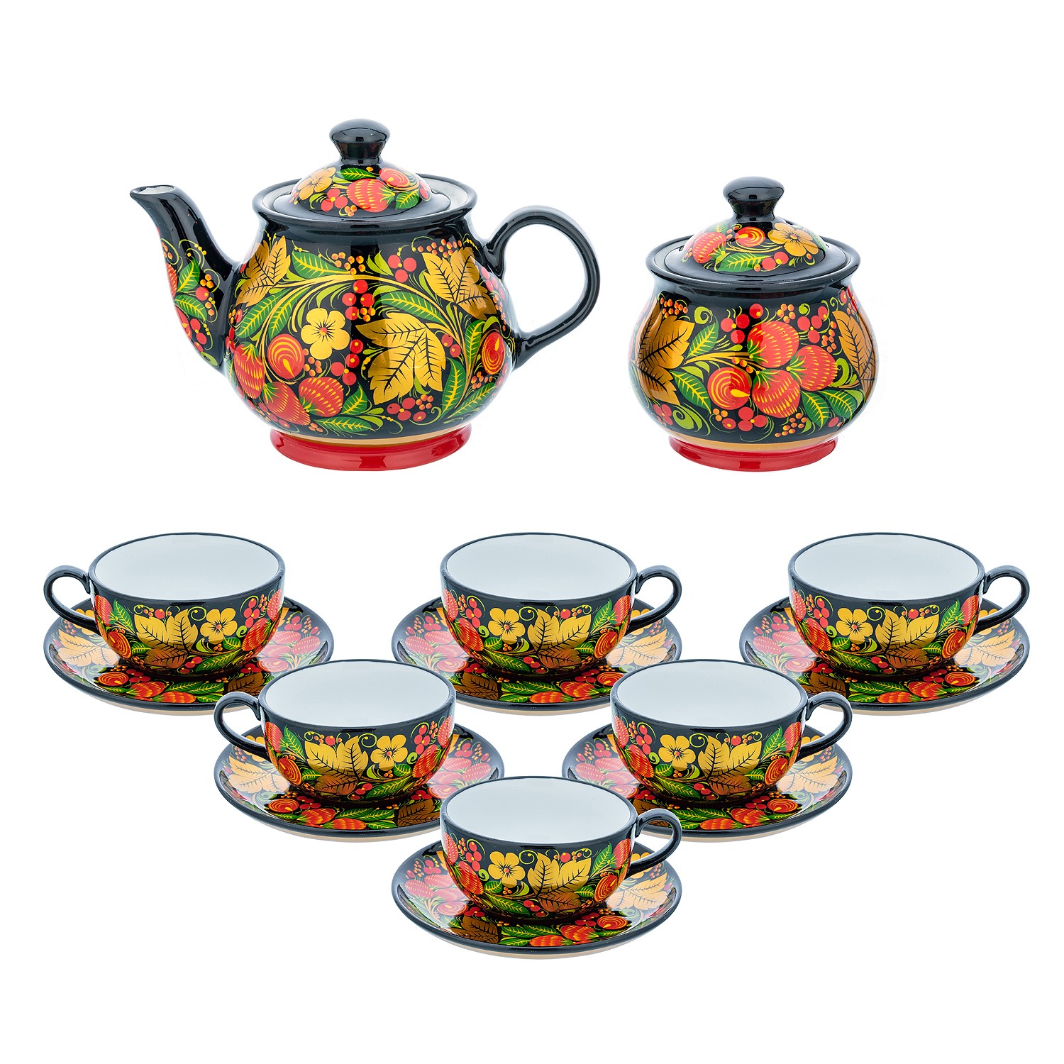 Чайный сервиз на 6 персон "Клубника". Хохлома.Материалы: фарфор, краски, лак.