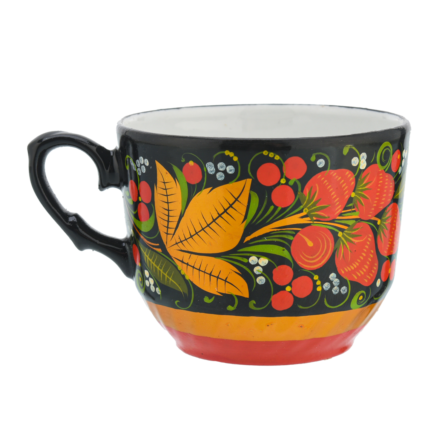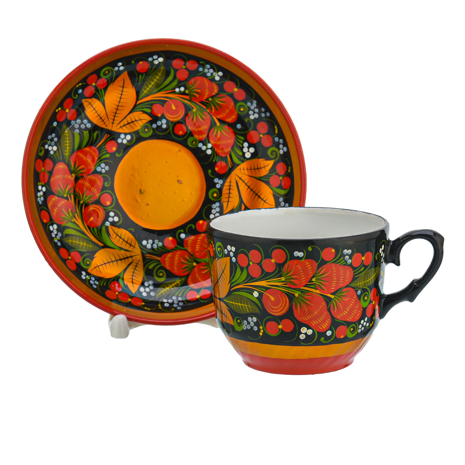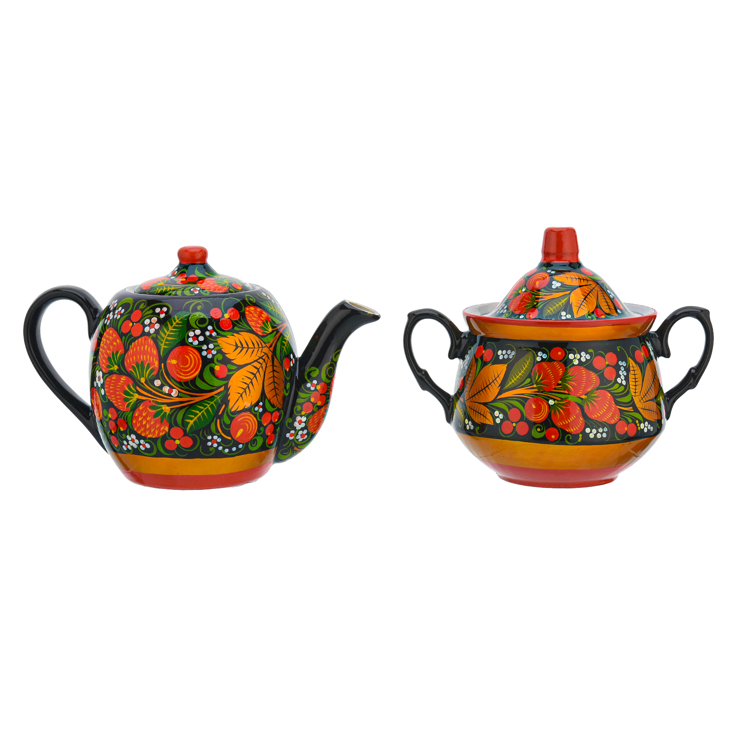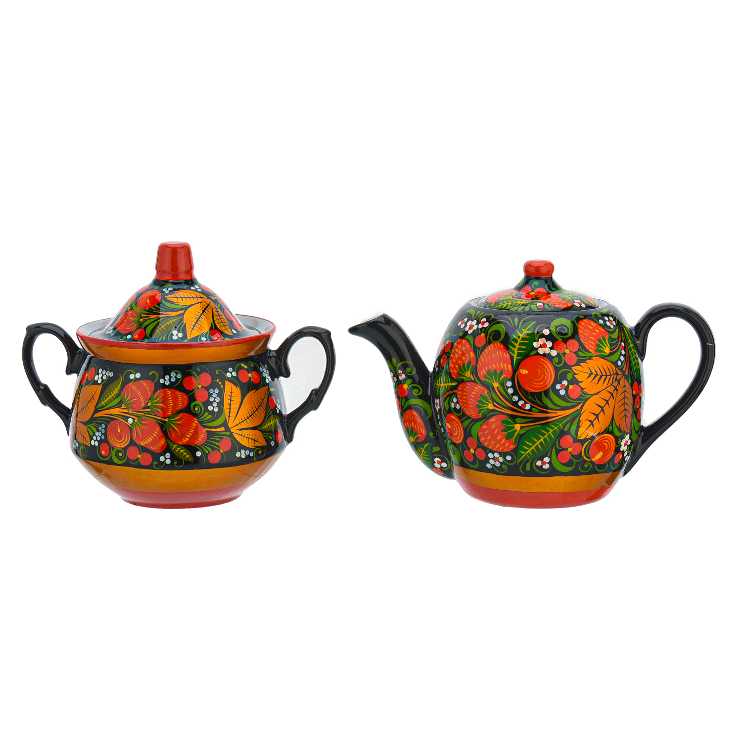 Чайный сервиз на 6 персон "Клубника". Хохлома.Материалы: фарфор, краски, лак.