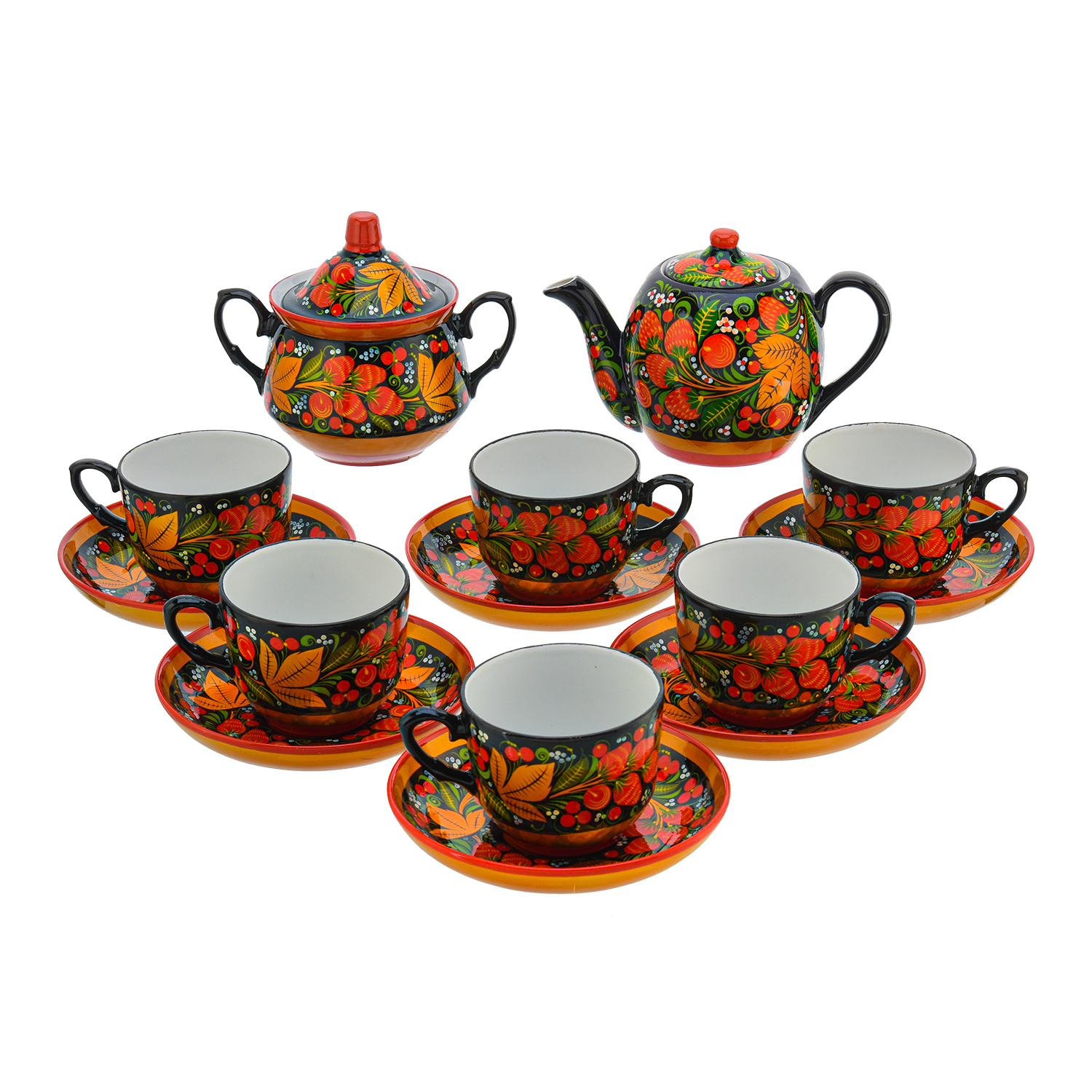 Чайный сервиз на 6 персон "Клубника". Хохлома