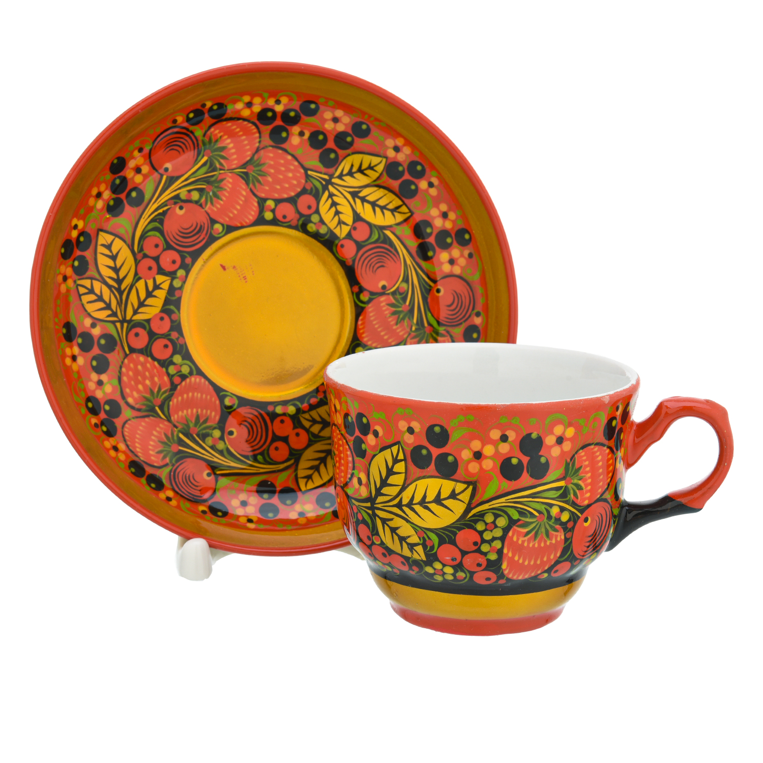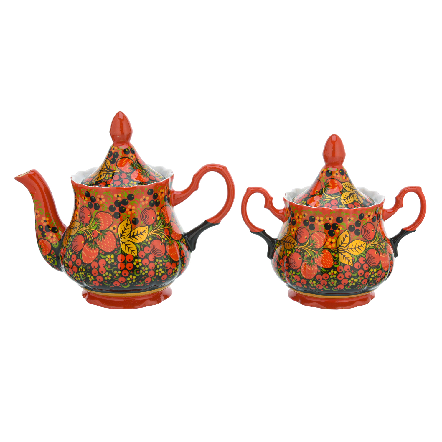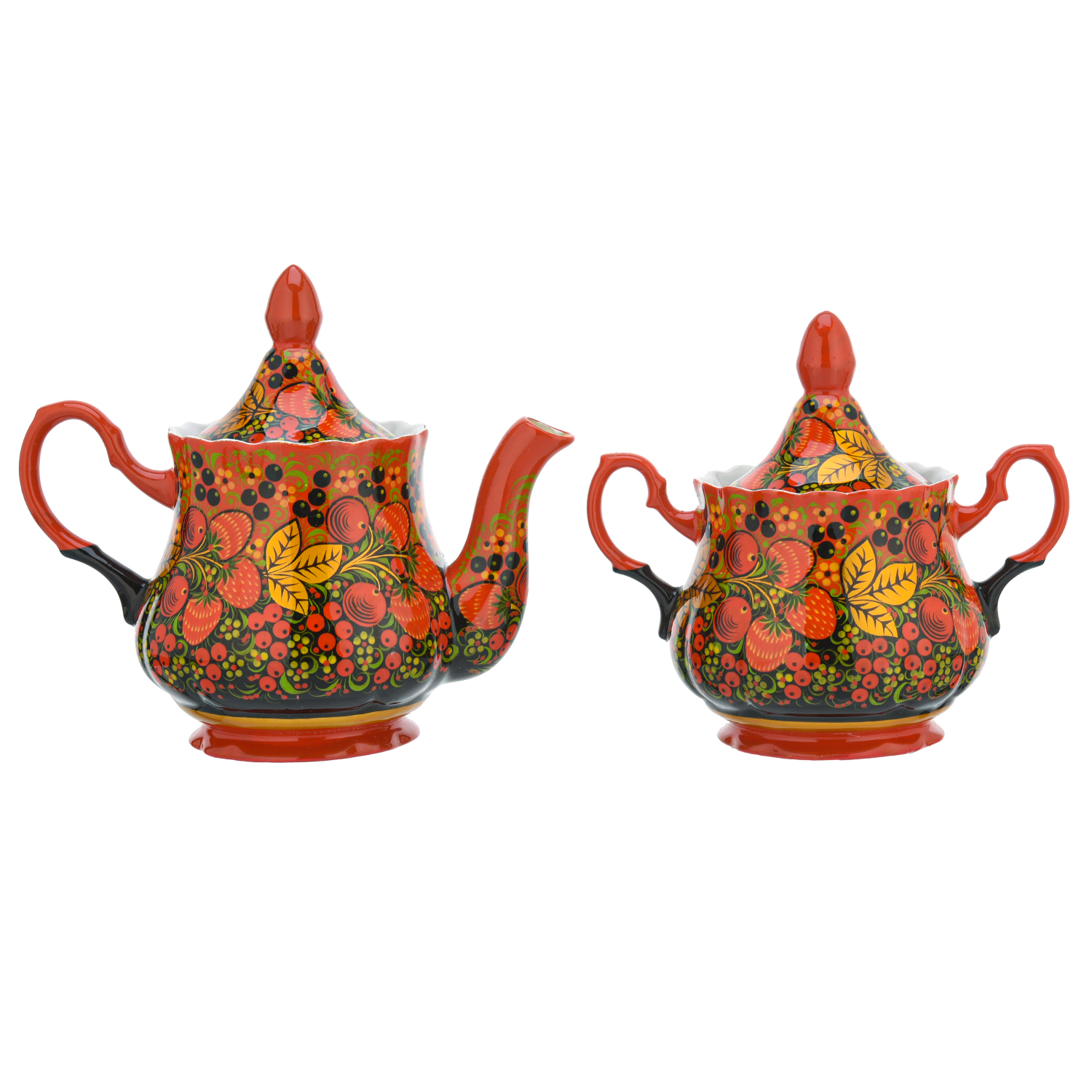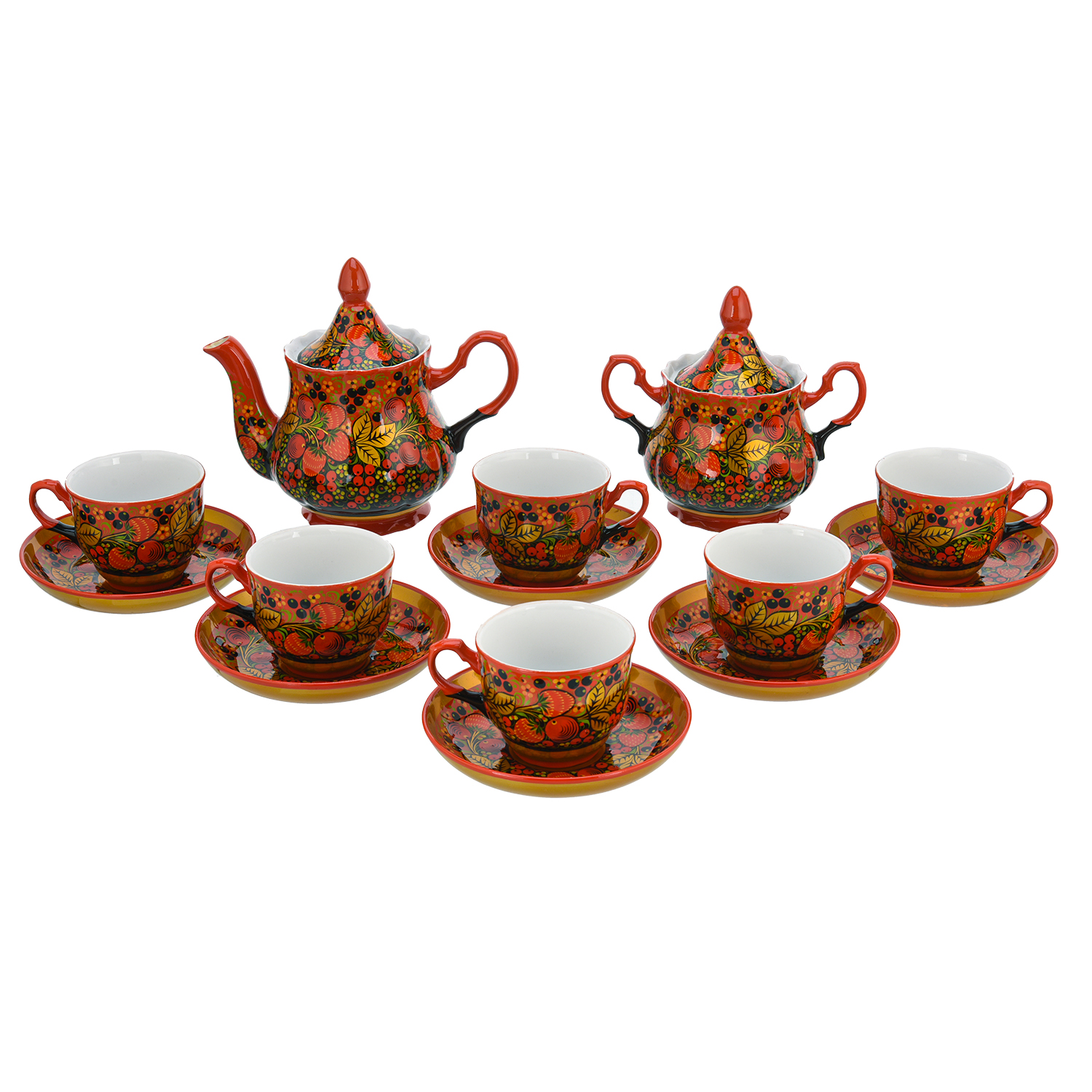 Чайный сервиз на 6 персон "Клубника". Хохлома