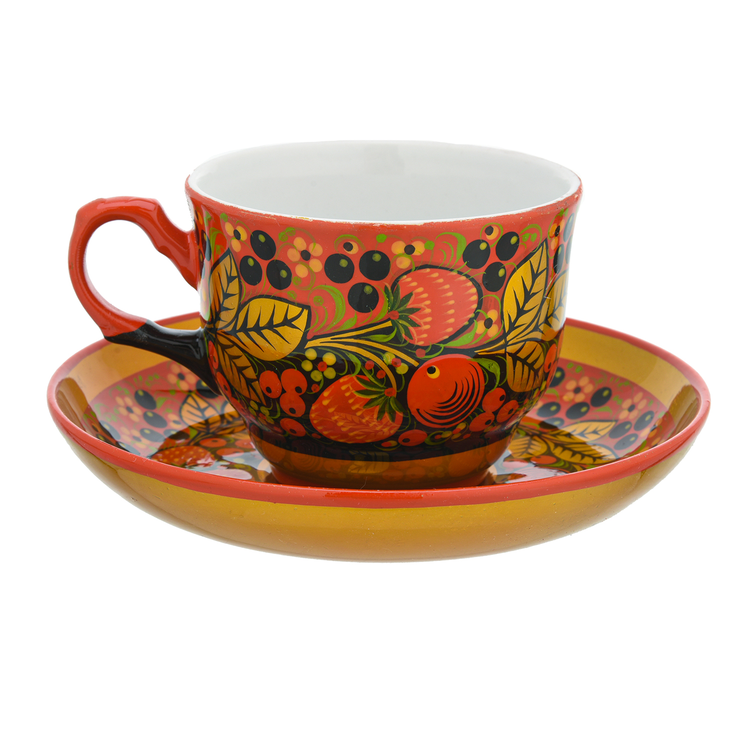 Чайный сервиз на 6 персон "Клубника". Хохлома.Материал: фарфор.