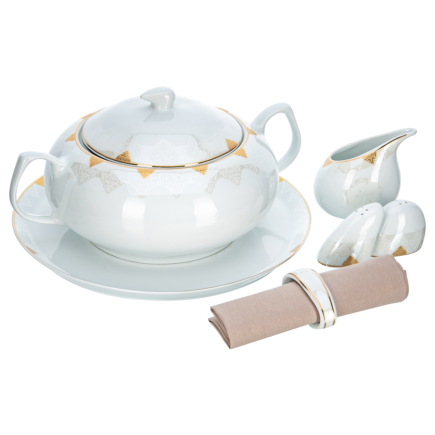 Иранские фарфоровые изделия отличаются от китайских, немецких и турецких сервизов. Уникальная подборка изделий и форм в едином сервизе позволяет сервировать богатые столы для приема гостей, не прибегая к дополнительным предметам сервировки. Это красиво, практично и богато.