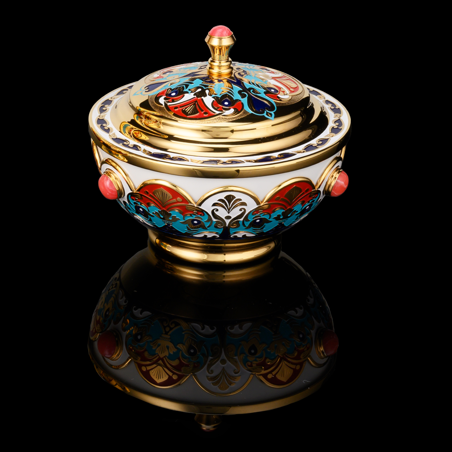 Материалы: латунь, никель, золото 999,9*, эмаль, агат, нейзильбер, фарфор.