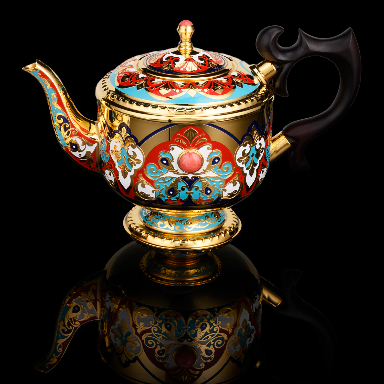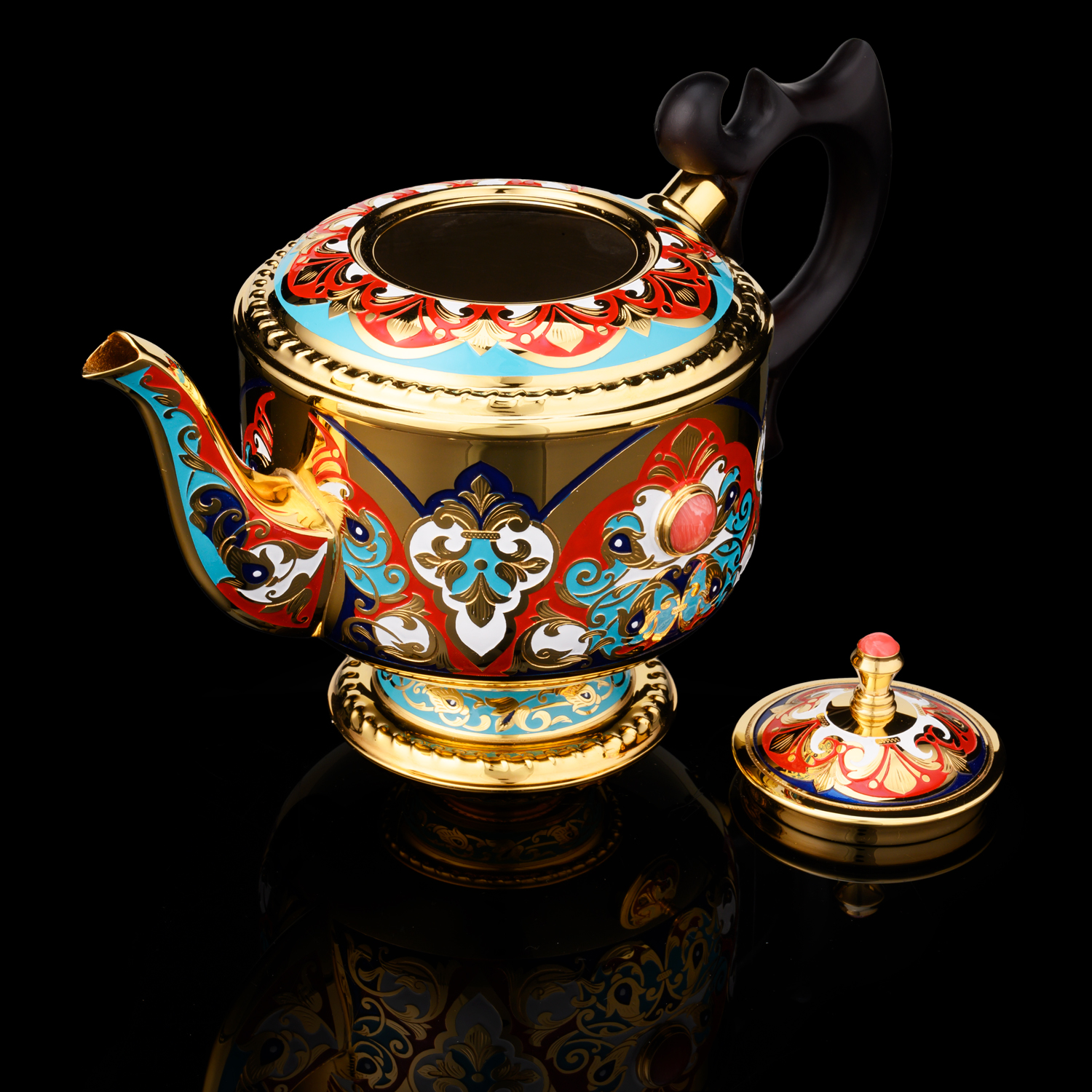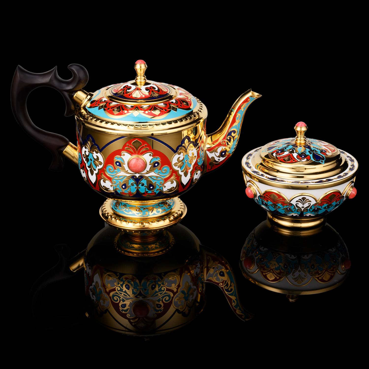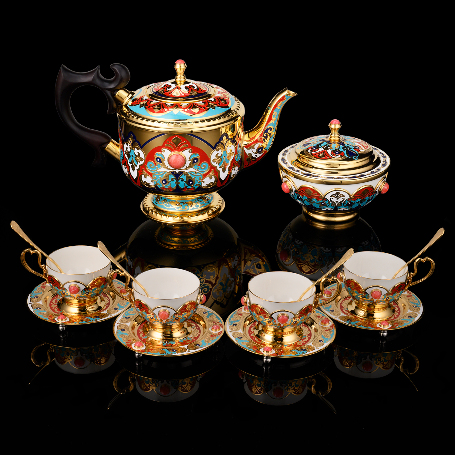 Чайный сервиз с позолотой и эмалью на 4 персоны "Купеческий". Златоуст