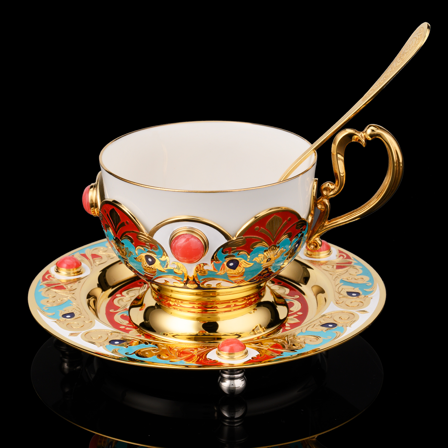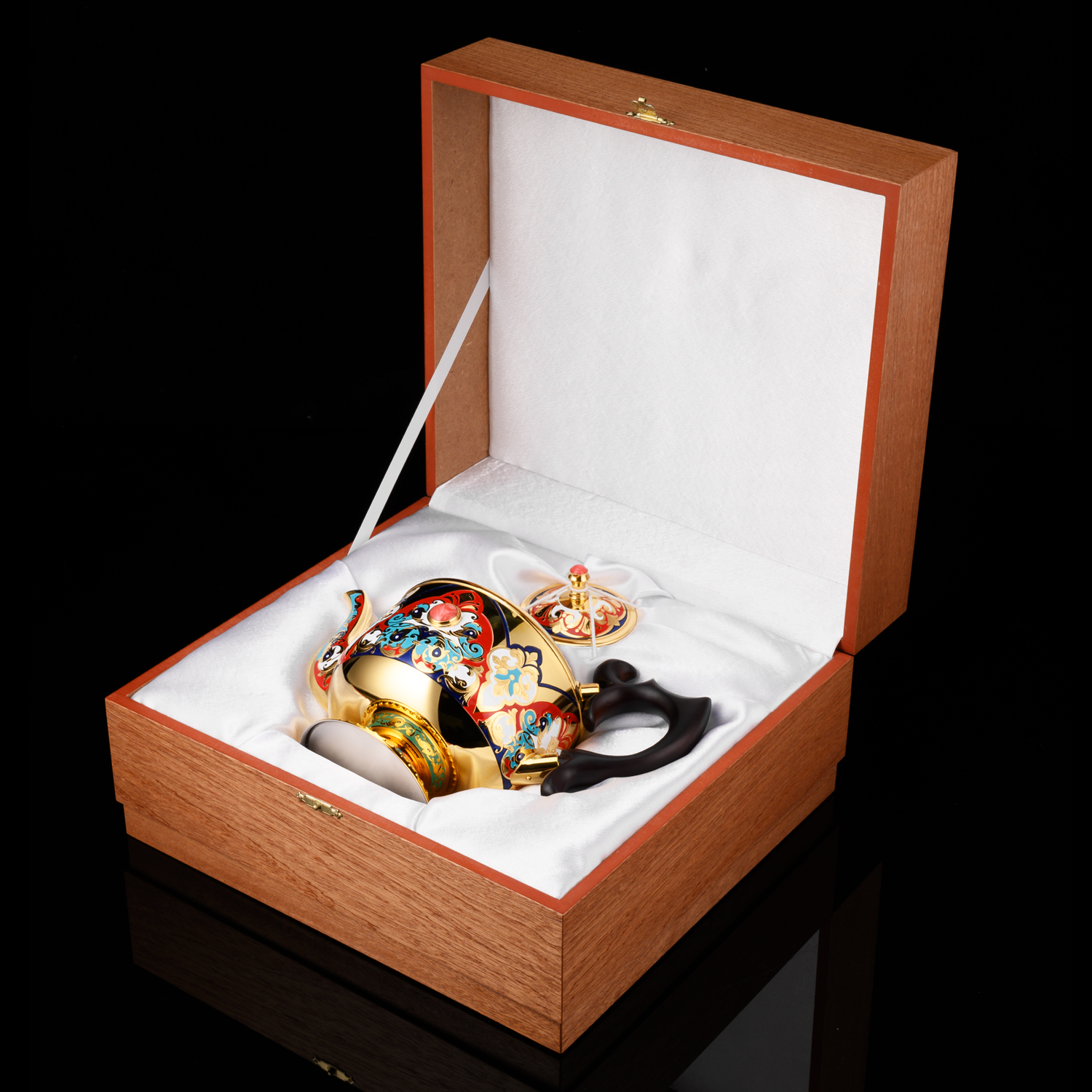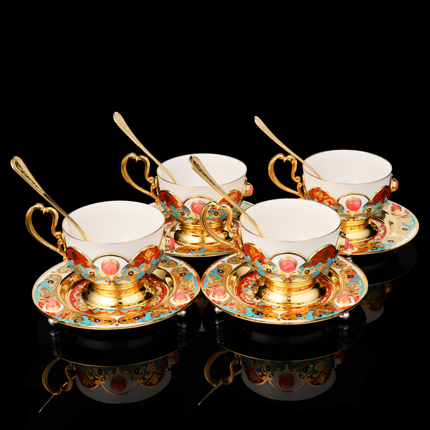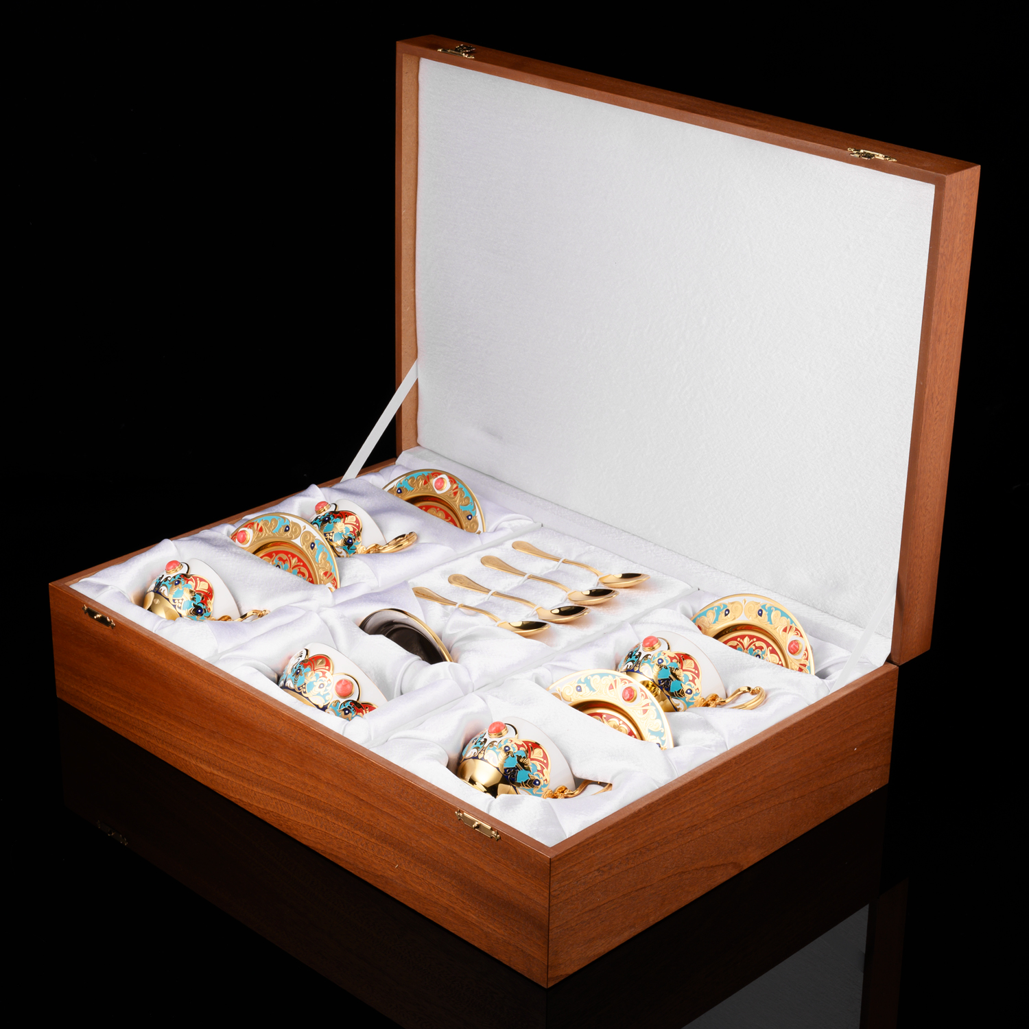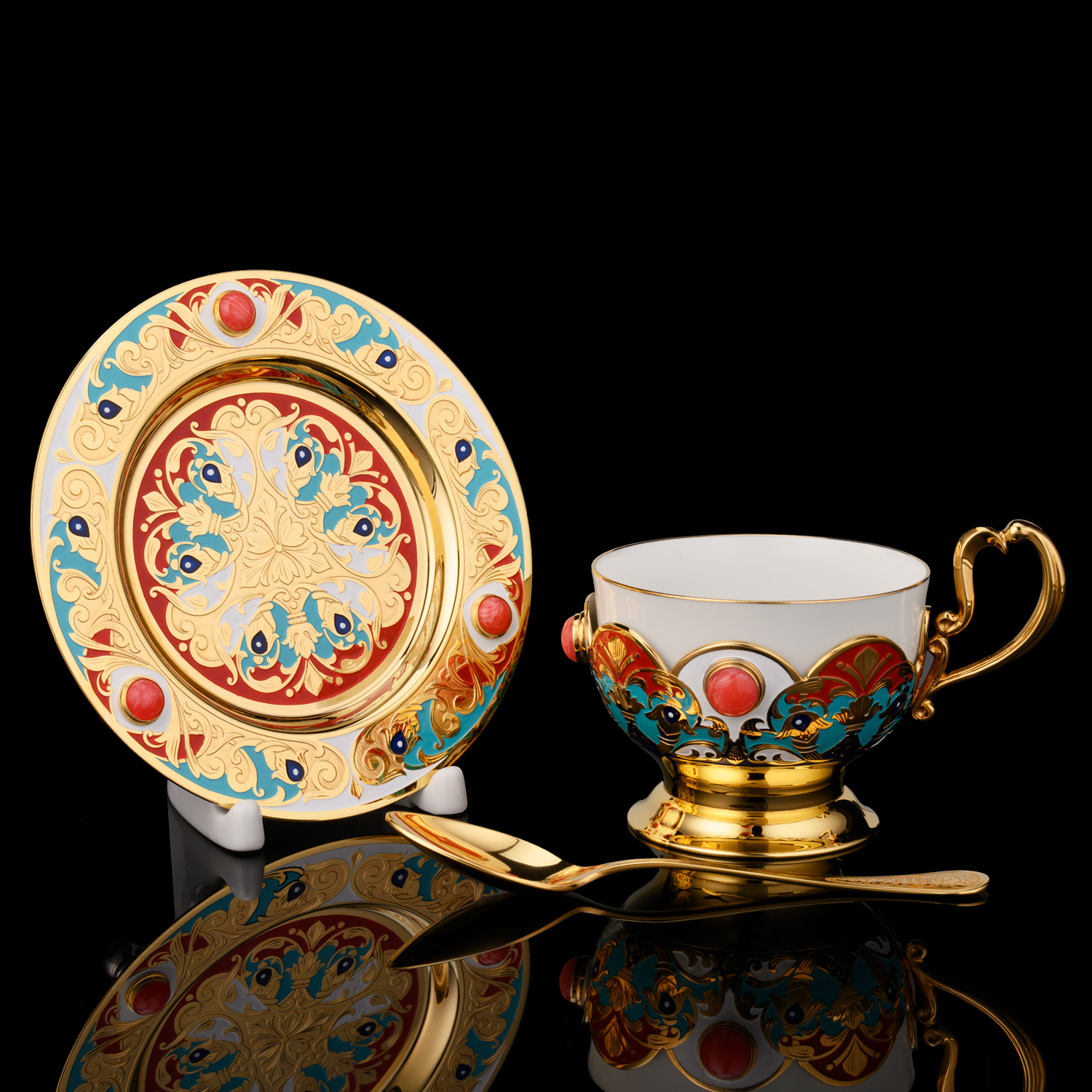 Чайный сервиз с позолотой и эмалью на 4 персоны "Купеческий". Златоуст