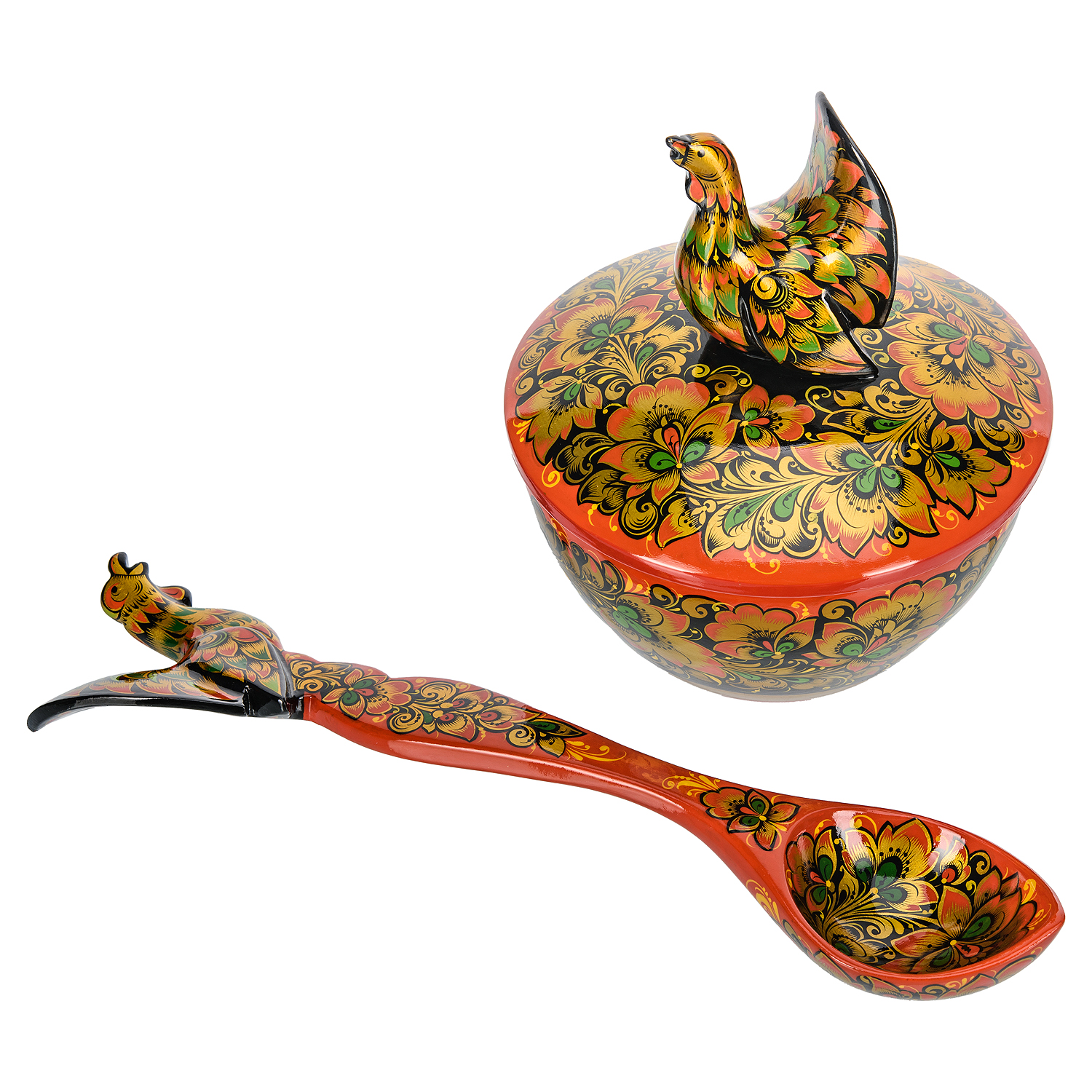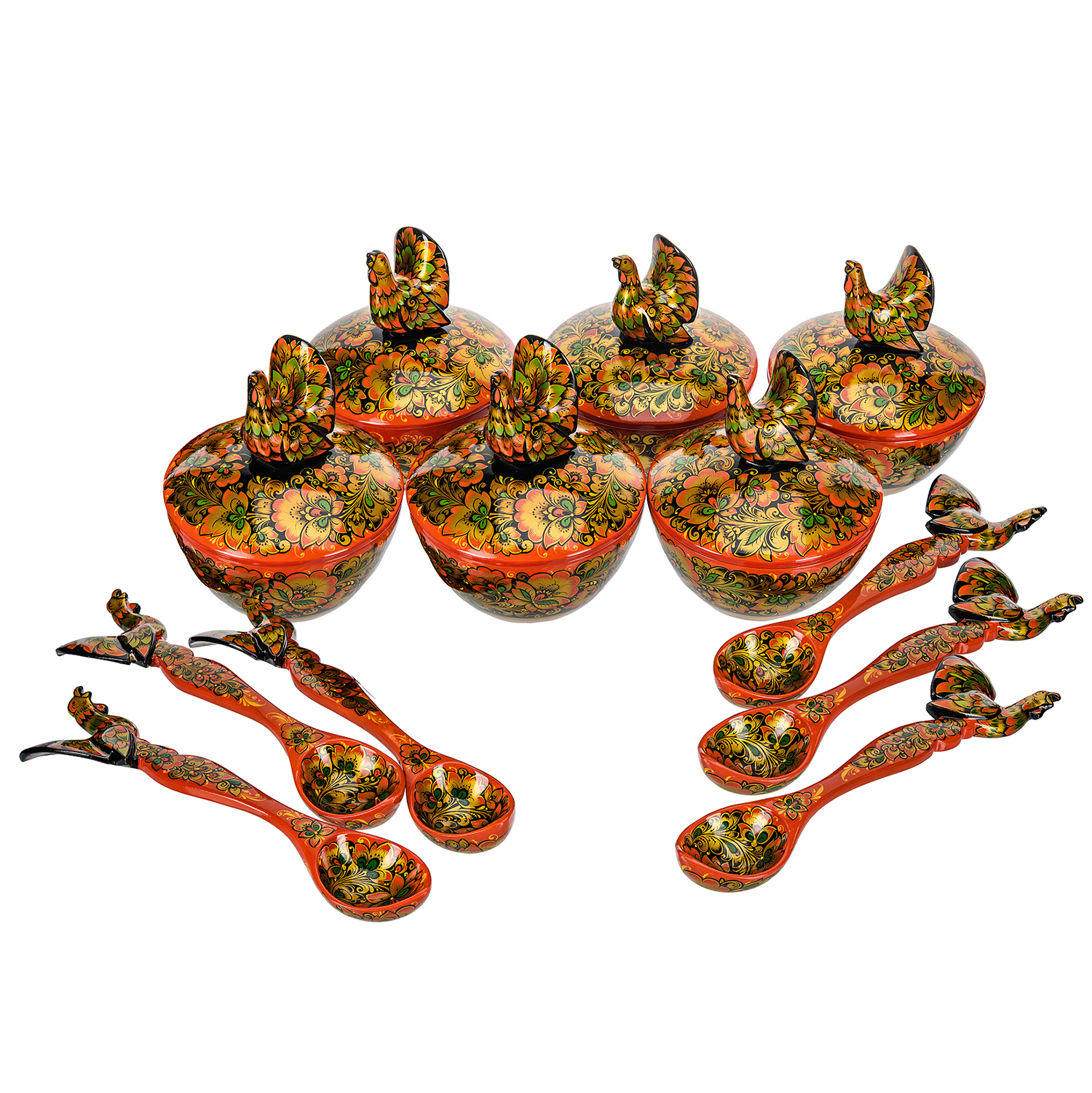 Набор посуды на 6 персон "Глухарь". Хохлома