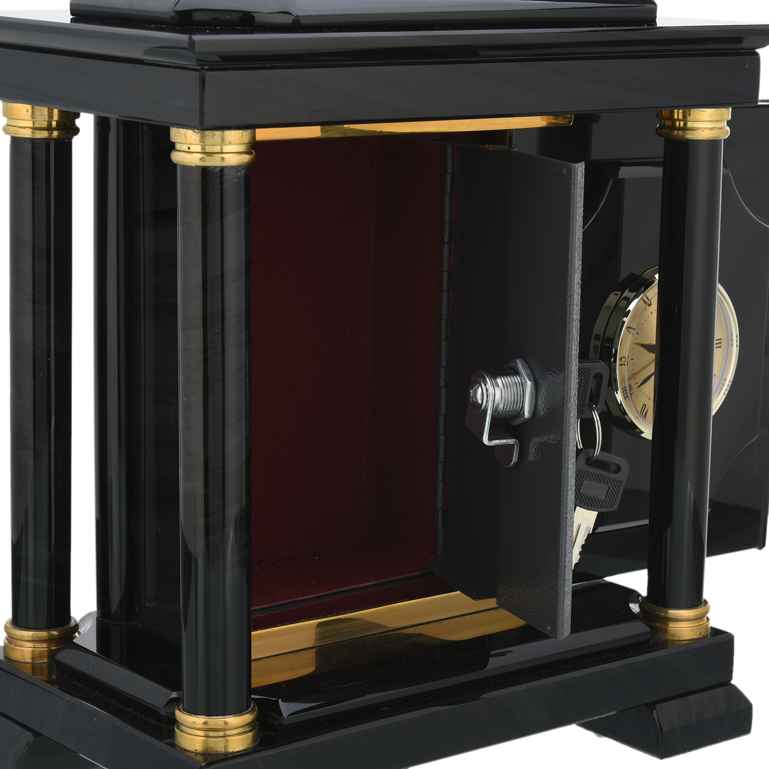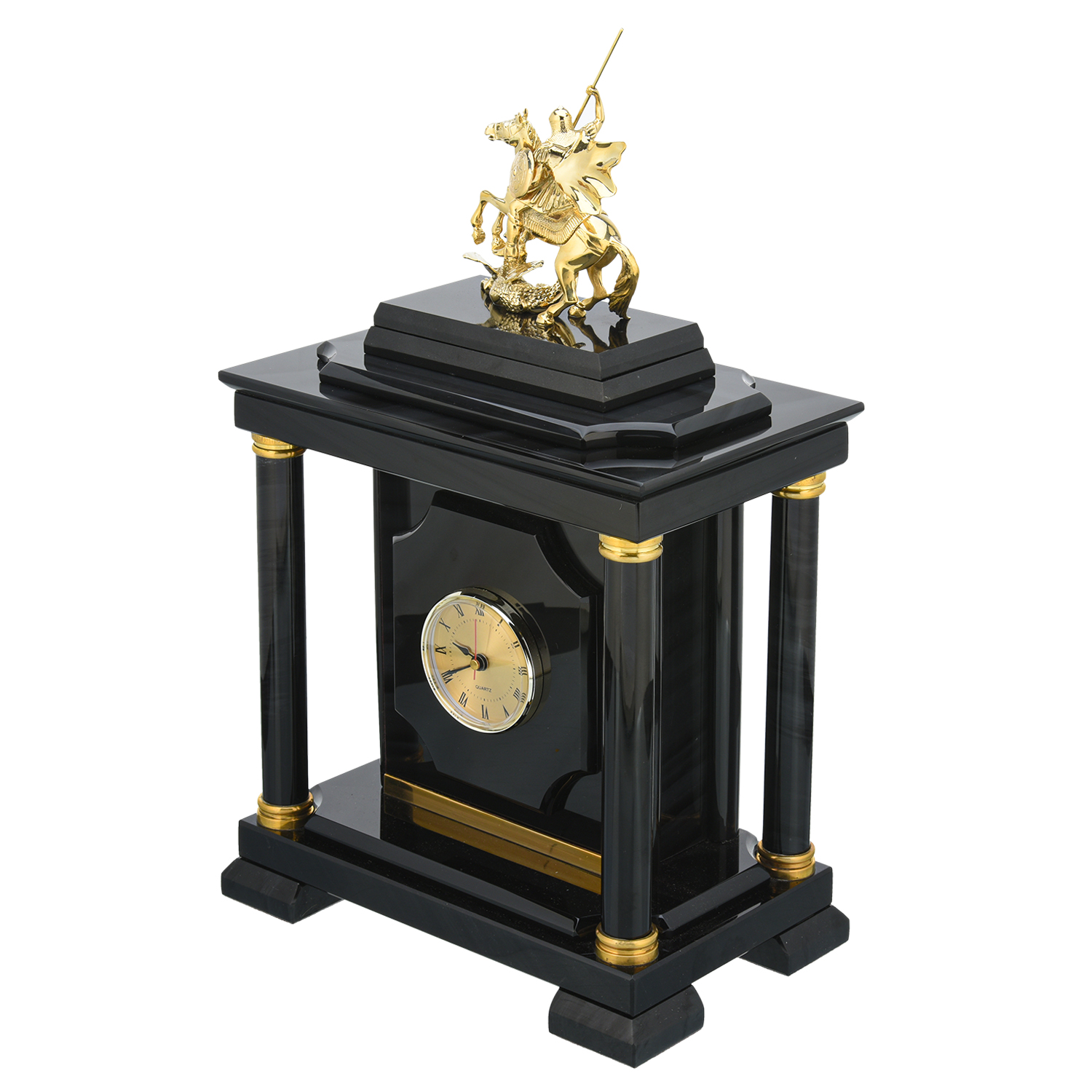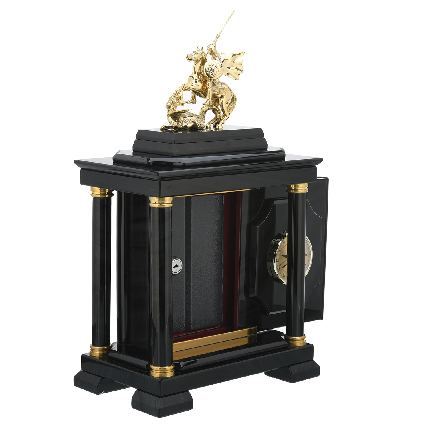 Часы-сейф из натурального камня "Георгий Победоносец".Материал: обсидиан, бронза, золочение.