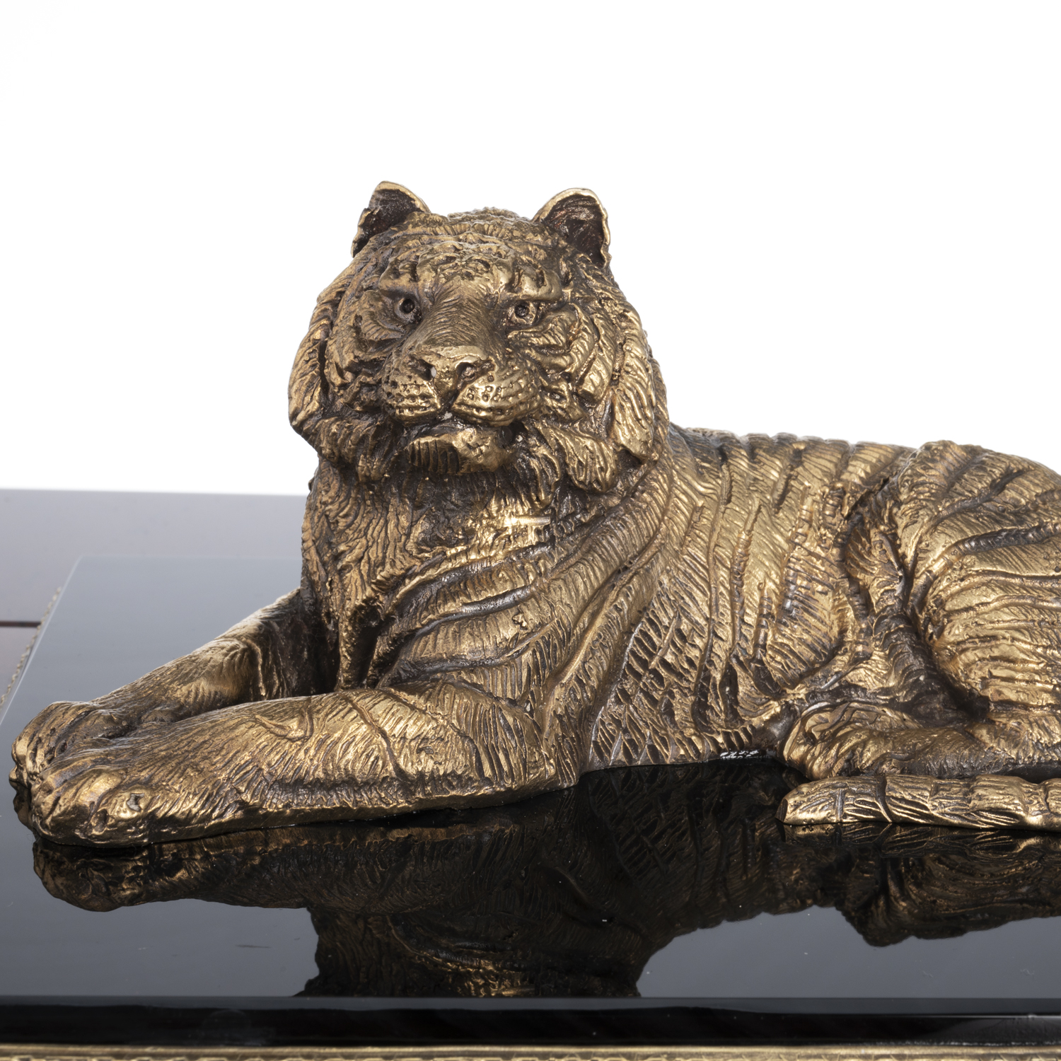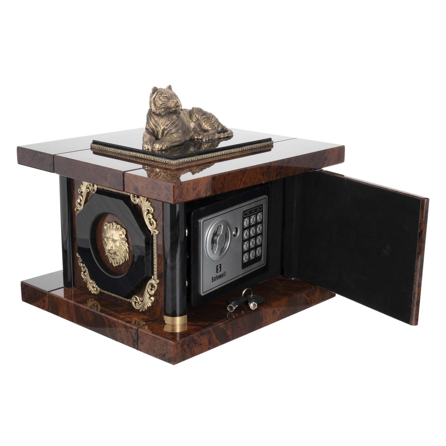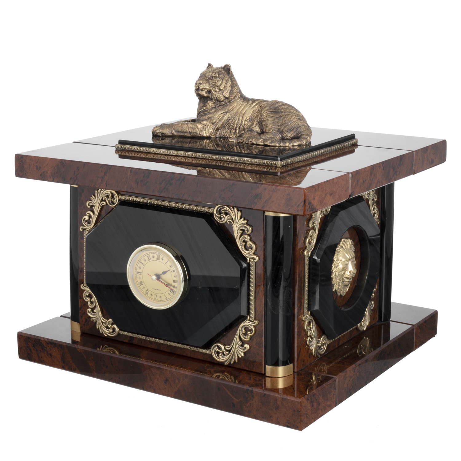 Сейф-часы из натурального камня "Тигр".Материалы: обсидиан, бронза, стекло.