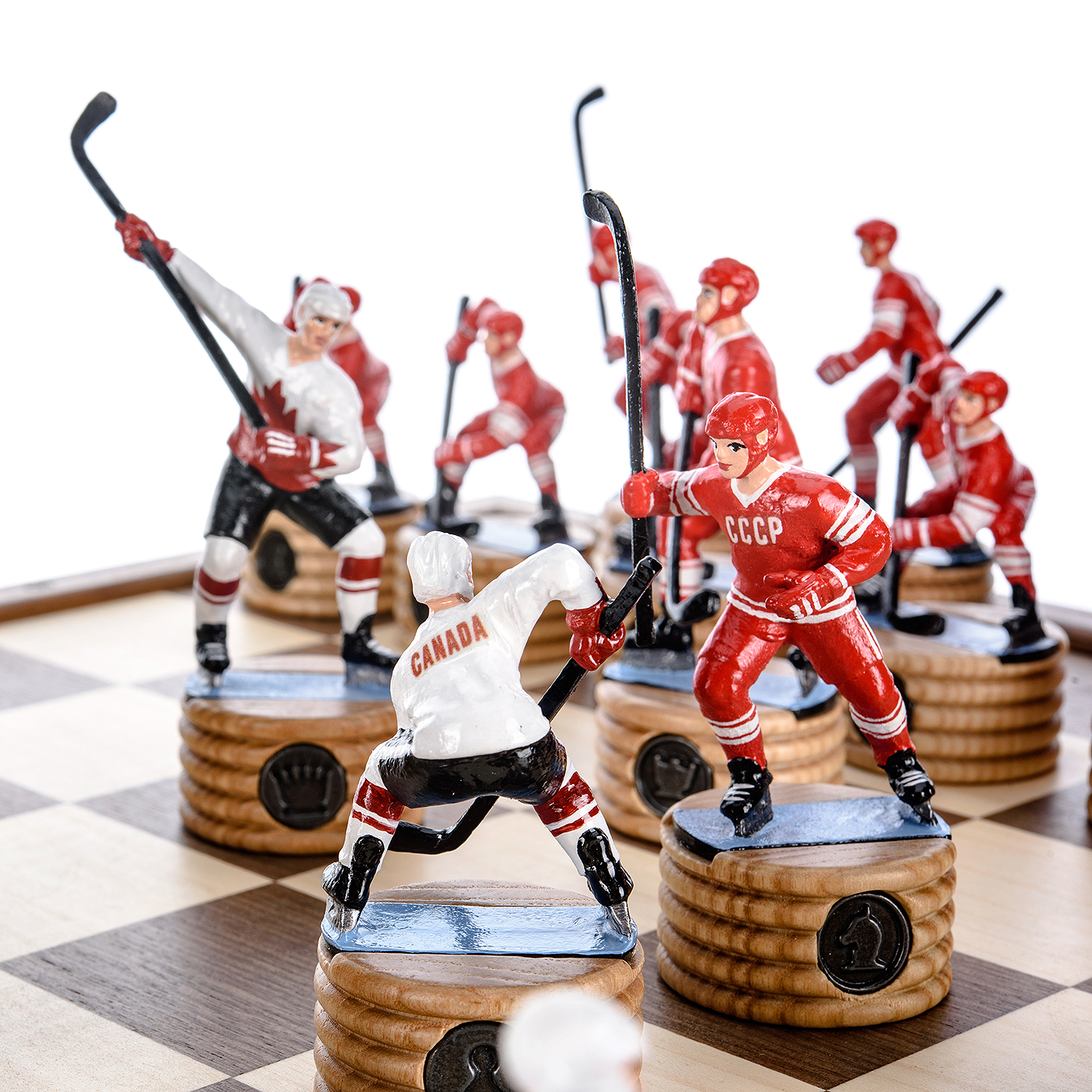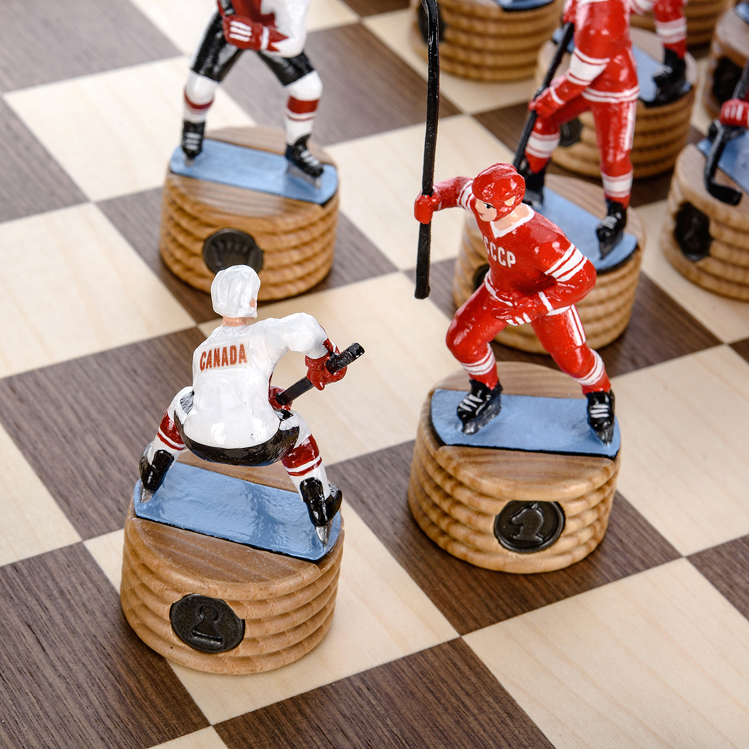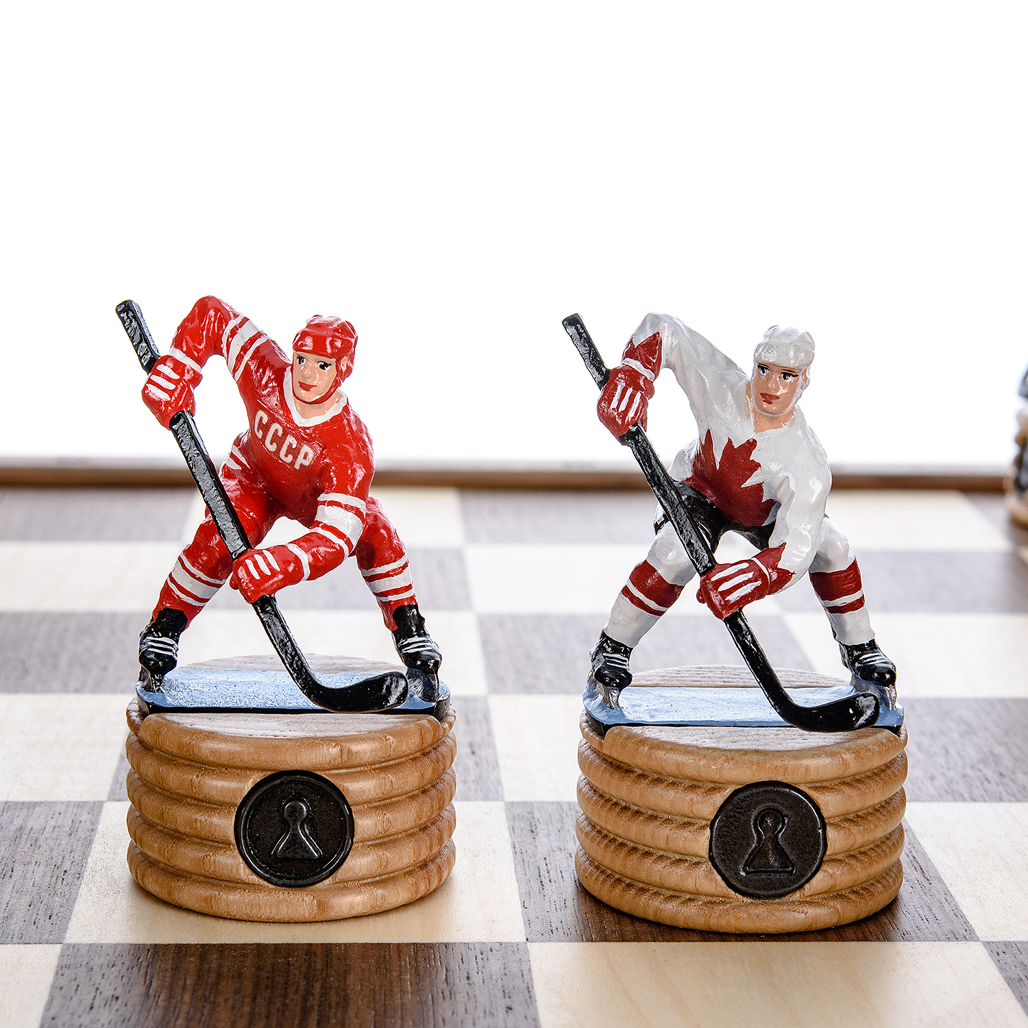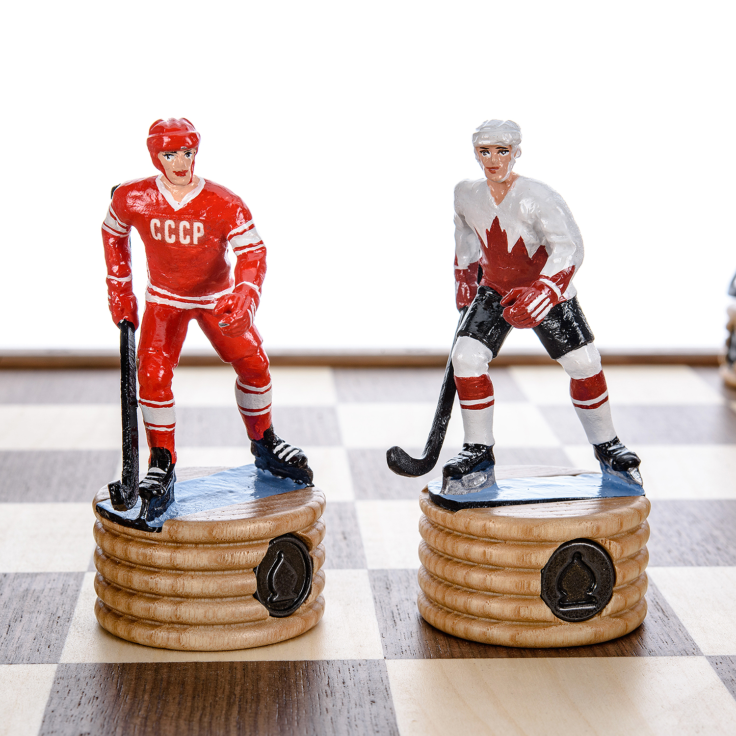 Шахматы деревянные с металлическими фигурами "Хоккей. СССР-Канада" 50х50 см