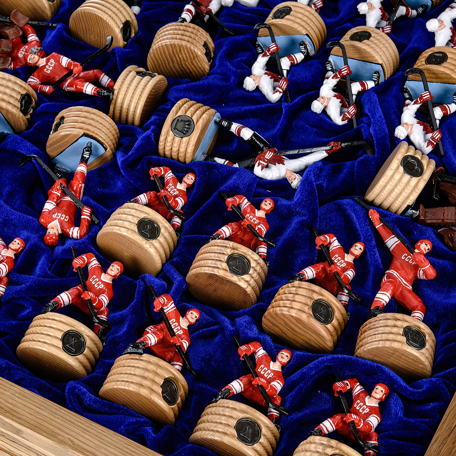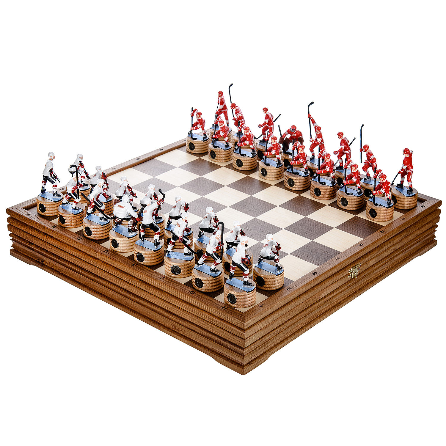 Шахматы деревянные с металлическими фигурами "Хоккей. СССР-Канада".Материалы: мореный дуб, цинковый сплав.