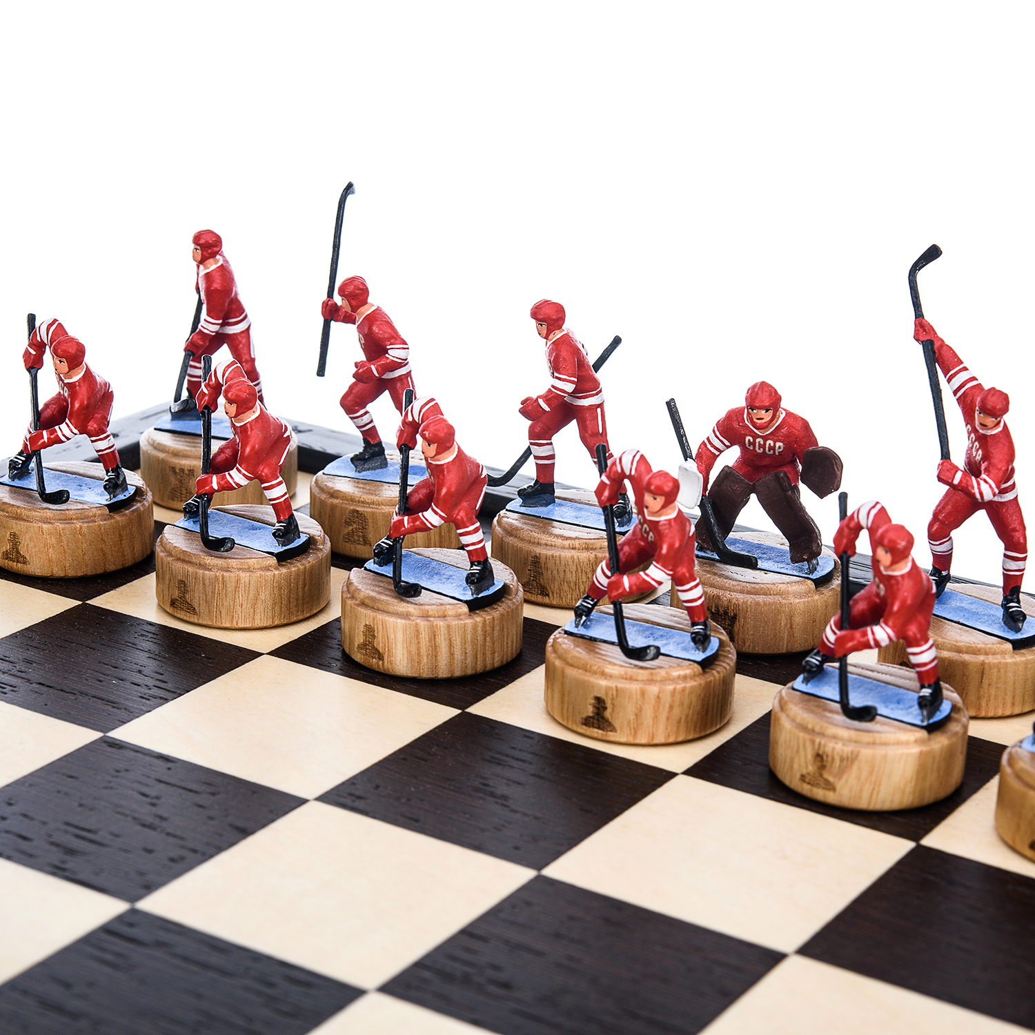Шахматы деревянные с металлическими фигурами "Хоккей" 37х37 см