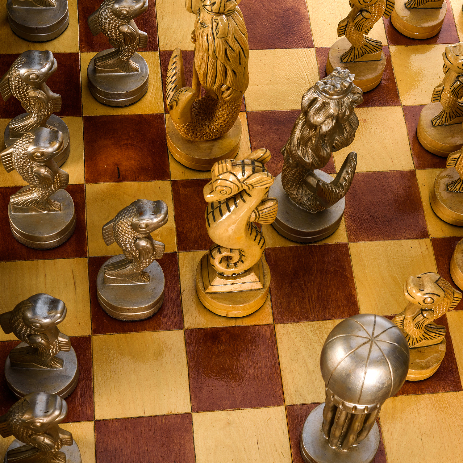 Эксклюзивные большие деревянные шахматы ручной работы "Море" 100х100 см