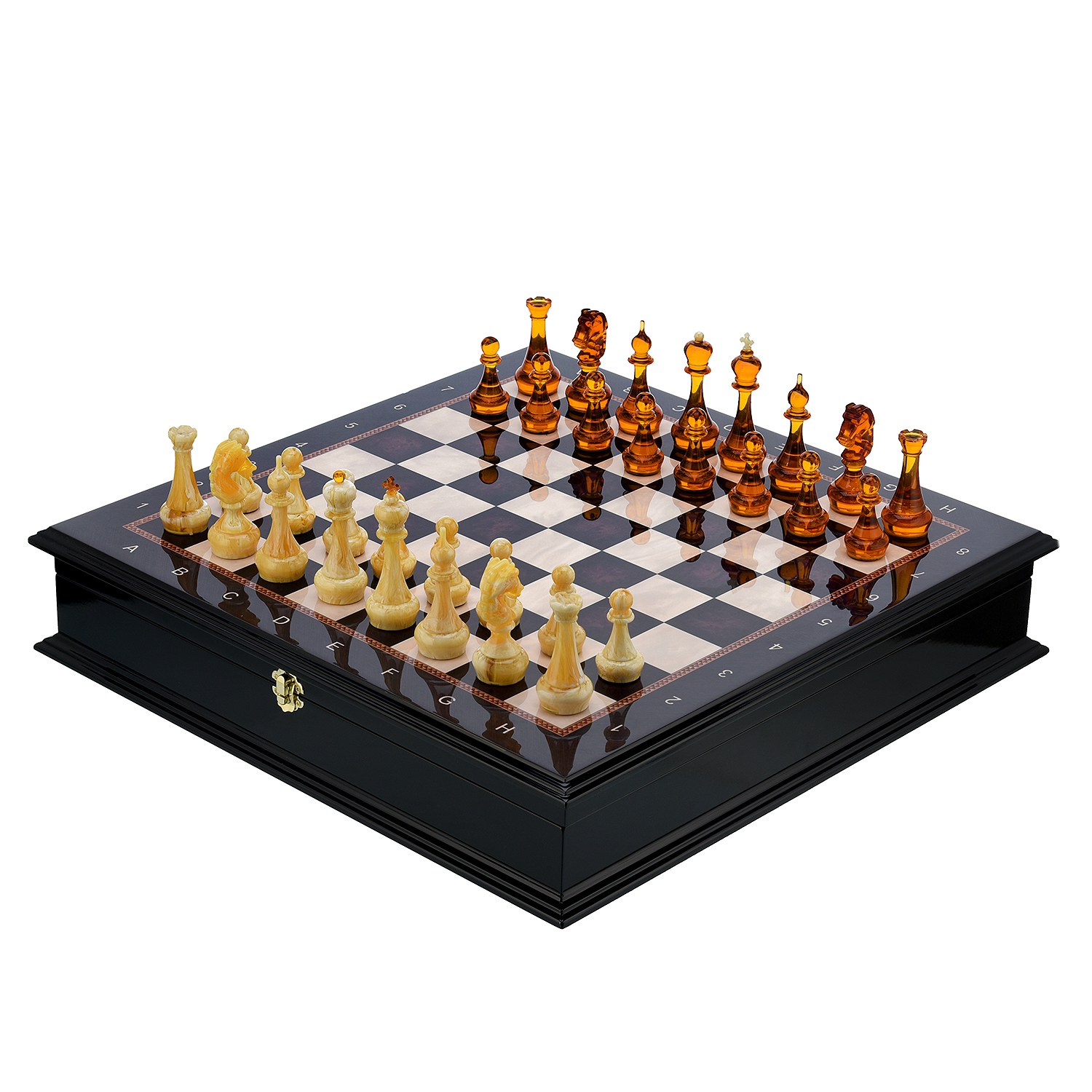 Наши эксклюзивные шахматы - это не просто потоковая продукция, а произведение искусства, в разработке которого мы учитываем не только внешнюю красоту, но и функциональность, а фигуры из драгоценного балтийского янтаря определенно добавляют дорогому шахматному набору элитарности, делая его неповторимым и элегантным.