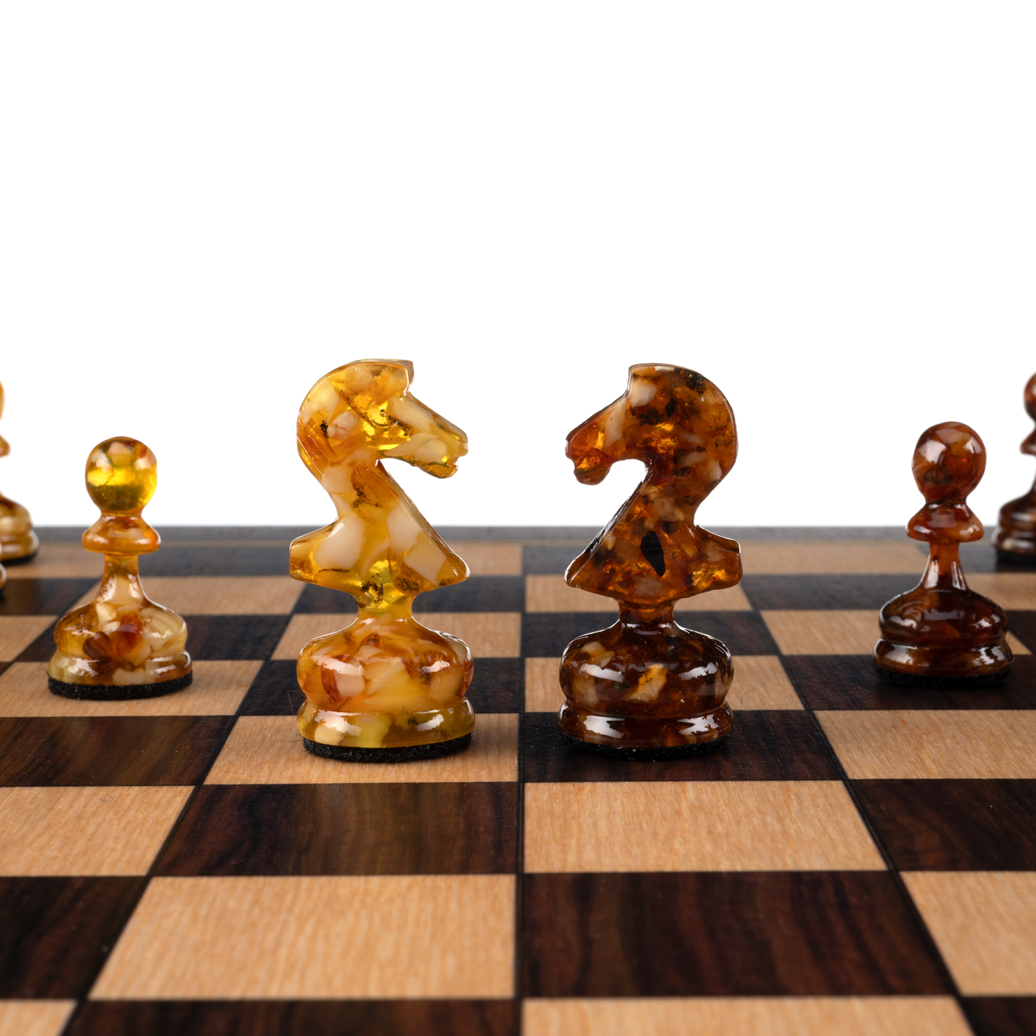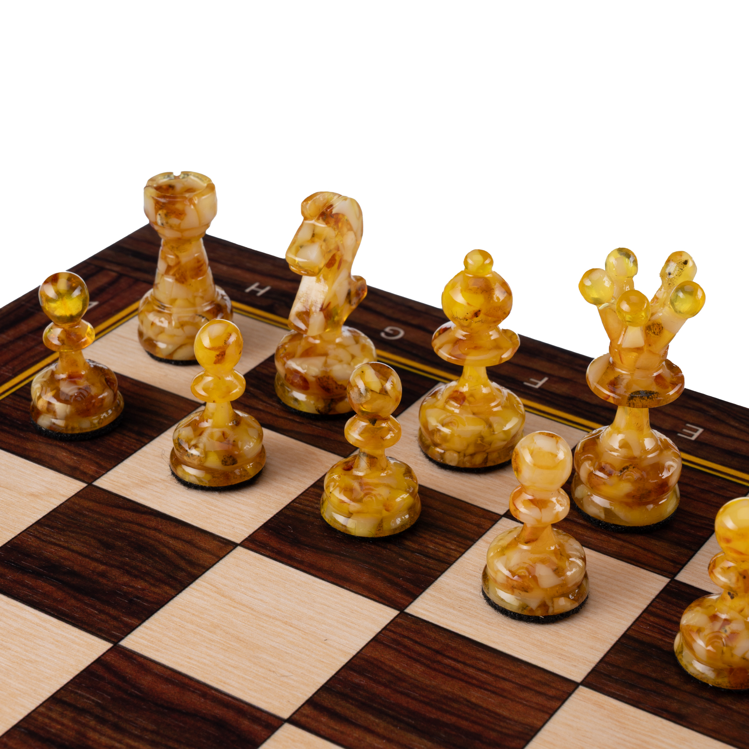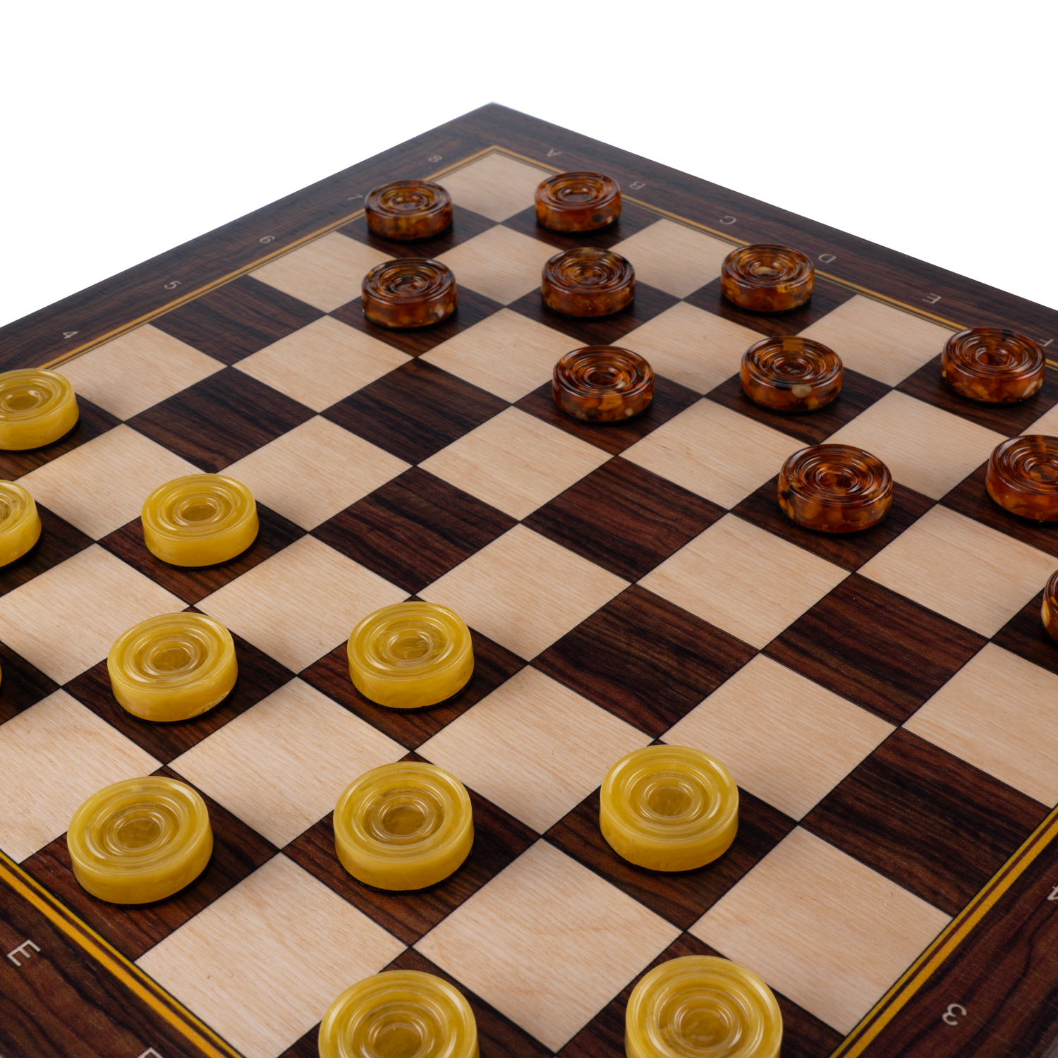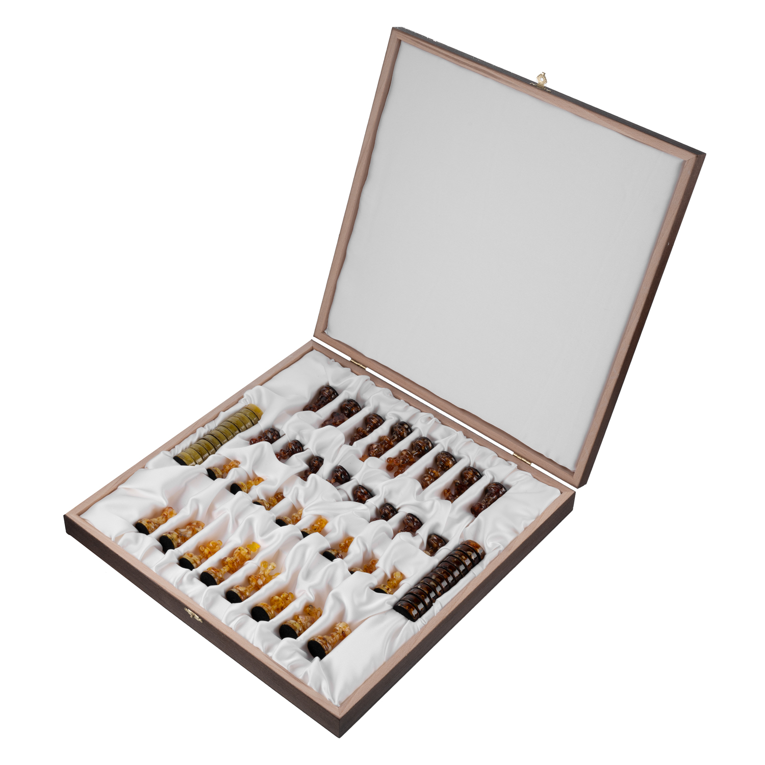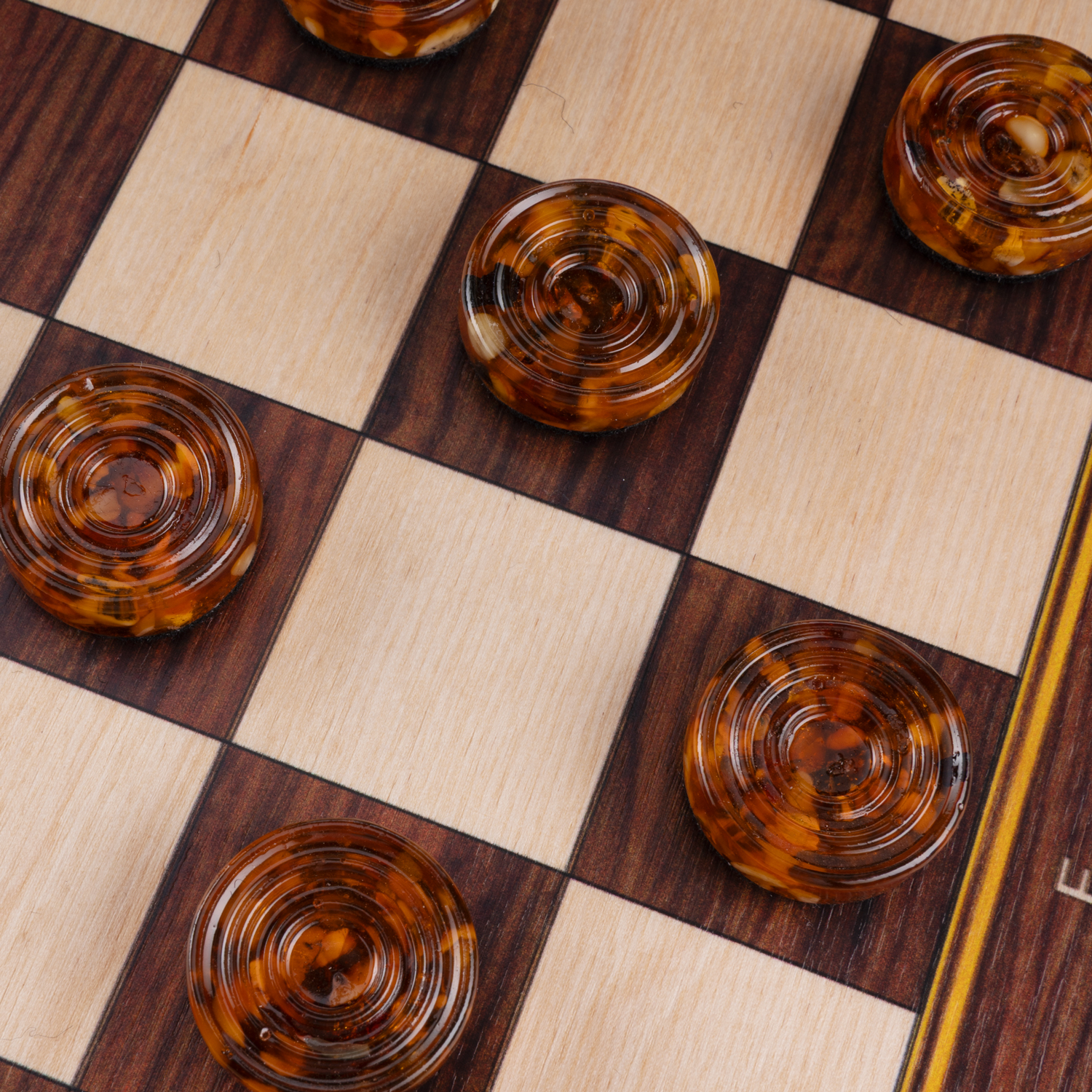 Шахматы-шашки с янтарными фигурами.