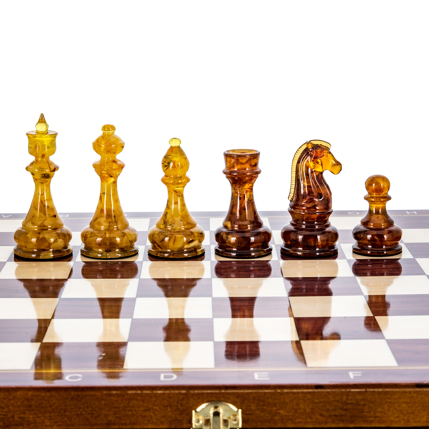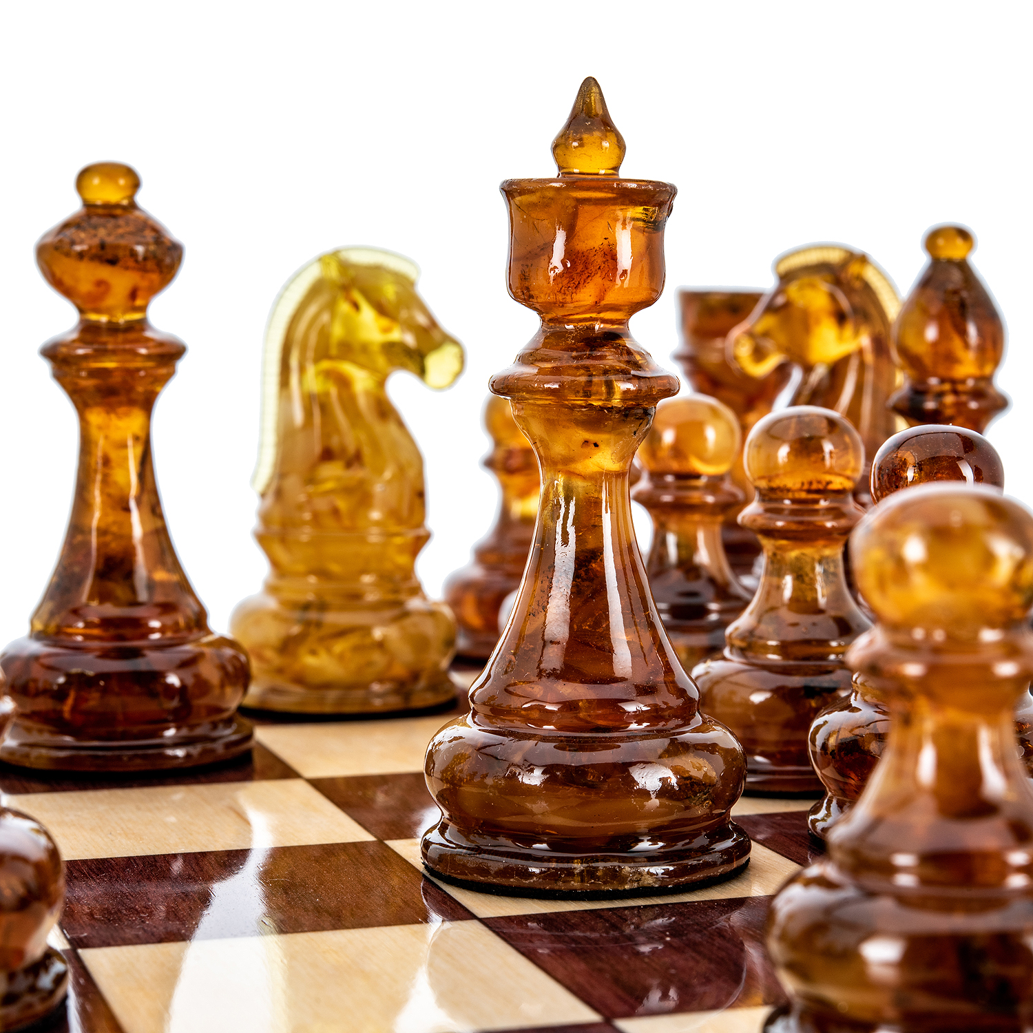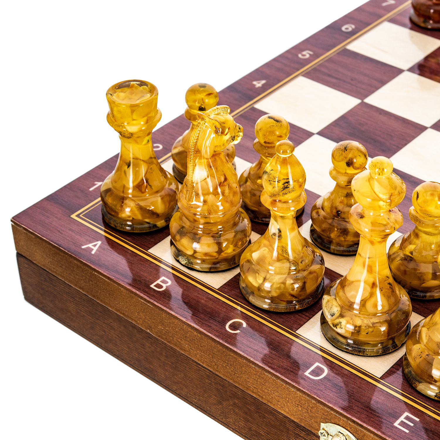 Дорогие шахматы из дерева с фигурами из балтийского янтаря - это, по-настоящему, роскошный аксессуар для людей, которые видят художественную ценность изделия в целом и внимательны к деталям. Каждый элемент этих изысканных шахмат выполнен мастерами вручную, что несомненно добавляет ценности изделию.Наши эксклюзивные шахматы - это не просто потоковая продукция, а произведение искусства, в разработке которого мы учитываем не только внешнюю красоту, но и функциональность, а фигуры из драгоценного балтийского янтаря определенно добавляют дорогому шахматному набору элитарности, делая его неповторимым и элегантным.